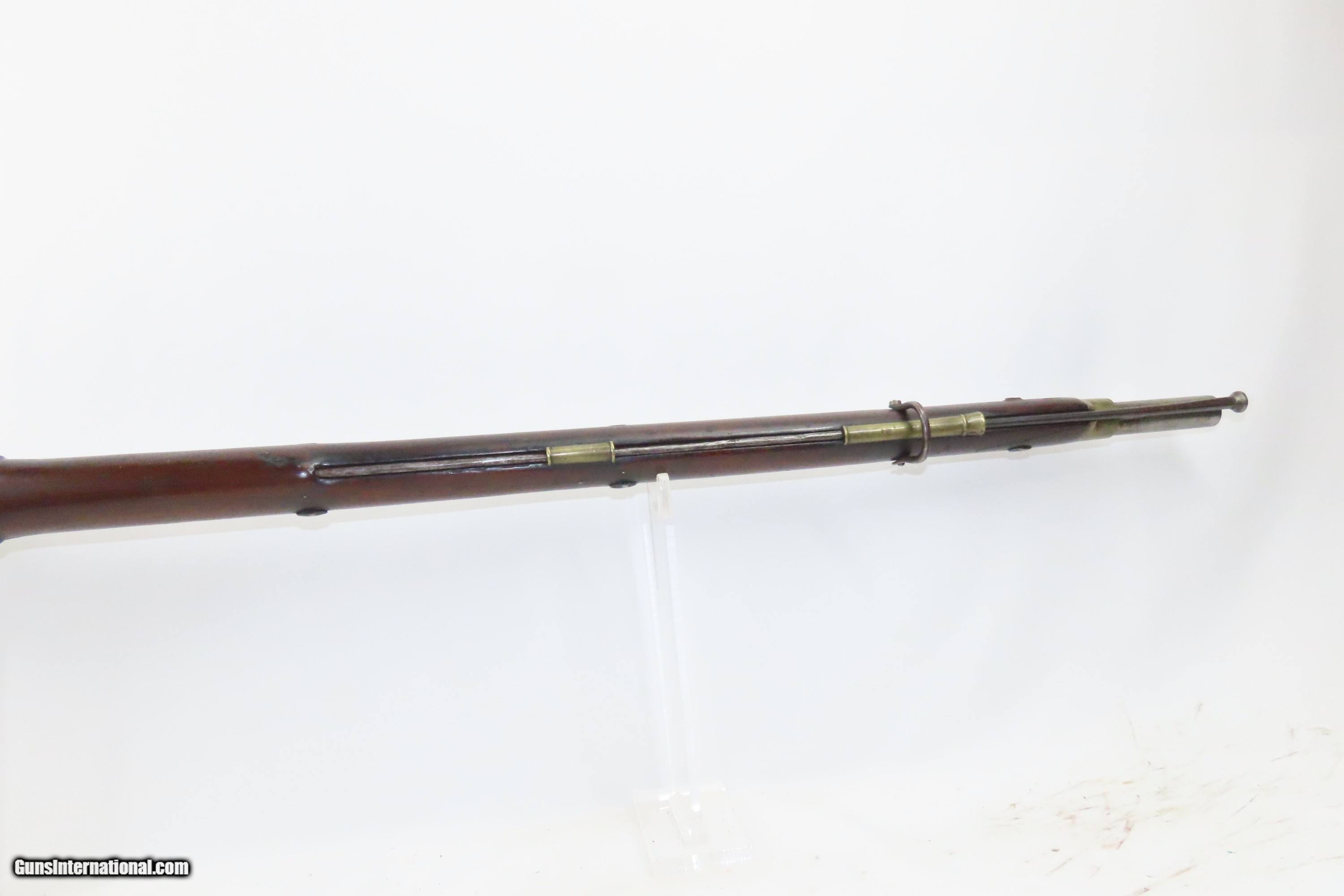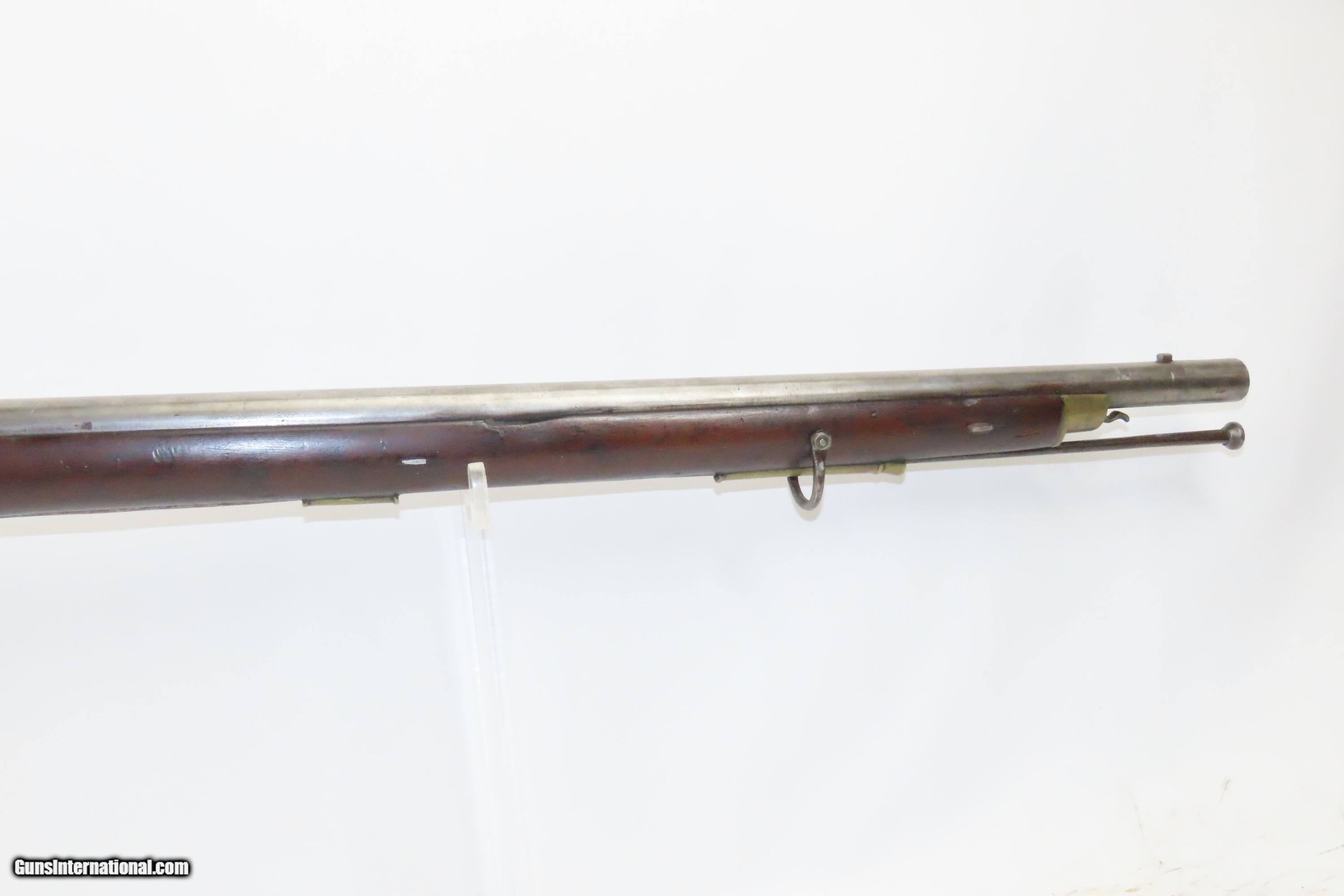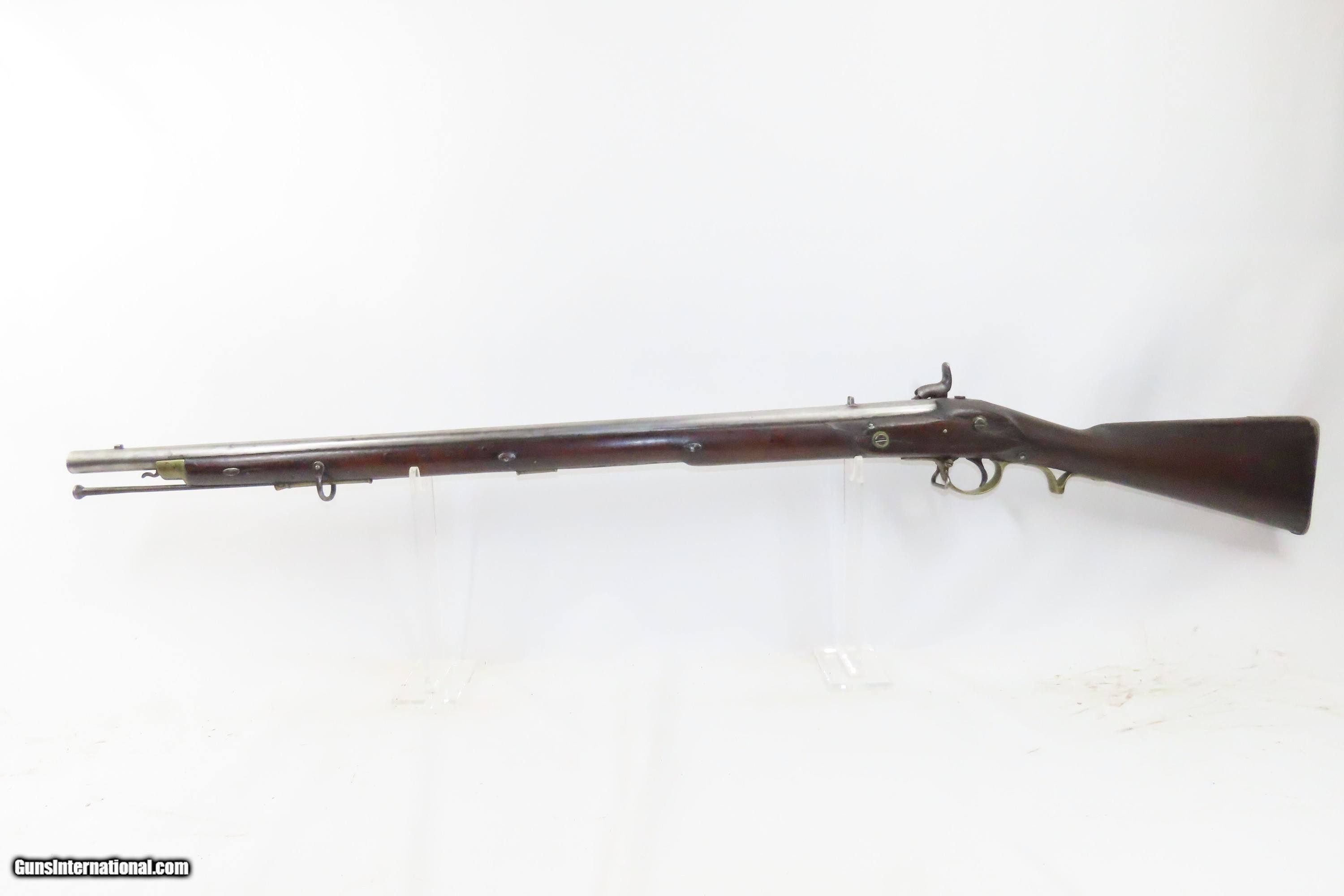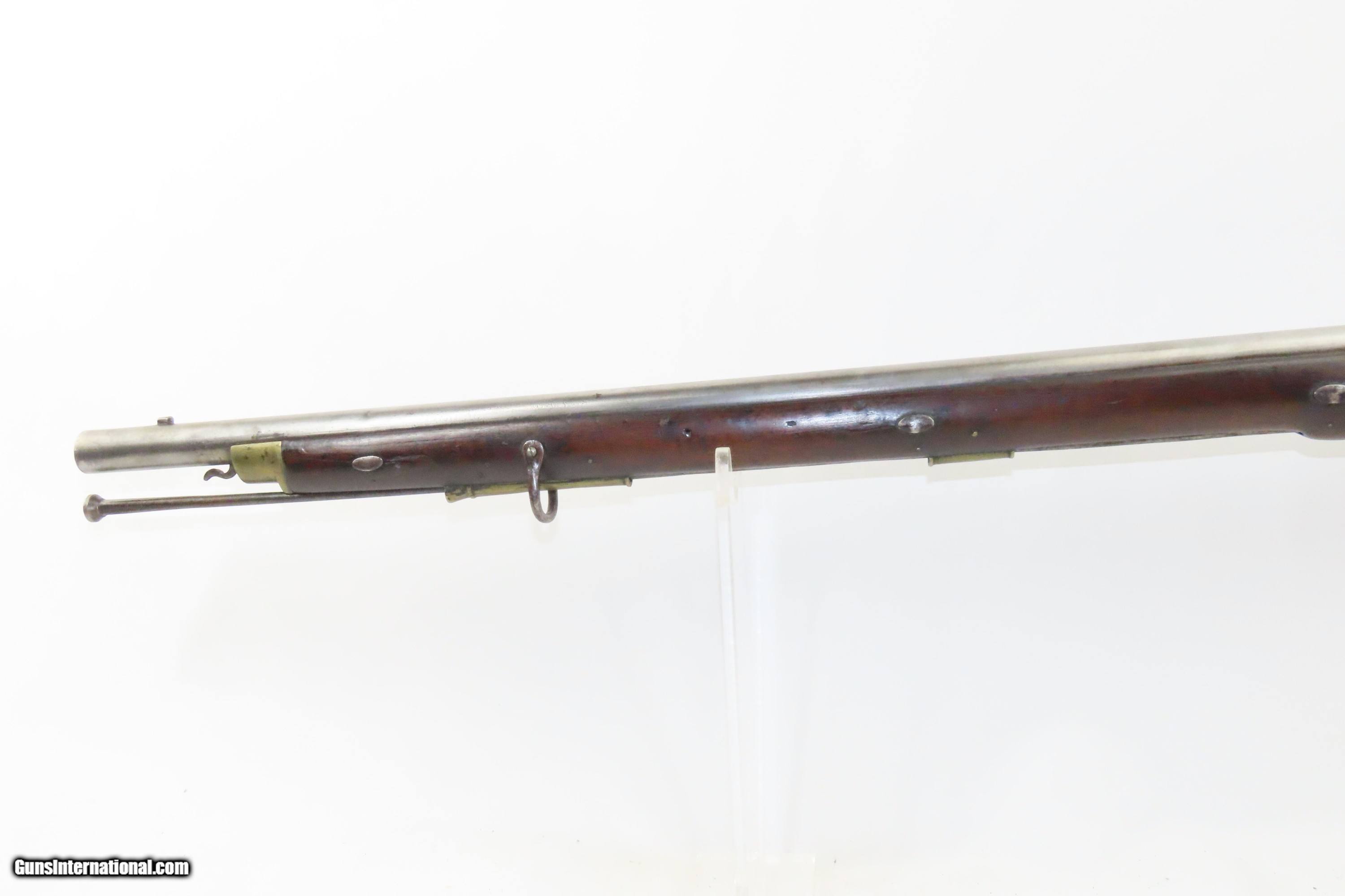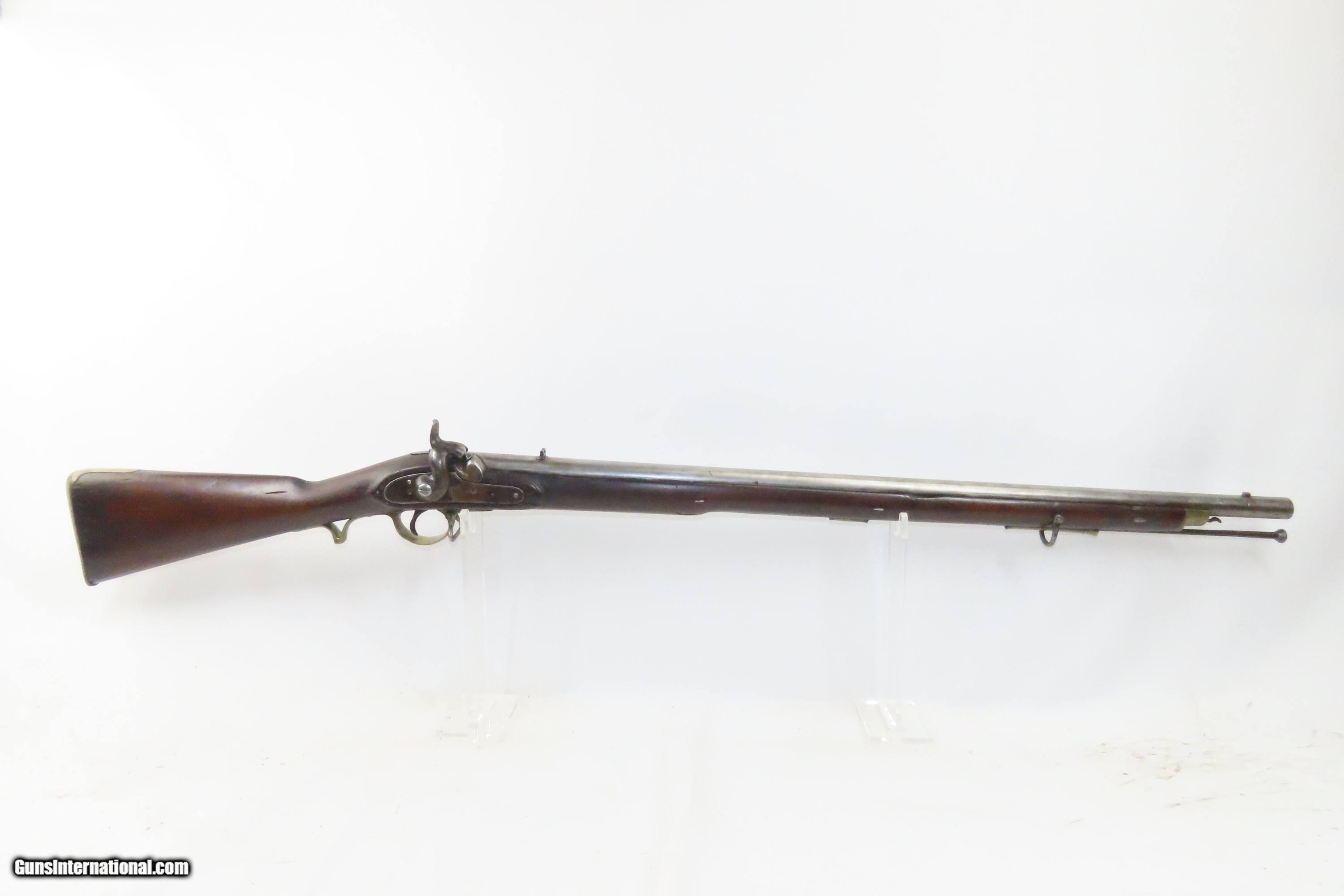 Description: European CIVIL WAR Era Antique FULL STOCK .75 Percussion Conversion Musket FLINTLOCK to PERCUSSION with BOLSTER CONVERSION Here we present an antique European Percussion Conversion Musket, made circa the early 1800s likely in Western Europe. This musket would have started out life as a flintlock and converted when the more reliable percussion firing system was introduced, possibly around the onset of the Civil War. The American Civil War happened during a period of great firearms advancement throughout the world, but particularly in the United States. The primary transition was from muzzle-loaders to breech-loaders, from loose ball and powder to self-contained cartridges. Dozens of different small arms, namely cavalry carbines, were used in the conflict. The war saw obsolete technology fighting next to the cutting edge, and both sides needed it all. Imagine the logistical nightmare of supplying so many different types of ammunition! When the Civil War began, both sides were desperate for small arms. Arms purchasers and speculators scoured Europe and England for small arms available for purchase. It is unknown who the maker of this musket is. The overall condition is good. Fully functioning action. Good bore for its age. Some cracks are present around the wrist that show movement with light pressure. Markings are legible. Own the original! This is a legitimate antique and not a reproduction. Barrel is 33 inches. Caliber: .75 Percussion Overall condition as seen in photos. Very Fast. Very Safe. FREE SHIPPING WORLDWIDE. Delivered directly to your door by express mail! Guaranteed AUTHENTIC & Includes CERTIFICATE OF AUTHENTICITY. ancestryguns $1200 #233776 SOLD Antique: Yes |