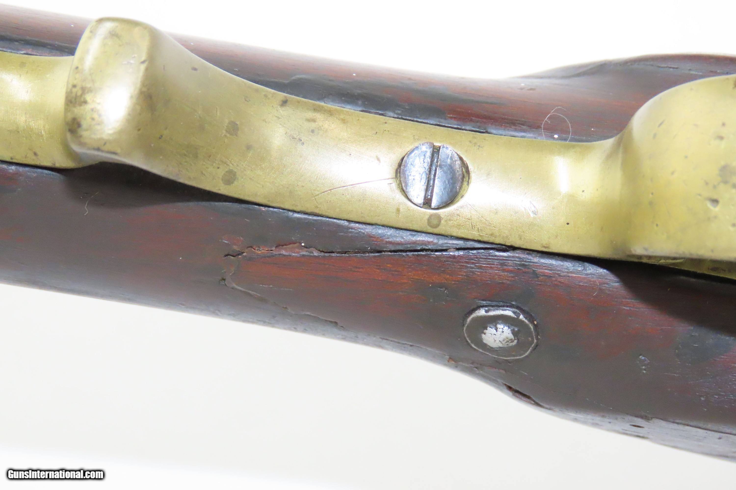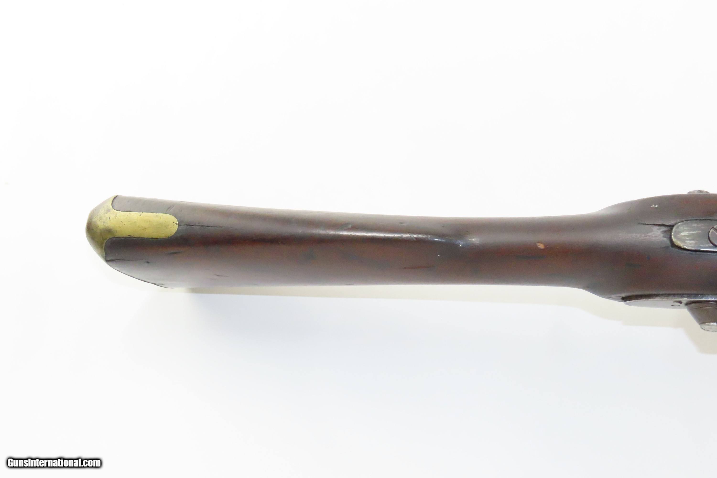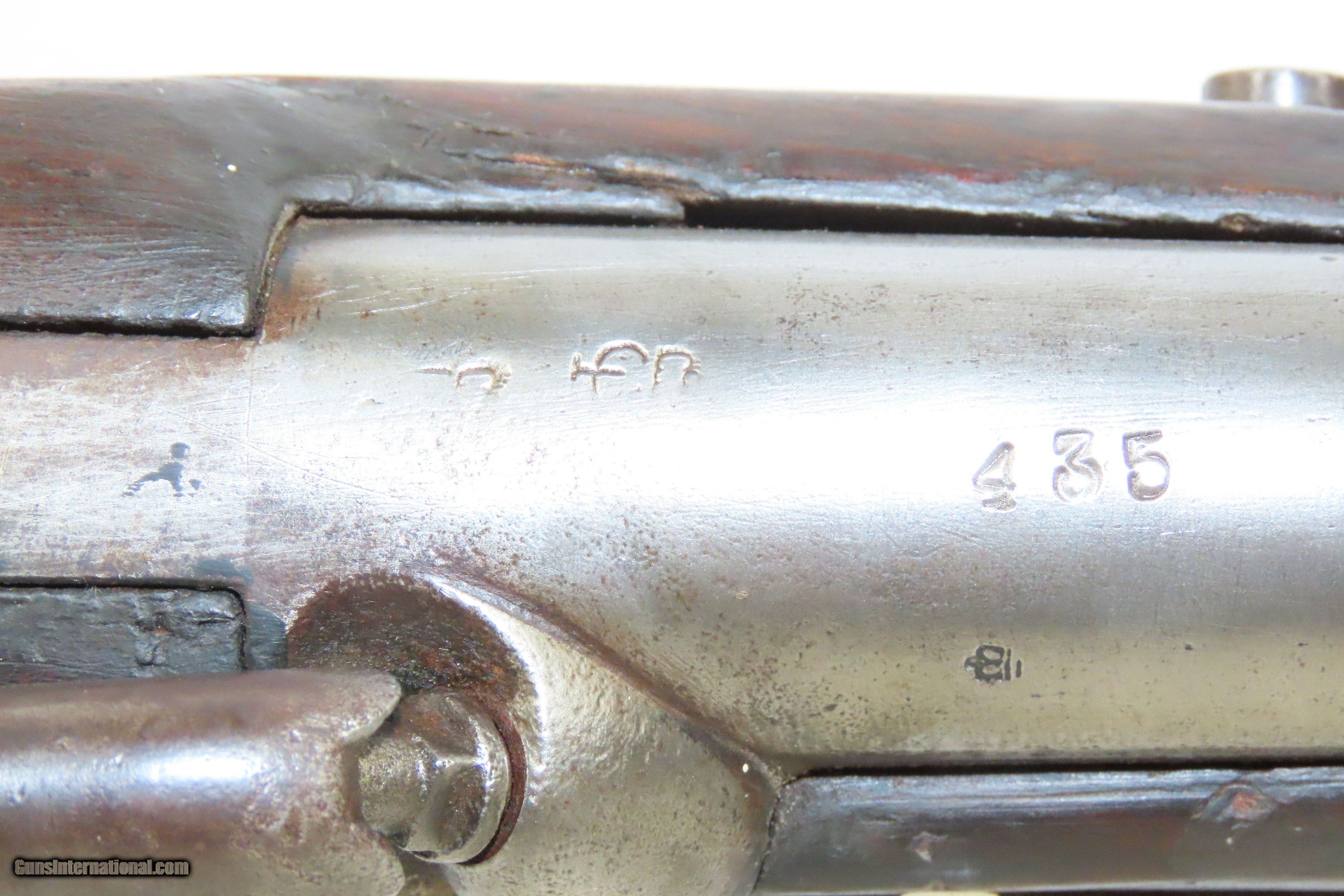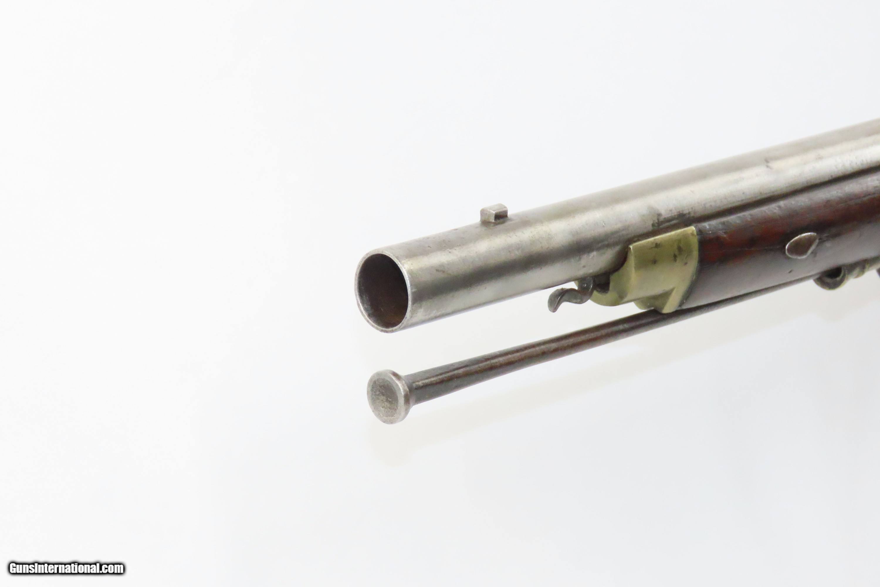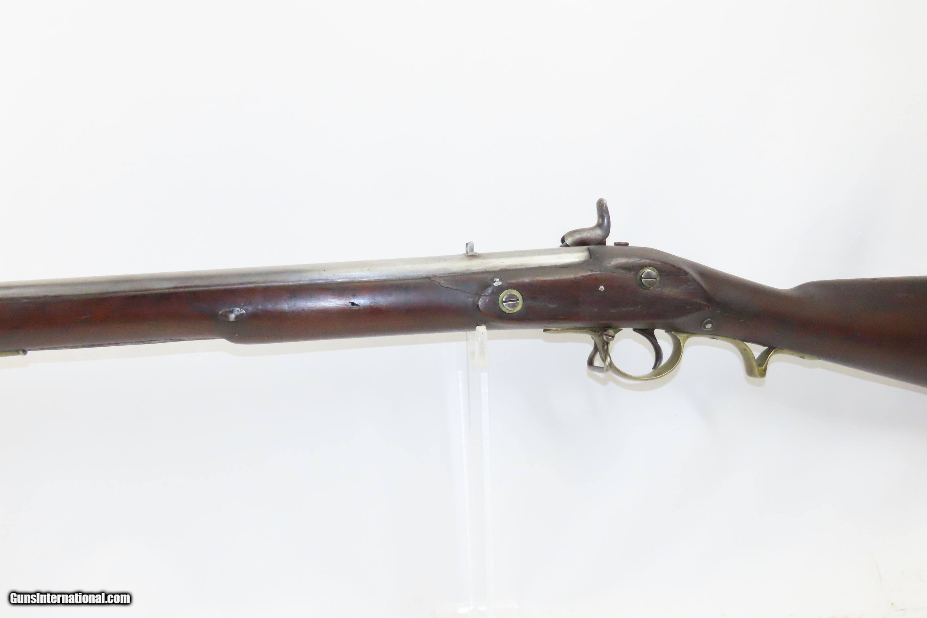 Description: European CIVIL WAR Era Antique FULL STOCK .75 Percussion Conversion Musket FLINTLOCK to PERCUSSION with BOLSTER CONVERSION Here we present an antique European Percussion Conversion Musket, made circa the early 1800s likely in Western Europe. This musket would have started out life as a flintlock and converted when the more reliable percussion firing system was introduced, possibly around the onset of the Civil War. The American Civil War happened during a period of great firearms advancement throughout the world, but particularly in the United States. The primary transition was from muzzle-loaders to breech-loaders, from loose ball and powder to self-contained cartridges. Dozens of different small arms, namely cavalry carbines, were used in the conflict. The war saw obsolete technology fighting next to the cutting edge, and both sides needed it all. Imagine the logistical nightmare of supplying so many different types of ammunition! When the Civil War began, both sides were desperate for small arms. Arms purchasers and speculators scoured Europe and England for small arms available for purchase. It is unknown who the maker of this musket is. The overall condition is good. Fully functioning action. Good bore for its age. Some cracks are present around the wrist that show movement with light pressure. Markings are legible. Own the original! This is a legitimate antique and not a reproduction. Barrel is 33 inches. Caliber: .75 Percussion Overall condition as seen in photos. Very Fast. Very Safe. FREE SHIPPING WORLDWIDE. Delivered directly to your door by express mail! Guaranteed AUTHENTIC & Includes CERTIFICATE OF AUTHENTICITY. ancestryguns $1200 #233776 SOLD Antique: Yes |