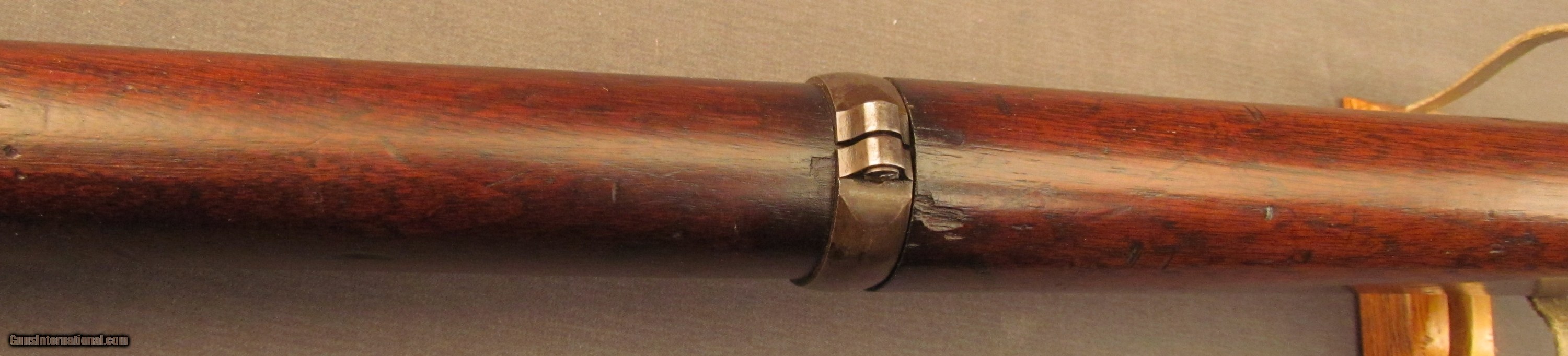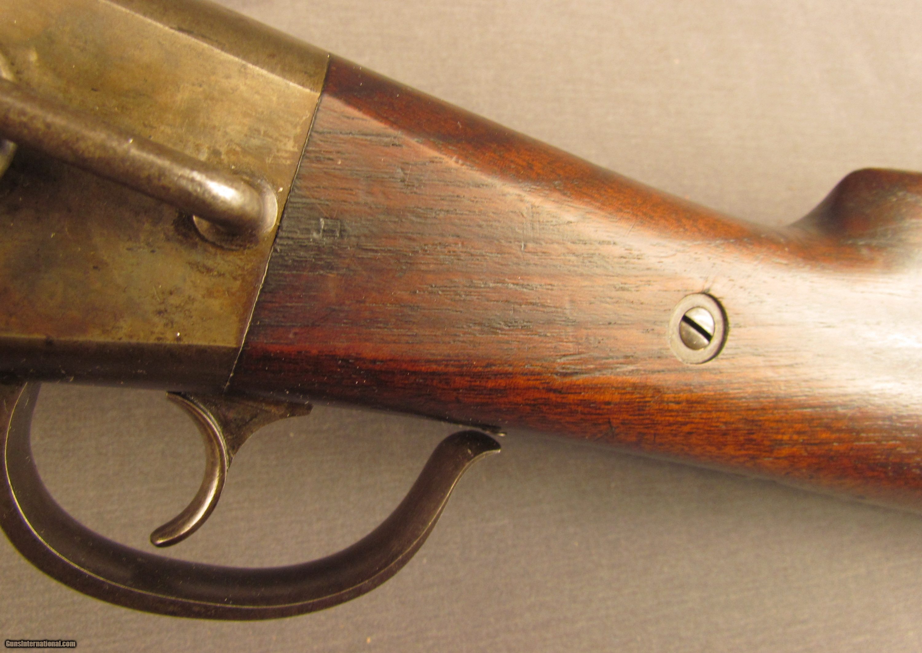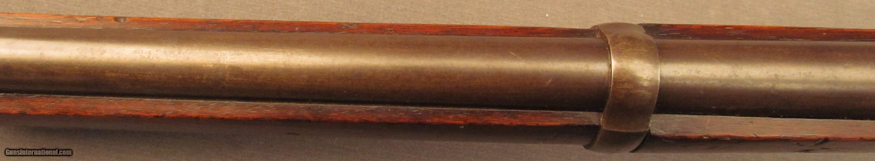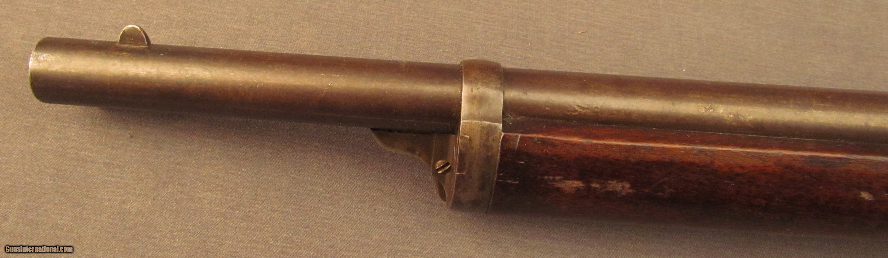 Description: Excellent condition U.S. Ball carbine built by Lamson & Co Windson Vermont. This example is one of 1002 carbines built 1864-65. Reference see Flayderman's guide 8th edition page 506. This carbine shows a bright very good plus bore. The barrel shows 90+ original blue. The action shows clear mrkings and muted color. The walnut stock shows original finish . This piece shows its' original cleaning rod. An overall excellent example for the civil war or U.S. Collector. SOLD Antique: Yes Manufacturer: Ball Model: Carbine Caliber Info: .50 Gauge Info: .50 |