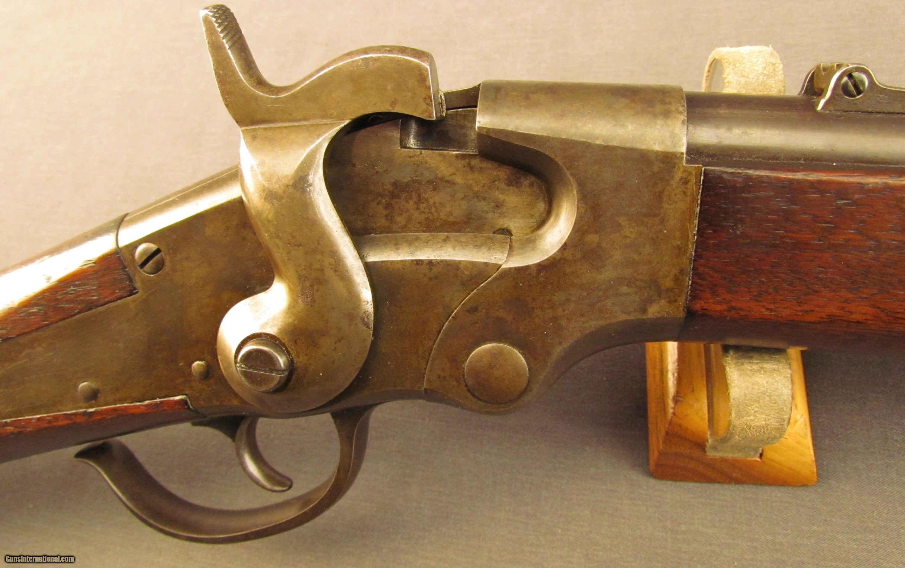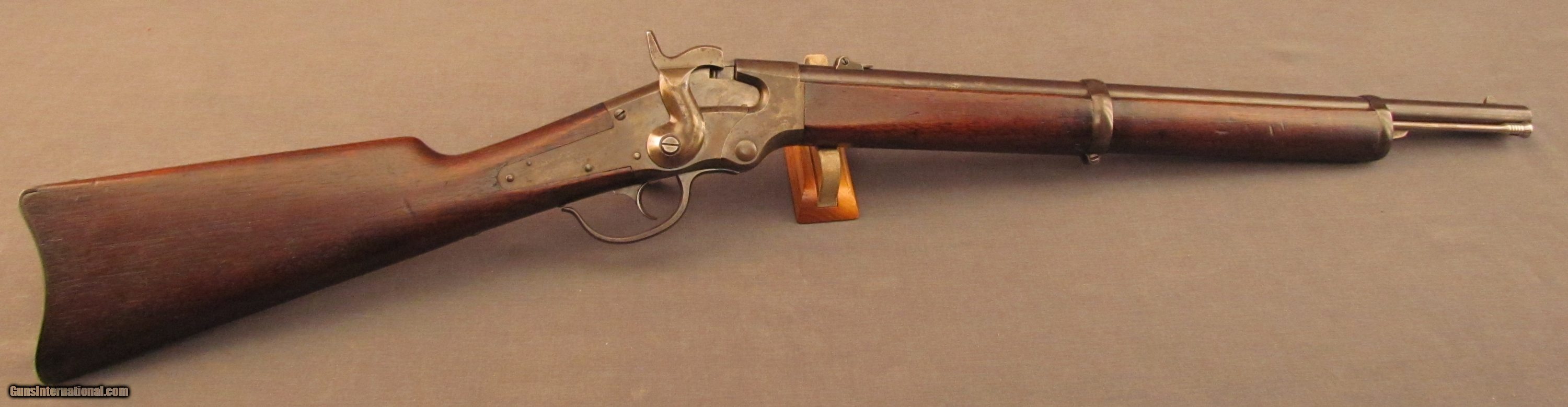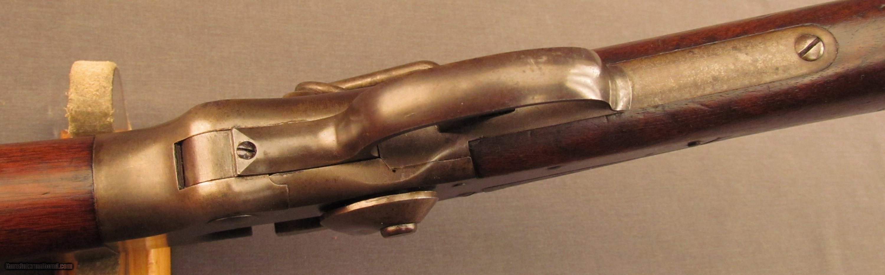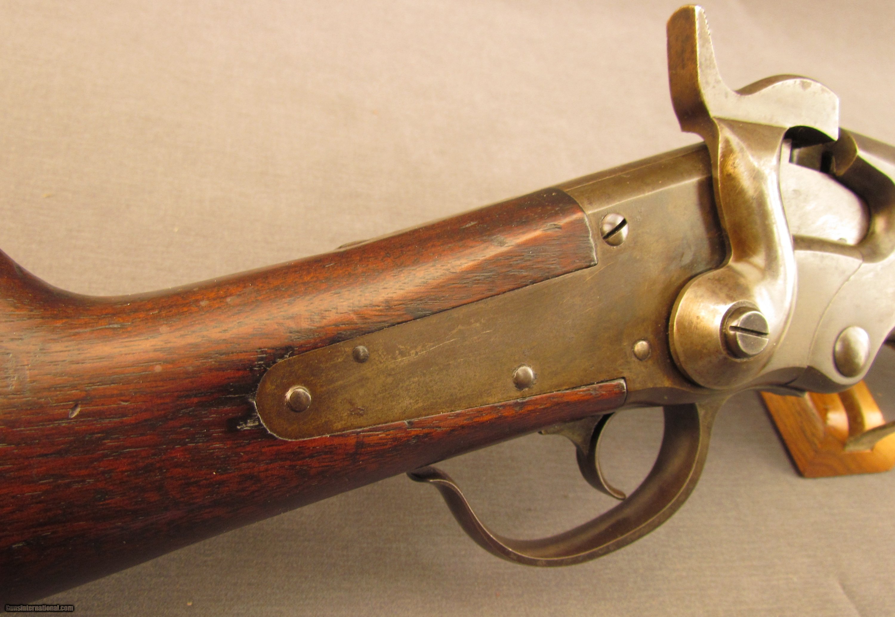 Description: Excellent condition U.S. Ball carbine built by Lamson & Co Windson Vermont. This example is one of 1002 carbines built 1864-65. Reference see Flayderman's guide 8th edition page 506. This carbine shows a bright very good plus bore. The barrel shows 90+ original blue. The action shows clear mrkings and muted color. The walnut stock shows original finish . This piece shows its' original cleaning rod. An overall excellent example for the civil war or U.S. Collector. SOLD Antique: Yes Manufacturer: Ball Model: Carbine Caliber Info: .50 Gauge Info: .50 |