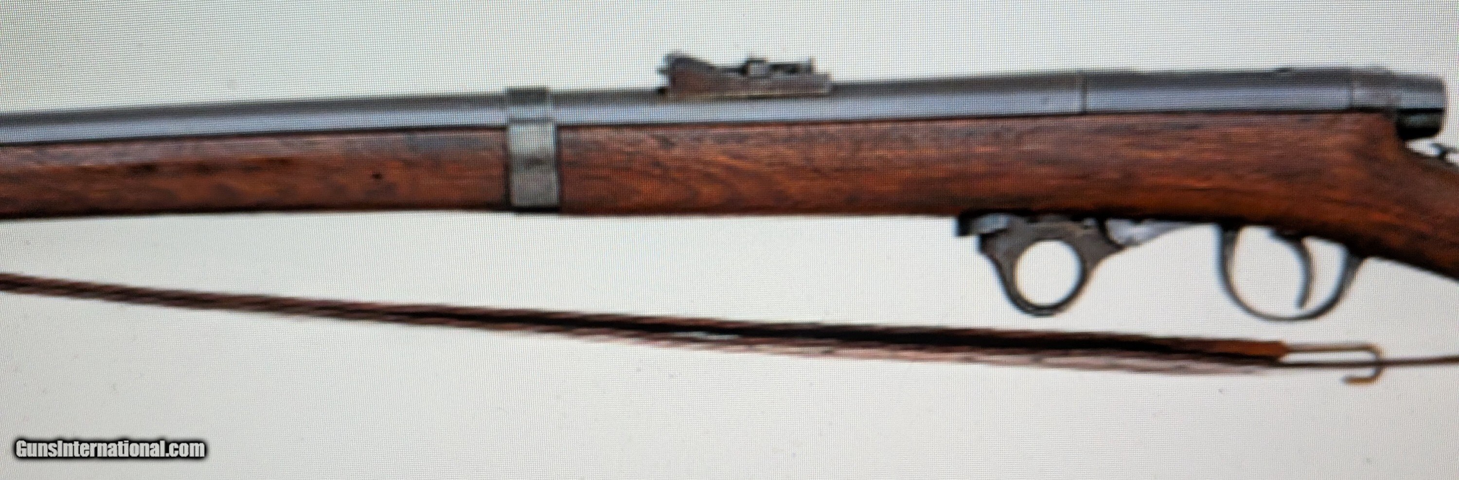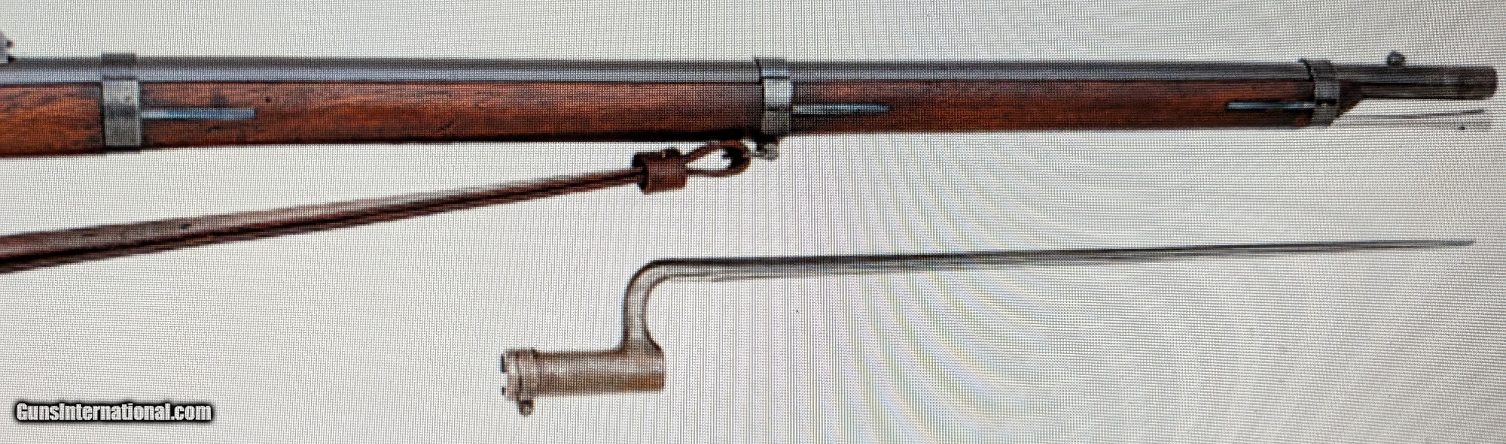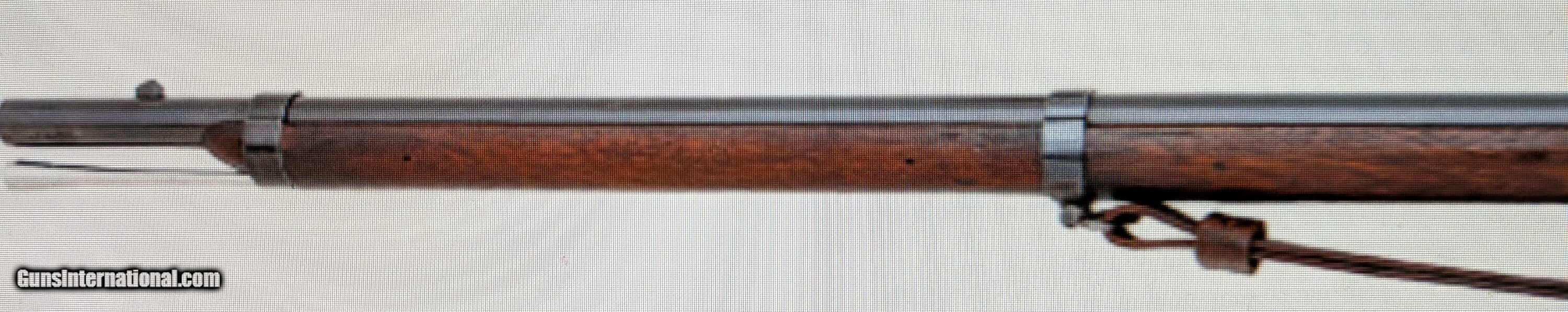 Description: ABSOLUTELY BEAUTIFUL! .....53 cal, 36” barrel with a bright excellent bore. SN 3033...The barreled action of this attractive rifle retains about 92% original blue showing some areas of light oxidation nearer the muzzle and mild drifting to gray-brown patina under bright light. The rear barrel band shows a little touched-up finish over pinprick pitting that is rather unobtrusive while the middle band retains 95% original bright blue and the triggerguard and bolt handle assembly retain about 90% original bright blue with some scattered areas of old oxidation. The underhammer retains most of its nice vibrant case-hardened colors, the buttplate shows streaks of blue flaking to a nice smooth gray-brown patina and many of the screw heads show brilliant fire blue. The upper tang shows strong Greene patent mark and there is a single “S” stamp at the barrel breech. The smooth walnut stock rates near excellent showing a few thin slivers along the ramrod channel and some mild abrasions around the front band otherwise retaining good oil finish and nice fit throughout. A trumpet-shaped ramrod is present along with a quality reproduction sling, bore brush in butt trap and an original JDG-inspected socket bayonet which is mostly a mottled gray patina showing some cleaned pinprick to light pitting. A handful of these rifles were purchased by U.S. ordnance giving this rifle the distinction of being the first bolt action breechloader technically adopted by the U.S. military. An excellent example for the antique US arms collector. ....2nd firearm ships FREE, with this one!....S/H $65..Thanks, INSURANCE IS EXTRA...I AM NOT RESPONSIBLE FOR LOST or DAMAGED PACKAGES....Thanks Greg , cp Antique: Yes Manufacturer: Greene Model: Bolt Action Serial Number: 3033 Price: $3,399.00 Buy Now Contact Seller |
