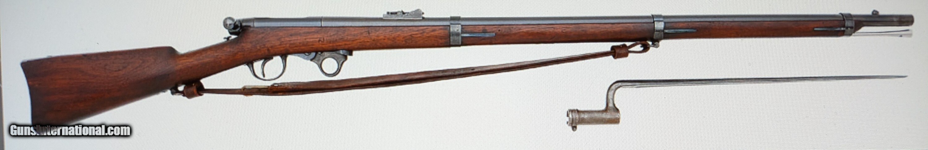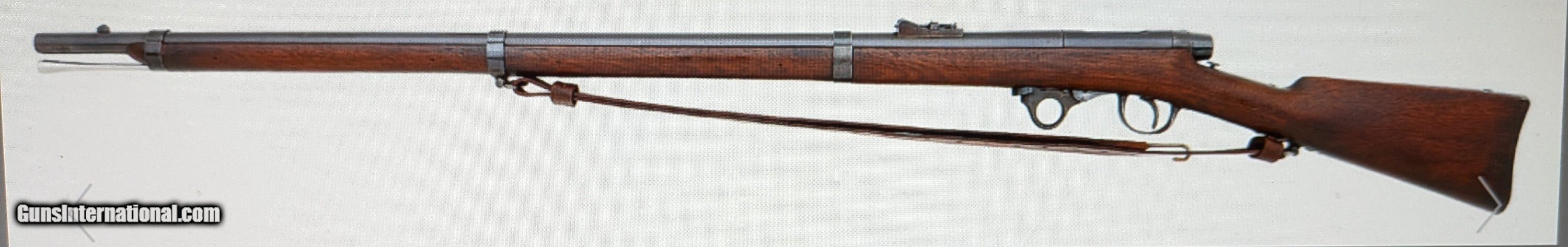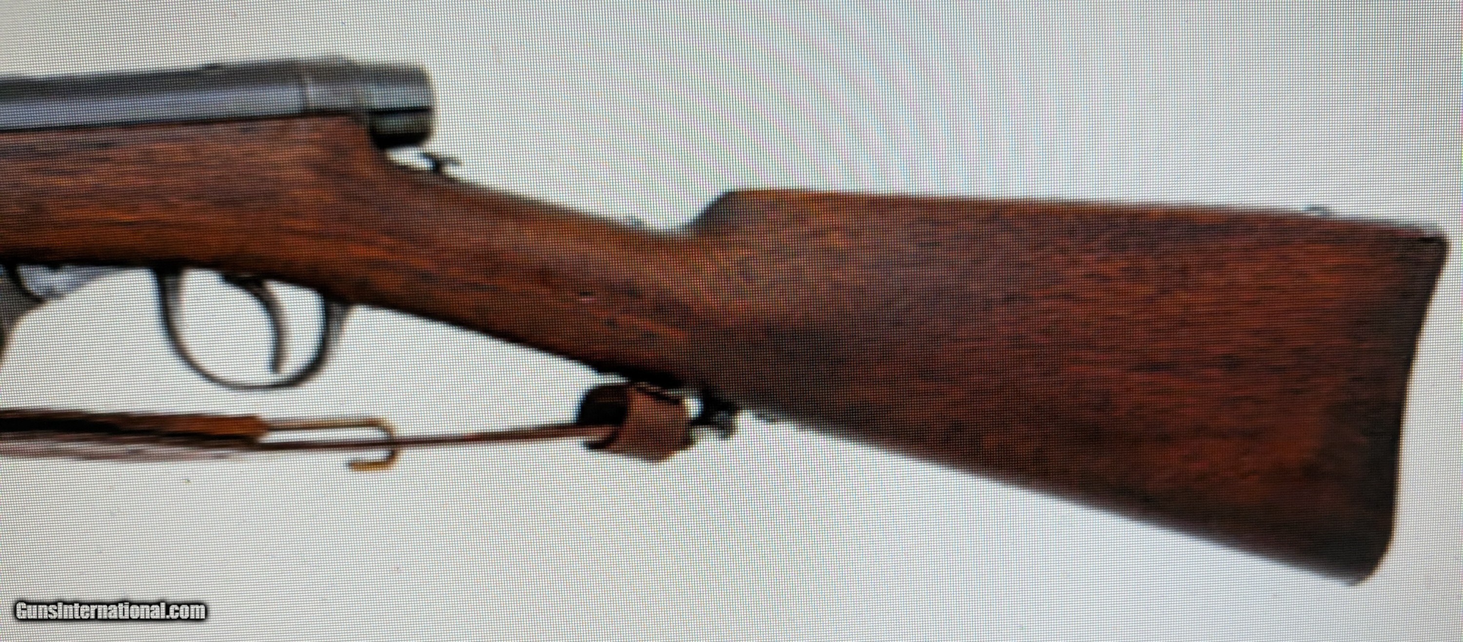 Description: ABSOLUTELY BEAUTIFUL! .....53 cal, 36” barrel with a bright excellent bore. SN 3033...The barreled action of this attractive rifle retains about 92% original blue showing some areas of light oxidation nearer the muzzle and mild drifting to gray-brown patina under bright light. The rear barrel band shows a little touched-up finish over pinprick pitting that is rather unobtrusive while the middle band retains 95% original bright blue and the triggerguard and bolt handle assembly retain about 90% original bright blue with some scattered areas of old oxidation. The underhammer retains most of its nice vibrant case-hardened colors, the buttplate shows streaks of blue flaking to a nice smooth gray-brown patina and many of the screw heads show brilliant fire blue. The upper tang shows strong Greene patent mark and there is a single “S” stamp at the barrel breech. The smooth walnut stock rates near excellent showing a few thin slivers along the ramrod channel and some mild abrasions around the front band otherwise retaining good oil finish and nice fit throughout. A trumpet-shaped ramrod is present along with a quality reproduction sling, bore brush in butt trap and an original JDG-inspected socket bayonet which is mostly a mottled gray patina showing some cleaned pinprick to light pitting. A handful of these rifles were purchased by U.S. ordnance giving this rifle the distinction of being the first bolt action breechloader technically adopted by the U.S. military. An excellent example for the antique US arms collector. ....2nd firearm ships FREE, with this one!....S/H $65..Thanks, INSURANCE IS EXTRA...I AM NOT RESPONSIBLE FOR LOST or DAMAGED PACKAGES....Thanks Greg , cp Antique: Yes Manufacturer: Greene Model: Bolt Action Serial Number: 3033 Price: $3,399.00 Buy Now Contact Seller |