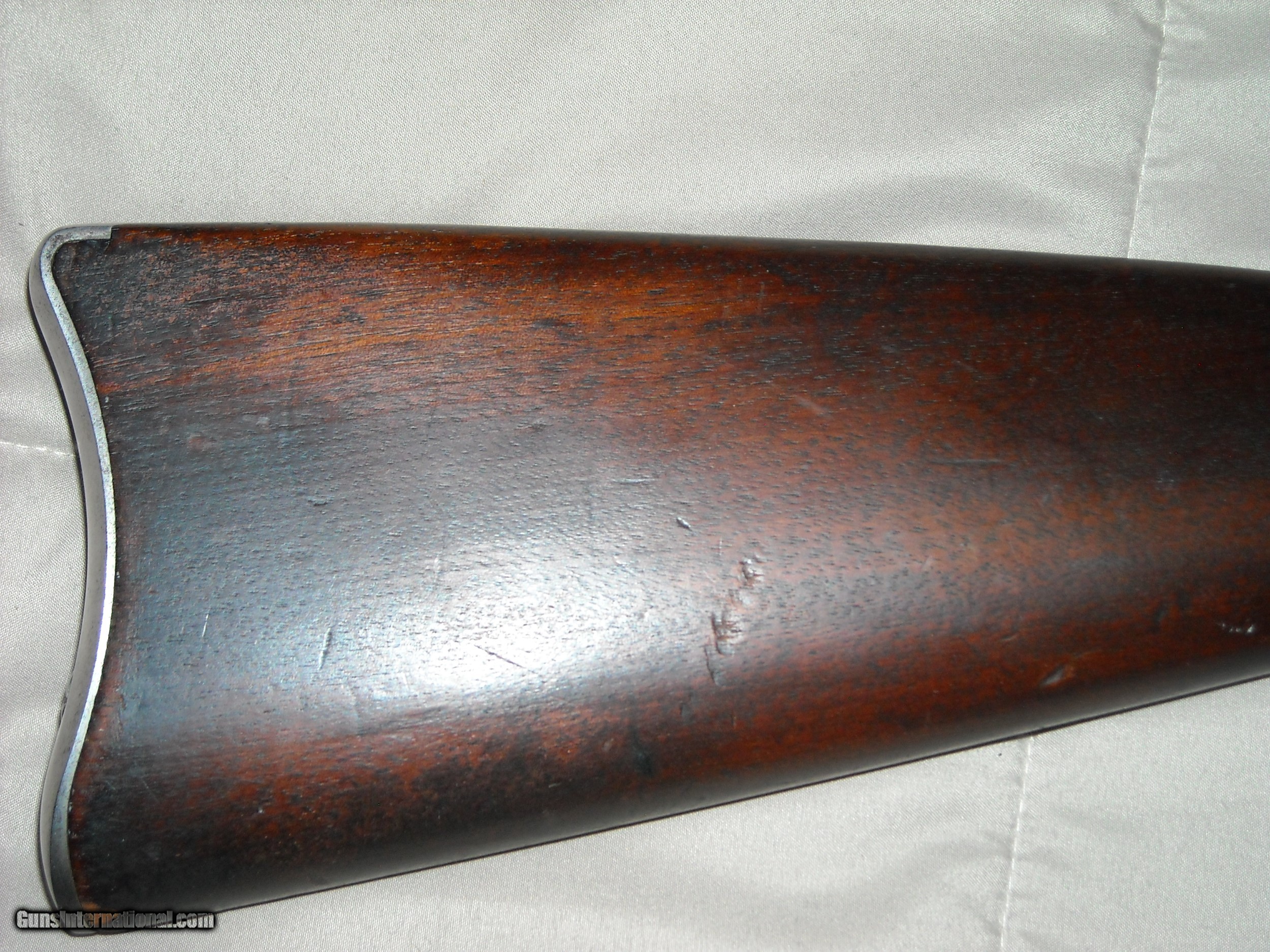 Description: This is a very fine condition U.S. Springfield Model 1863 Type I Rifle-Musket. The Type I Springfield was produced only in 1863 and features screw clamped barrel bands, a flat faced hammer, and a two-leaf rear sight. The lock and hammer on this gun are beautifully case hardened with about 70% bright colors remaining. Lock is marked with the date, 1863 behind the hammer and the federal eagle with U.S. Springfield in front of the hammer. Lock mechanics are perfect. Barrel is marked with the date, 1863 on the top flat and the Springfiedl armory V, P, and eagle head proofs at the left barrel flat of the breech. A federal eagle is also stamped on the face of the nipple bolster. All iron mounts and the barrel are polished smooth semi-bright steel with no rust or pitting. The 2-leaf rear sight, band springs, and percussion nipple are blued. The .58 caliber barrel is rifled with 3 broad lands and grooves and the bore is clean and bright. The walnut stock is untouched, never sanded or cleaned and retains a nice patinaed uniform original oil finish medium brown color. There are two correct federal inspection cartouches on the left flat of the stock and the ramrod channel shows no splinters or chips. There is no damage to the stock and it retains good sharp edges. The gun retains all of its original fine screws, sling swivels and ramrod. Overall this is a fine example of the Type I Model 1863 Springfield rifle-musket. These fine guns were heavily used in many of the Civil War battles from 1863 to the end of the war. SOLD Antique: Yes |