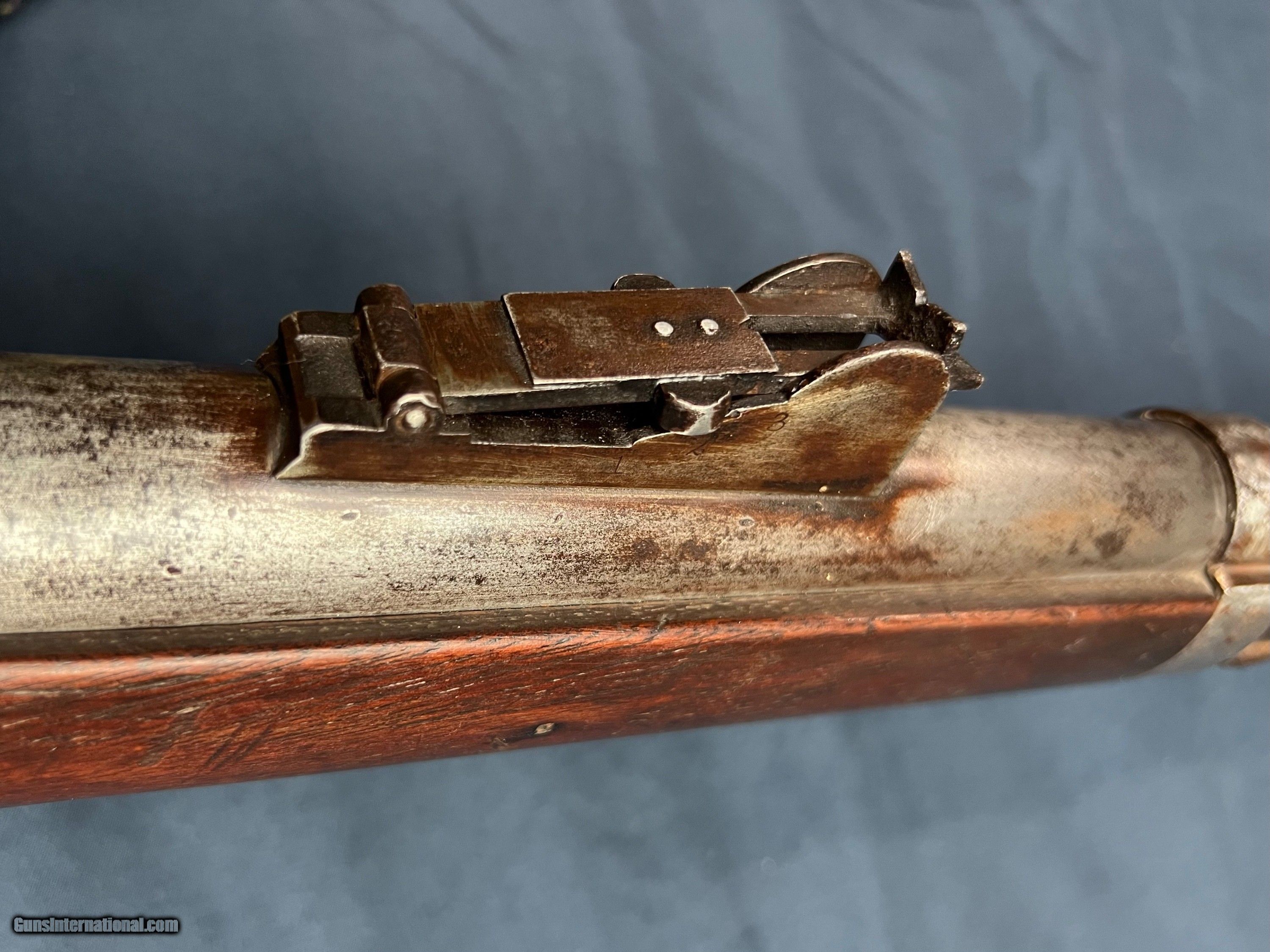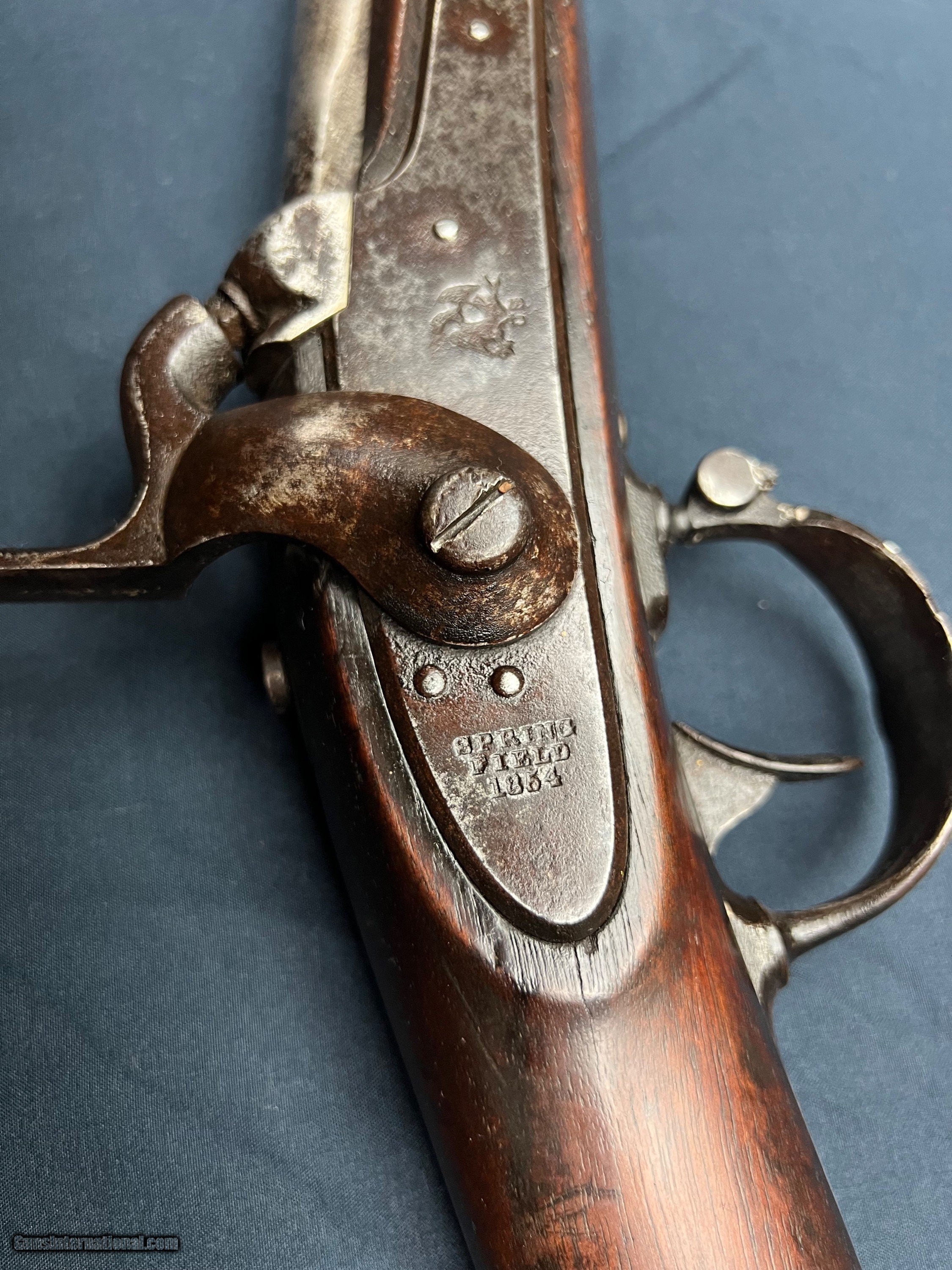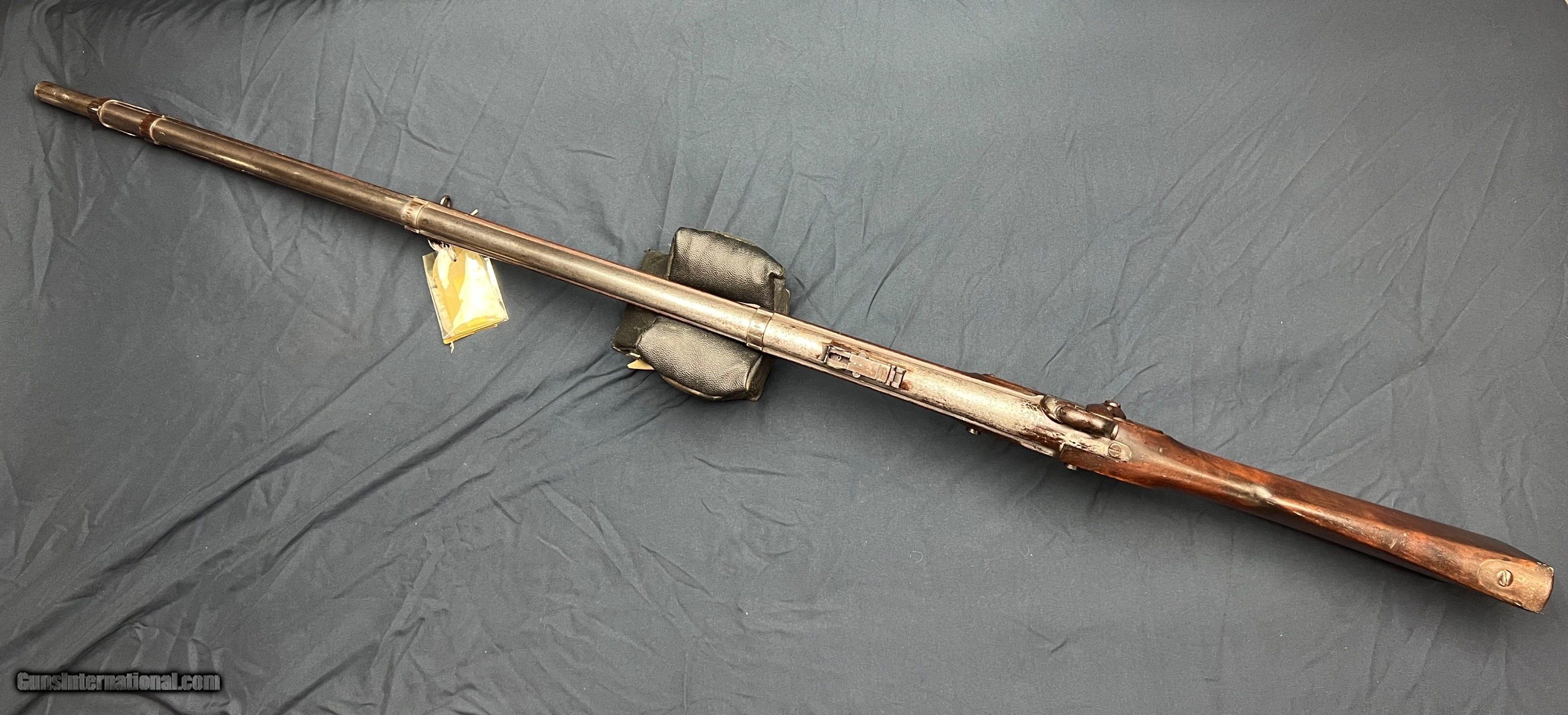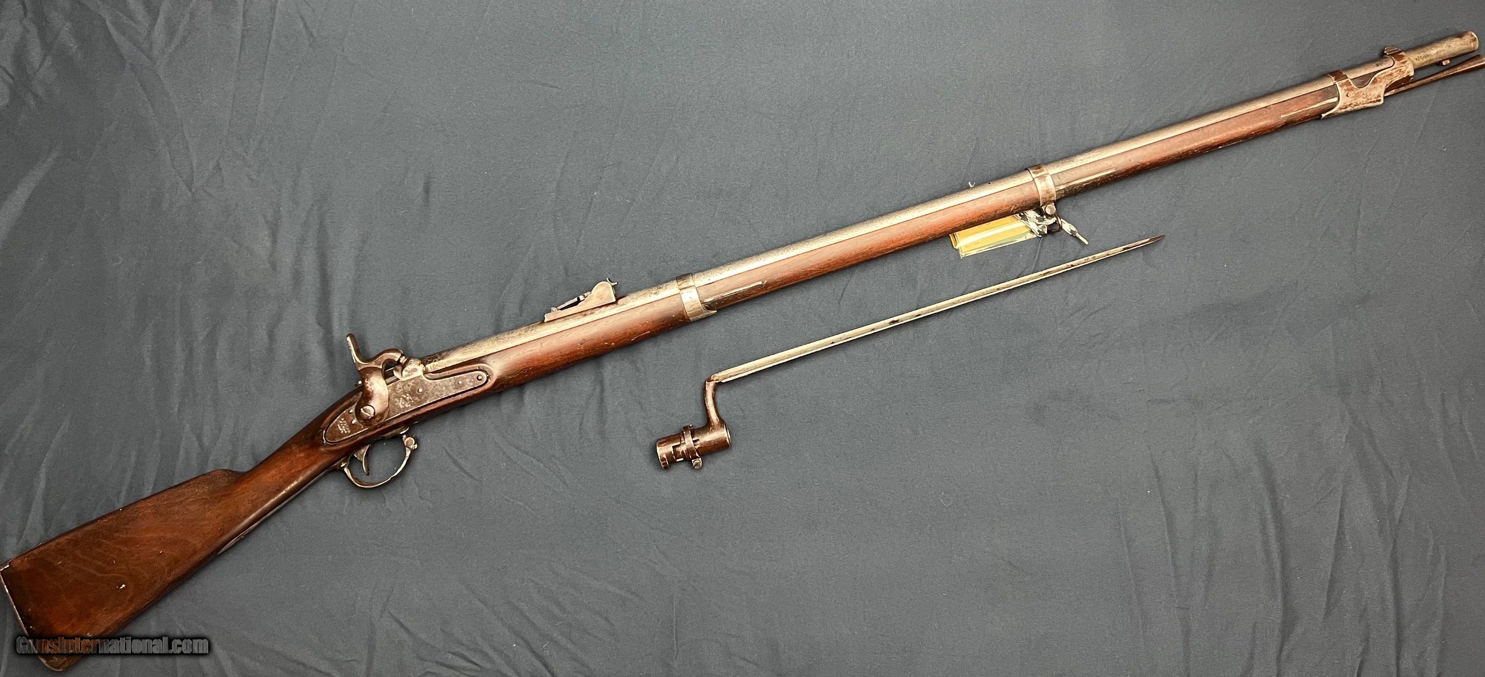 Description: Price includes shipping in the 48 states. Offered here is a hard to find, fine example of a proper rifled and sighted Civil War era U.S. Springfield Model 1842 percussion musket, that came right of an estate of an 80 year collection. Less than 10,000 of these .69 caliber muskets were converted between c. 1856-1859 with rifled bores and fitted with the long range sights by the Springfield and Harpers Ferry Armories. The usage rate of this variant was extremely high during the Civil War. Hence, these rifled and sighted 1842s are hard to find today, and the limited surviving examples are typically in rough shape, excluding this very fresh example. The edges and markings in this musket remain sharp and defined overall. It has just the right signs of some use that Civil War collectors look for. The lock has an “1854” date and barrel tang has an “1855” date, in which it was certainly originally made this way. The breech of the barrel has the “V/P” proofs above the eagle head stamp, the lock has the federal eagle motif and Springfield manufacturer marking above its date, the left stock flat has a very nice bordered “JS” inspection cartouche stamp, and the buttplate is “US” marked. A socket bayonet accompanies the musket, and appears to have never left its side based on the unmistakable matching patina. As an antique, this can ship directly to your doorstep in most states! Antique: Yes Rifle Caliber: .69 Manufacturer: Springfield Model: 1842 Barrel Length: 42 inch Price: $2,500.00 Buy Now Pay with