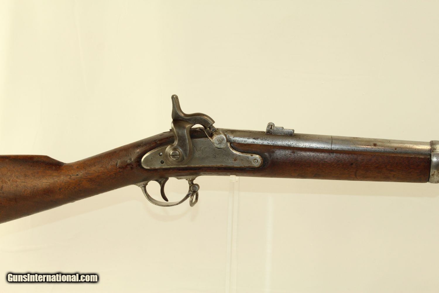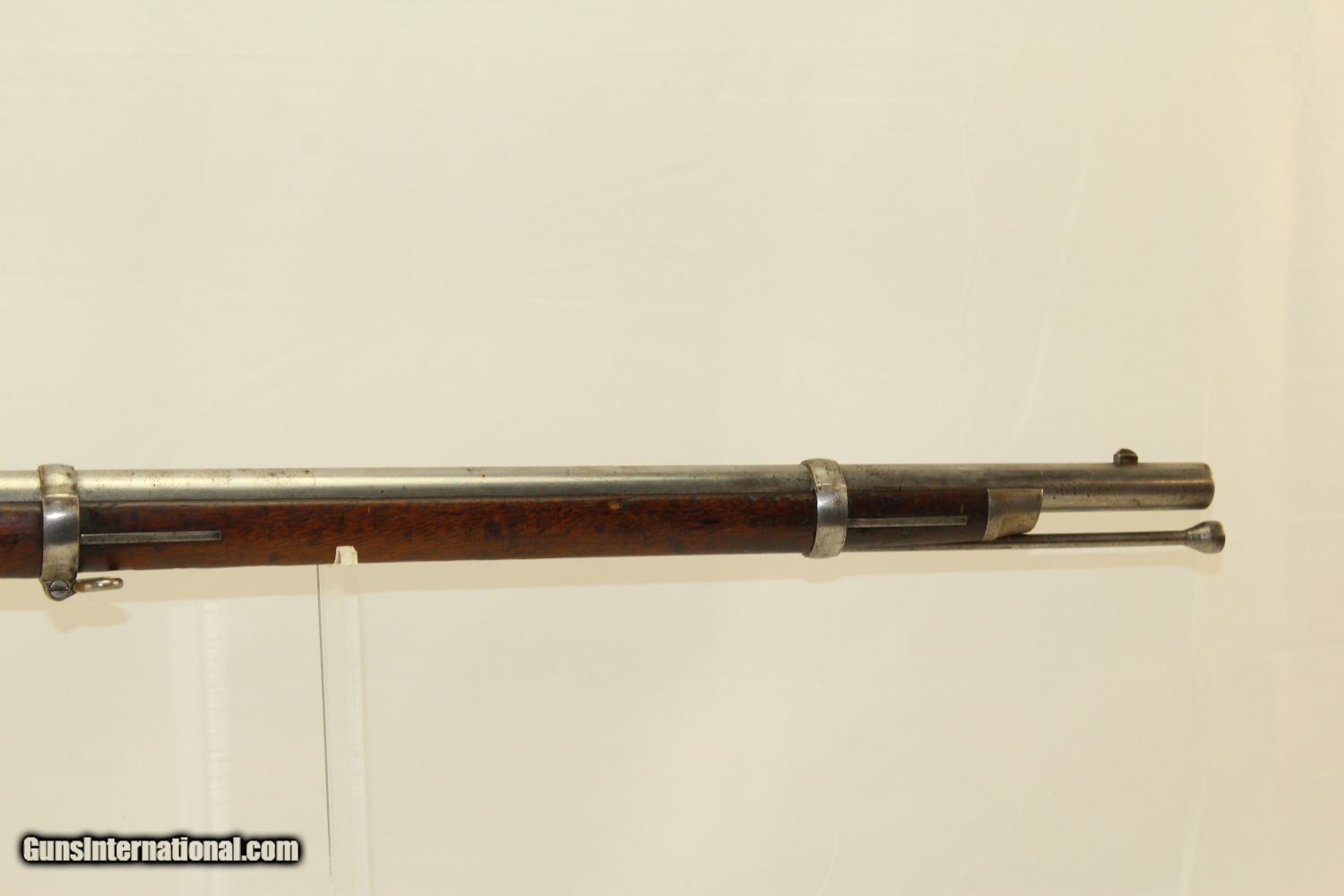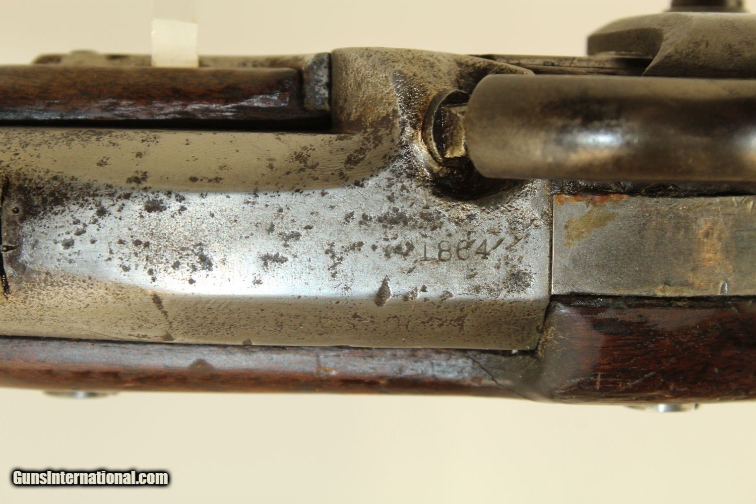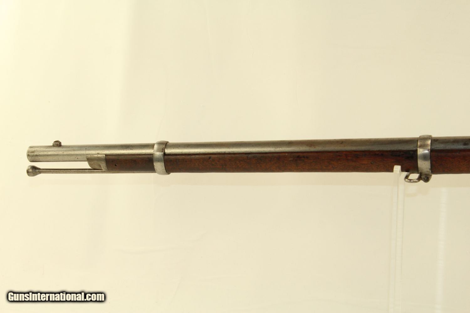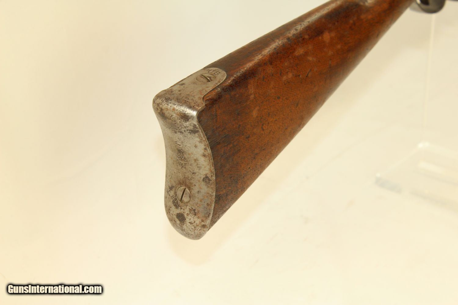 Description: Front Line INFANTRY Rifle-Musket from the CIVIL WAR Springfield US M1863 Made at the SPRINGFIELD ARMORY Circa 1864 Here we present a Springfield U.S. Model 1863 Type II Rifle-Musket, manufactured at the Springfield Armory in Springfield, Massachusetts circa 1864. At the beginning of the American Civil War, the South and North both relied heavily on imported rifles. It wasn’t until the North adopted the .58 Caliber Springfield musket that the average infantryman would evolve into an accurate marksman and effectively turn the tide of the war. The M1863 is representative of the “everyman’s” rifle during the war. About 1.5 million rifle-muskets were made in the U.S., over 800,000 of which were made by the Springfield Armory. This was the last hurrah of the rifle-musket as arms development and tactics rapidly advanced during the short period of the American Civil War. Nevertheless, the 1861 represented new technology as it was made for use with the Minié ball, a hollow based, conical projectile that was small enough to quickly push down the muzzle of a rifled barrel, and expanded to create a good gas seal unlike a solid, round ball. This musket also featured, for the first time in the arms market, static iron sights. Almost immediately after the war, the US military switched from the old muzzle loading type weapons to the newer breech loading rifles, bringing an end to the musket as a standard frontline firearm in American history. The Model 1863 was only a minor improvement over the Springfield Model 1861. As such, it is sometimes classified as just a variant of the Model 1861. The Model 1863 was produced in two variants. The Type I eliminated the band springs and replaced the flat barrel bands with oval clamping bands. It also featured a new ramrod, a case-hardened lock, a new hammer, and a redesigned bolster. The Type II is sometimes referred to as the Model 1864 but is more commonly referred to as just a variant of the Model 1863. This version re-introduced band springs, replaced the clamping bands with solid oval bands, and replaced the three-leaf rear sight with single leaf sight. A total of 255,040 of these were manufactured from 1864 to 1865. The lock is marked “U.S./SPRINGFIELD” and dated “1864”. The barrel is also dated “1864”. The overall condition is Very Good. The action is strong and tight. The bore is in good condition, retaining sharp rifling. A wonderful piece of history that can be yours. Own the original! This is a legitimate antique and not a reproduction. Barrel is 40 inches. Caliber: .58 Percussion Overall condition as seen in photos. Very Fast. Very Safe. FREE SHIPPING WORLDWIDE. Delivered directly to your door by express mail! Guaranteed AUTHENTIC & Includes CERTIFICATE OF AUTHENTICITY. ancestryguns $1700 #190966 SOLD Antique: Yes |