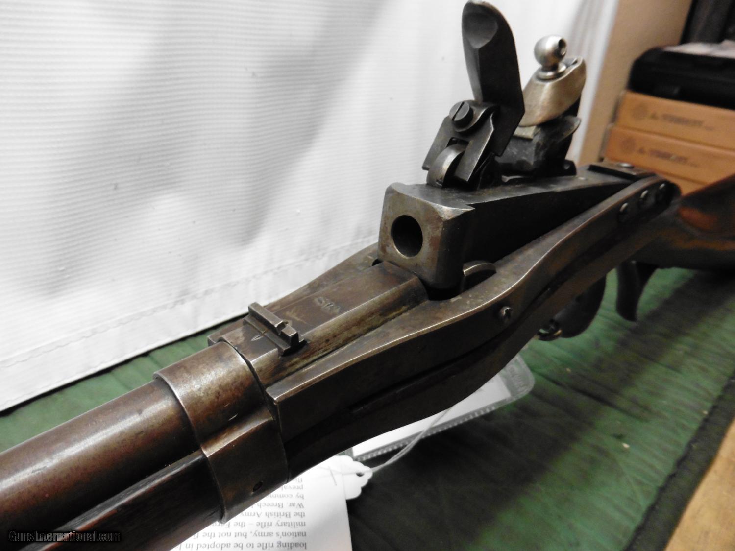 Description: HALL M1819 FLINTLOCK BREACH LOADING RIFLE MARKED H. FERRY US 1832 .52 CAL 32.75" BBL GUN IS IN OVERALL EXCELLENT CONDITION ONE TINY CRACK AT REAR OF RECEIVER. MARKED 2138 IN STOCK AT REAR OF RECEIVER. CALL OR EMAIL WITH QUESTIONS SOLD Antique: Yes |