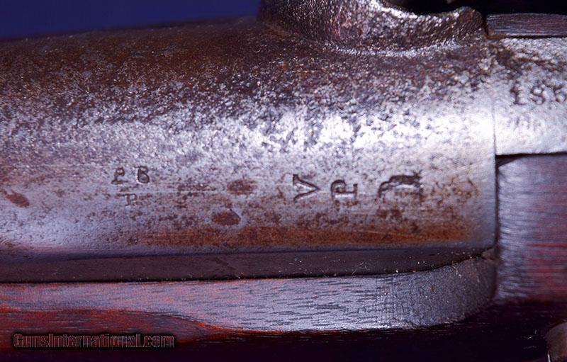 Description: Harpers Ferry Model 1842 "US" percussion musket, .69 caliber, 58" OAL with a 42" barrel. Lock marked "Harpers Ferry 1851" with American Eagle and in good working order. The barrel is marked "V P" with inspector marks & has the Eagle head proof. Barrel tang is also marked "1851". U.S. on the butt plate. Metal surfaces have a smooth mottled brown patina. The walnut stock has a "flat finish" with inspector marks & carvings including initials M. K. on left side along with unidentified symbols. Bayonet marked U.S. and fits well on the musket. Period correct design replacement parts, including nipple, ramrod and sling. The 1842 muskets were very popular among the Union & Confederate units. SOLD Antique: Yes |