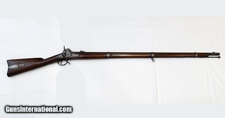 Description: Harpers Ferry Model 1855 Three Band Rifle. Old repair to the wrist which is hardly noticable. Rest of gun shows it's age but in very decent condition. Lock dated 1860. All primer parts intact and working. SOLD Antique: Yes |