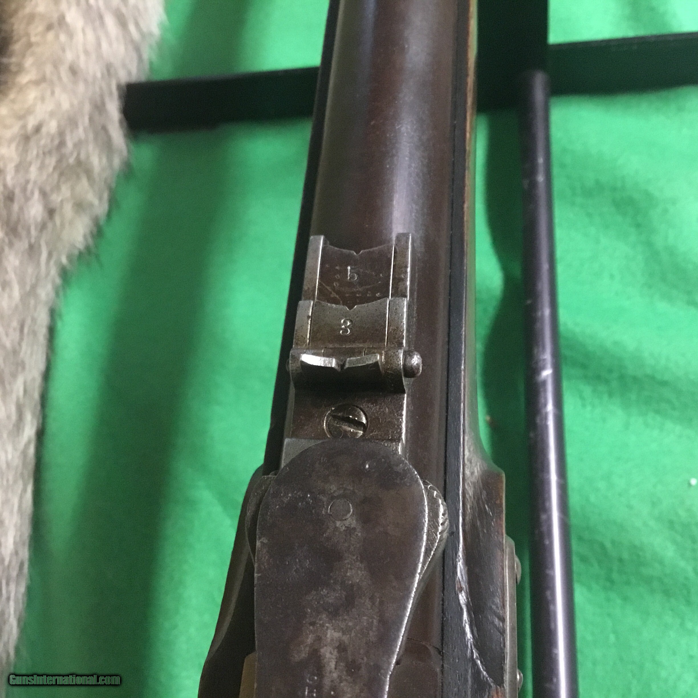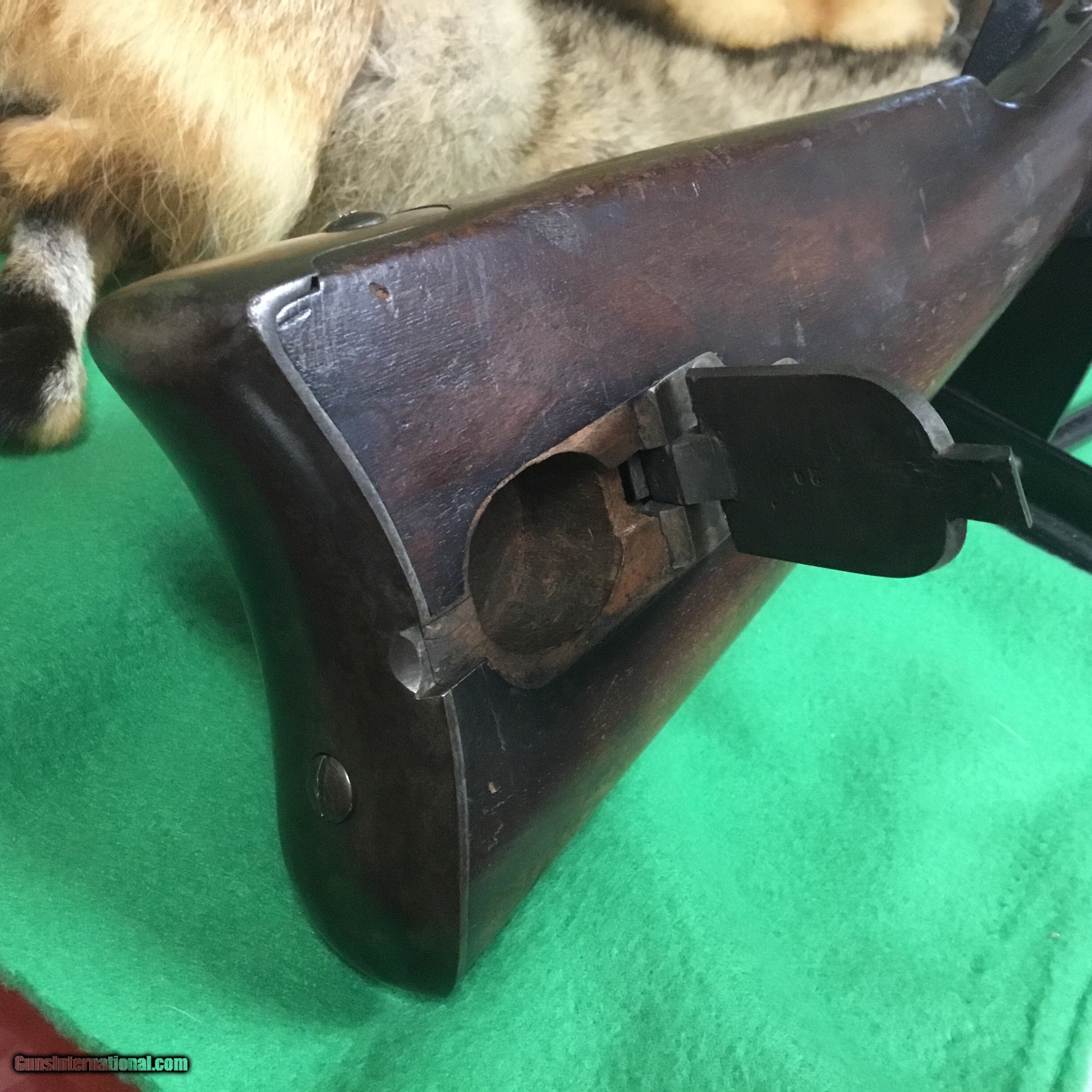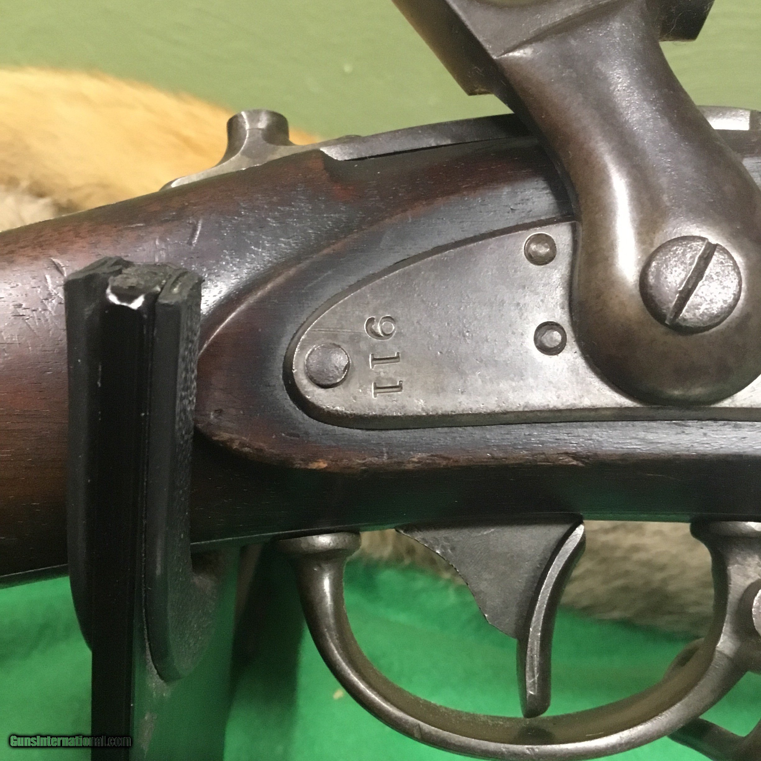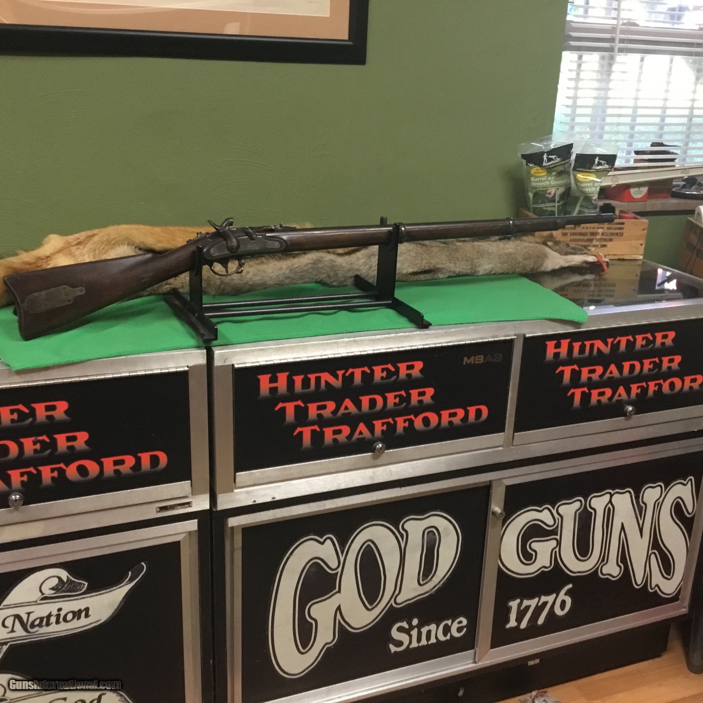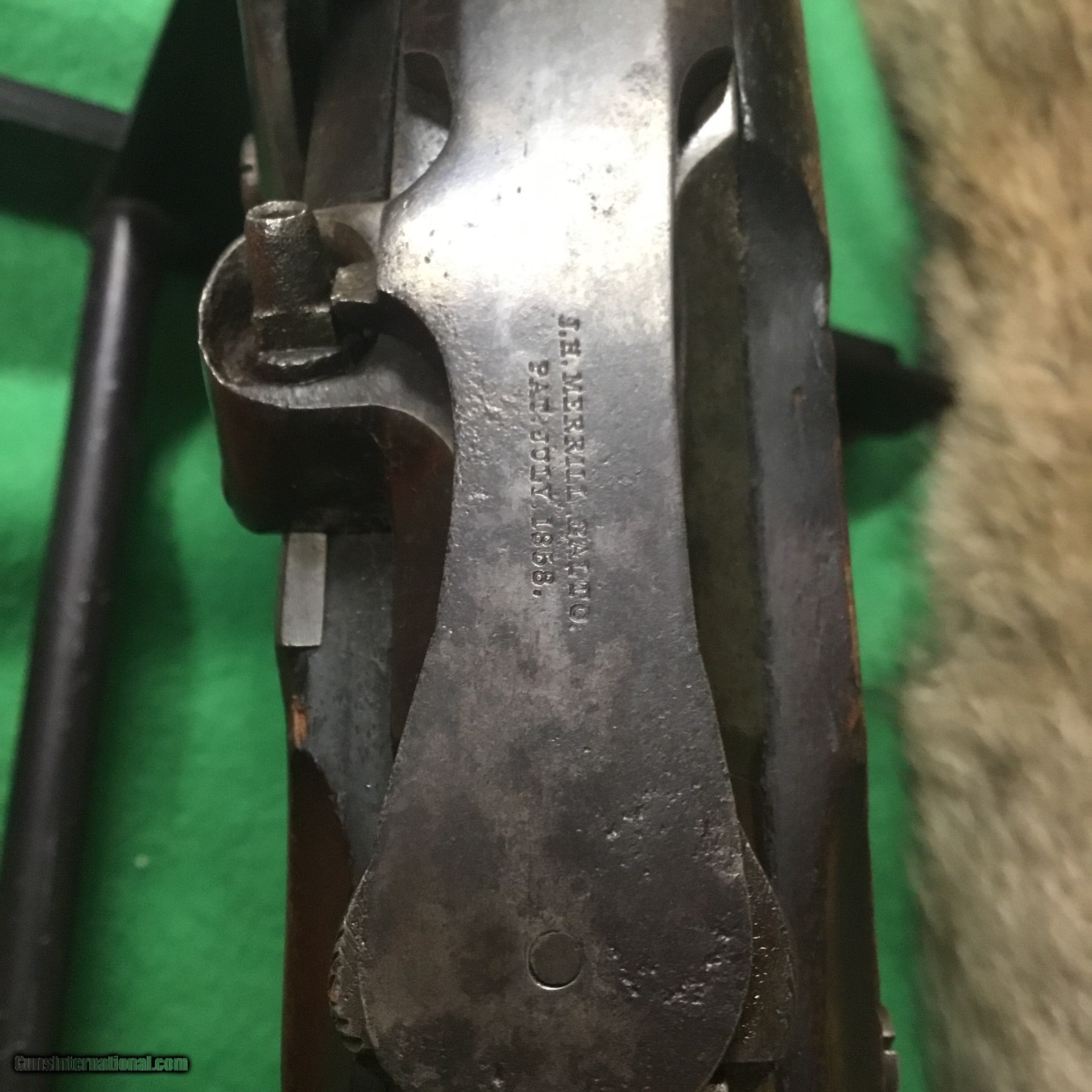 Description: For sale we have a consigned J.H.Merrill breech loading 54 caliber percussion rifle. This rifle was family owned and passed on. What we know about this rifle is that the carbines are out there, but the rifles are quite rare. I am not one to brag all my new found facts about this rifle, but I will say this. This rifle, as far as condition goes, this rifle is as nice if not nicer than everything that’s out there right now. What I did notice is, there are no cartouches I can see, I don't know if they're worn off or I missed them. Also I don’t see any inspector marks or markings, I am far from a Civil War rifle specialist, but from a standpoint of condition, the screws look to be right, and there isn’t anything jumping out at you when looking over the rifle. The serial number is clearly marked 911, which with all that we read, I have questions myself. As far as pricing goes, it’s no different than any other firearm, is that they are from 2000 to 10,000. So if you are interested, you can give me a call and I will be happy to listen or try to find out what no cartouches mean or even inspector stamping. All I know for sure right now is that it is a rare firearm, and I believe it to be original. Again, no expert, but that’s my take. So if you're excited ? So am I. This will ship to your door, and I feel based on what we have been looking at is a reasonable asking price. Need more info, give us a call. Shipping will be actual. SOLD |