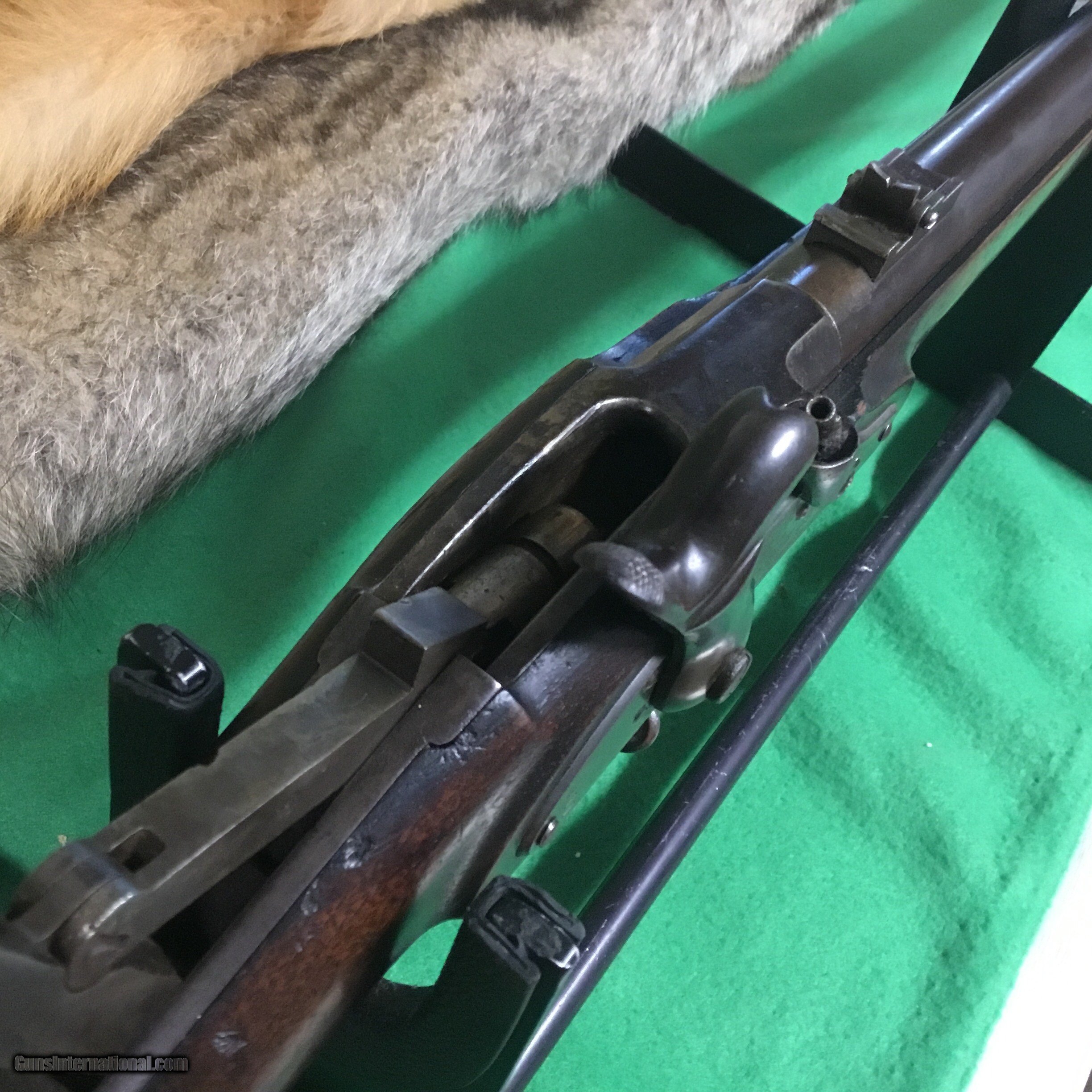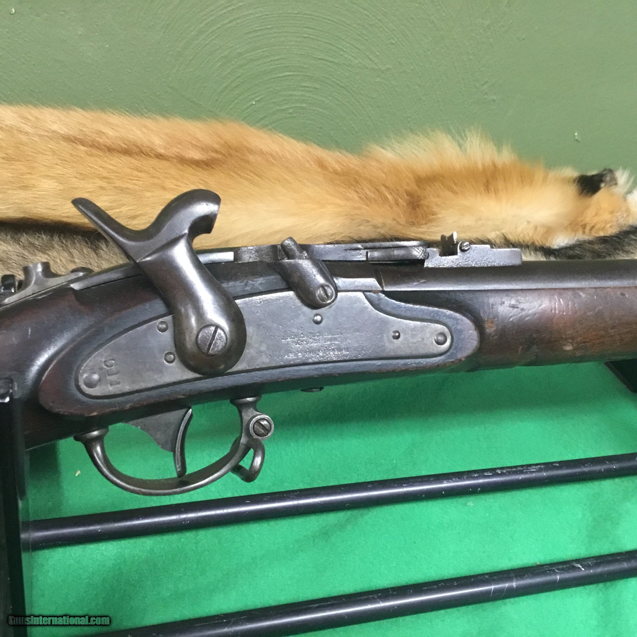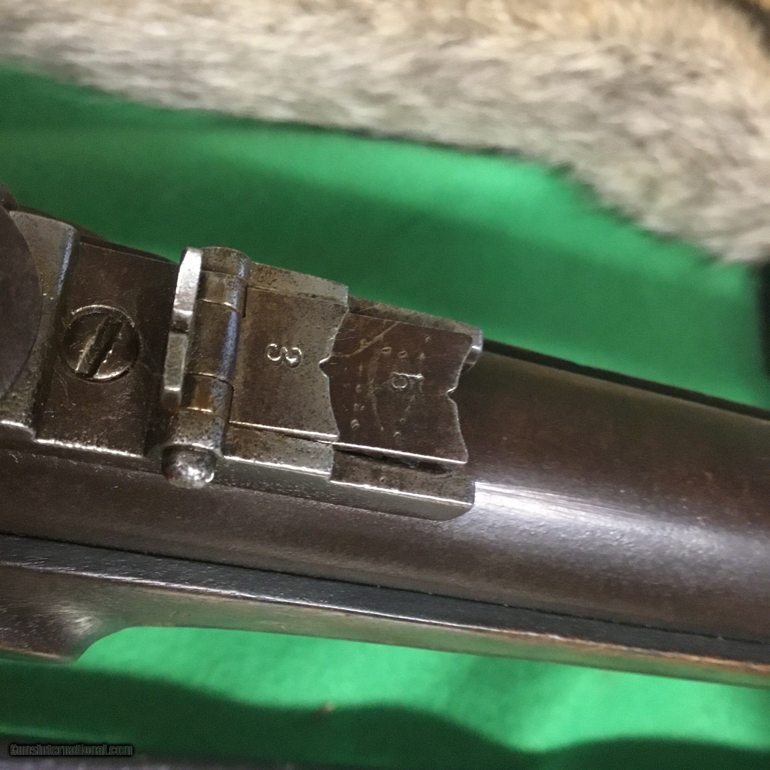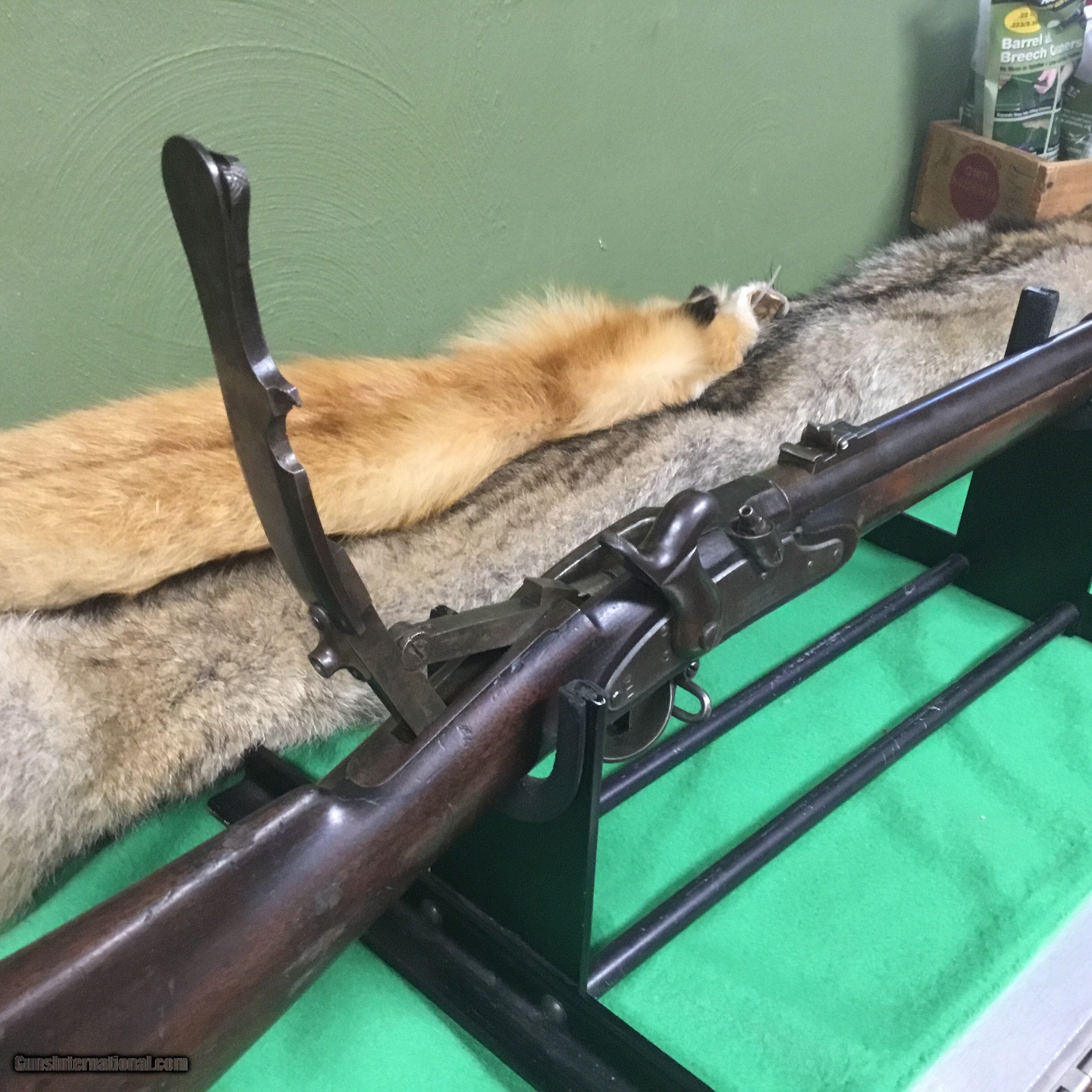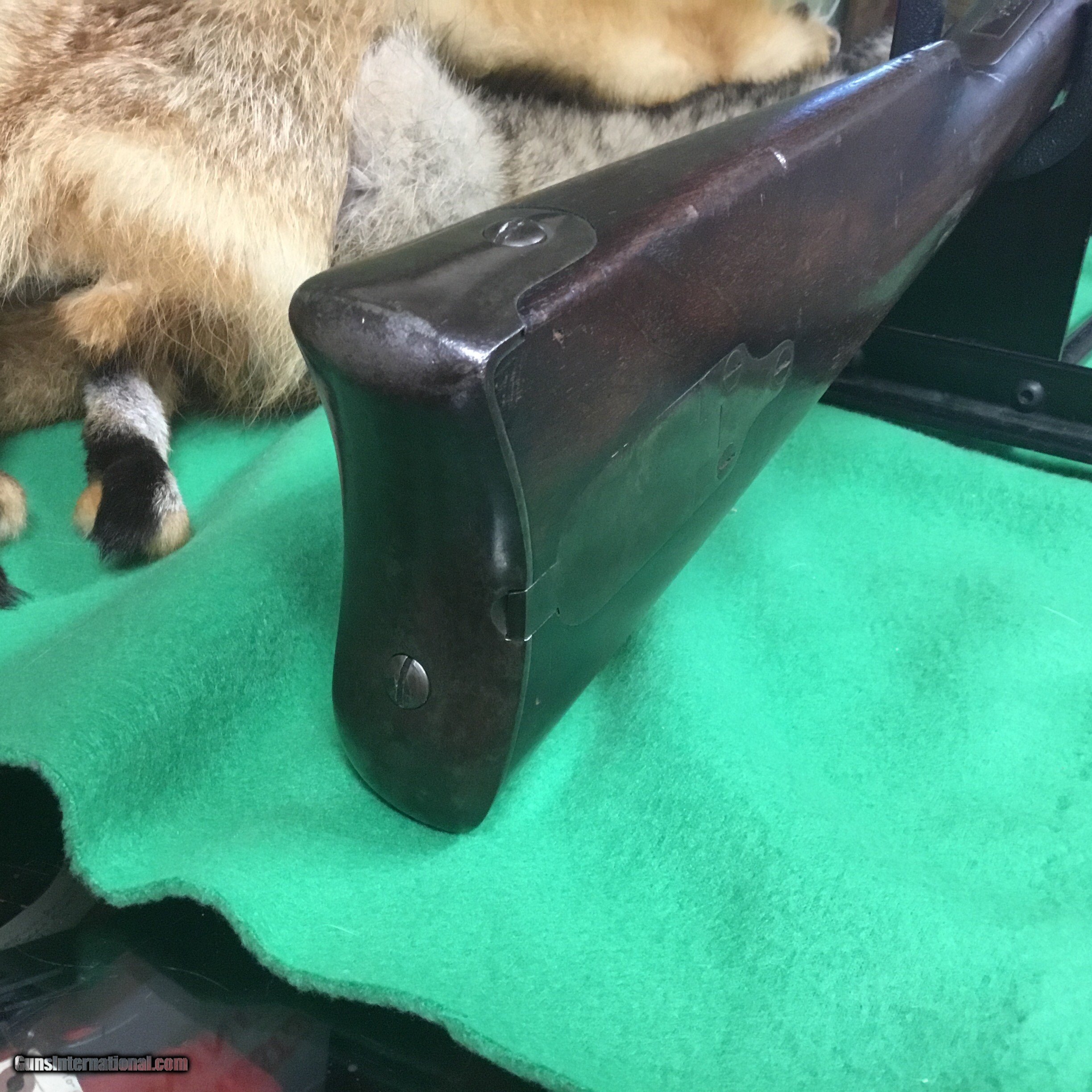 Description: For sale we have a consigned J.H.Merrill breech loading 54 caliber percussion rifle. This rifle was family owned and passed on. What we know about this rifle is that the carbines are out there, but the rifles are quite rare. I am not one to brag all my new found facts about this rifle, but I will say this. This rifle, as far as condition goes, this rifle is as nice if not nicer than everything that’s out there right now. What I did notice is, there are no cartouches I can see, I don't know if they're worn off or I missed them. Also I don’t see any inspector marks or markings, I am far from a Civil War rifle specialist, but from a standpoint of condition, the screws look to be right, and there isn’t anything jumping out at you when looking over the rifle. The serial number is clearly marked 911, which with all that we read, I have questions myself. As far as pricing goes, it’s no different than any other firearm, is that they are from 2000 to 10,000. So if you are interested, you can give me a call and I will be happy to listen or try to find out what no cartouches mean or even inspector stamping. All I know for sure right now is that it is a rare firearm, and I believe it to be original. Again, no expert, but that’s my take. So if you're excited ? So am I. This will ship to your door, and I feel based on what we have been looking at is a reasonable asking price. Need more info, give us a call. Shipping will be actual. SOLD |