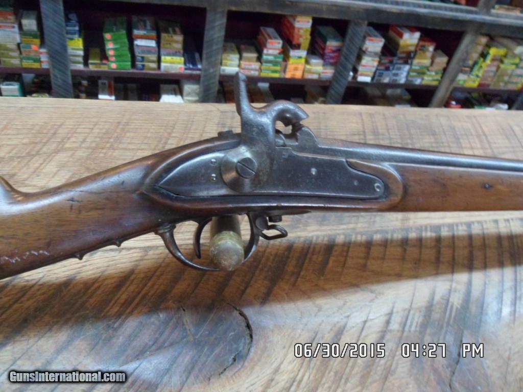 Description: CIVIL WAR AREA MODEL 1844/60 BELGIUM PEIDMONTESE 69 CALIBER RIFLE / IMPORT MUSKET WITH ORIGINAL BAYONET AND SCABBARD.40 1/2" RIFLED 4 GROOVE BARREL WITH SHOOTABLE BORE FOR MINIE TYPE PROJECTILE.AUGUST FRANCOTTE MADE IN LEIGE BELGIUM.DESIGNED AS A PERCUSSION MUSKET.HAS A A.FRANCOTTE CIRCLE CARTOUCHE ON STOCK.LIGHT PITTING AT BREECH NIPPLE AND BALANCE OF METAL IS BROWN PATINA.EUROPEAN WALNUT STOCK WITH OLD CRACK REPAIR AT WRIST. NOW VERY SOLID.ORIGINAL TRIANGLE BAYONET IN GOOD CONDITION AND HAS ORIGINAL LEATHER SCABBARD IN GOOD CONDITION WITH ORIGINAL TRUMPET STYLE RAMROD.NO FFL NEEDED. 1195.00 PLUS 50.00 SHIPPING.CALL DANNY AT 828-698-8804 IF NEEDED.GOD BLESS! SOLD |