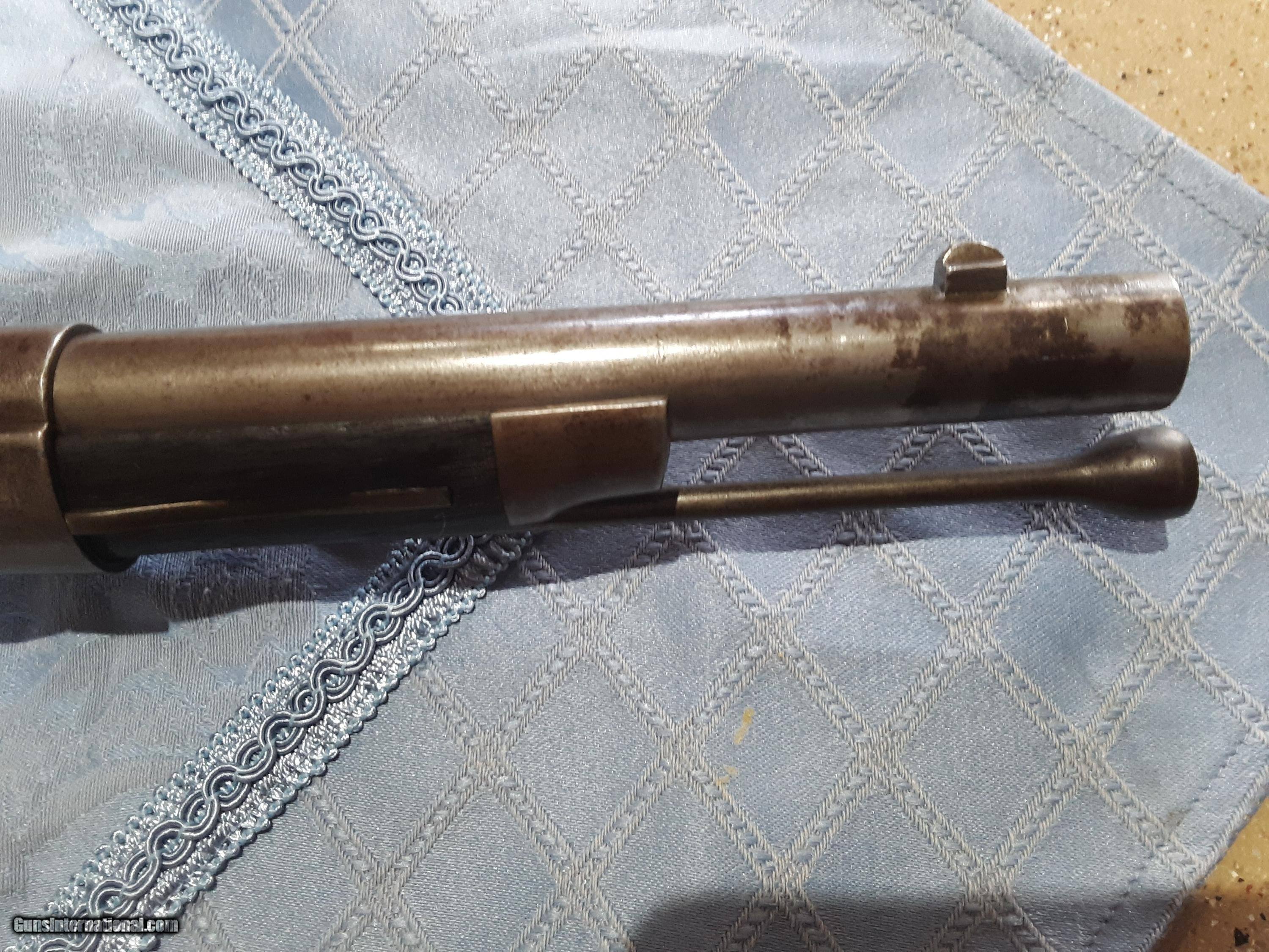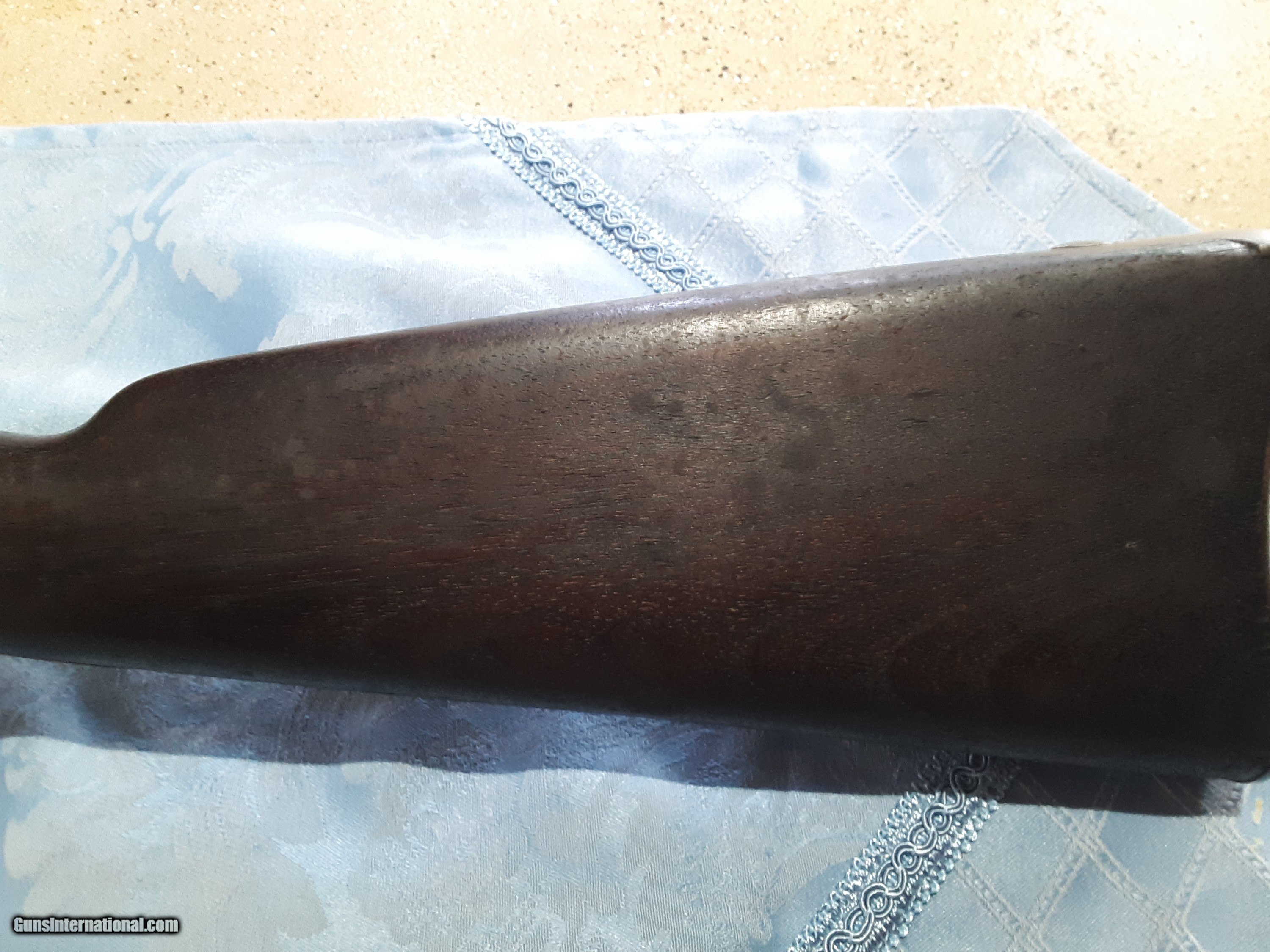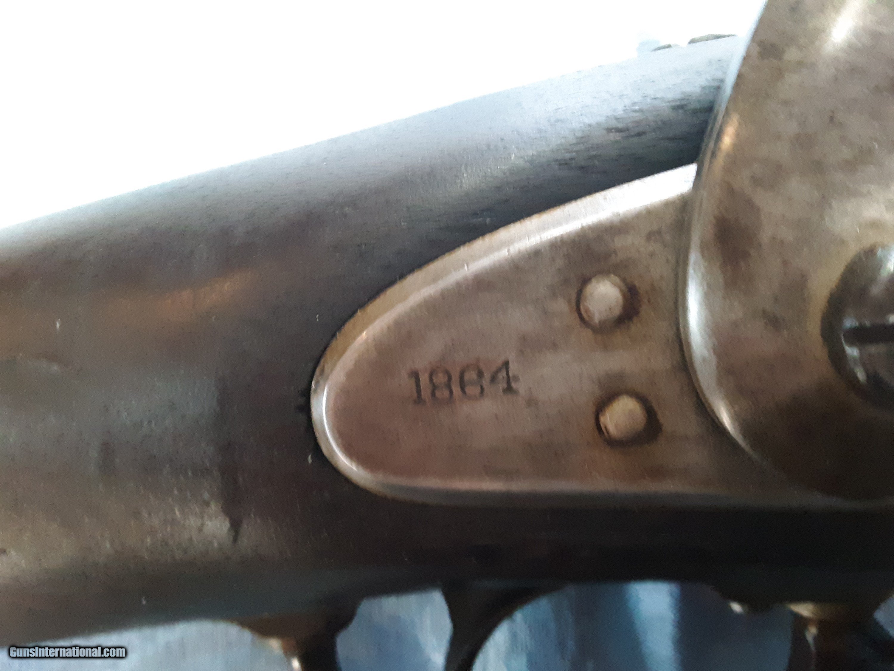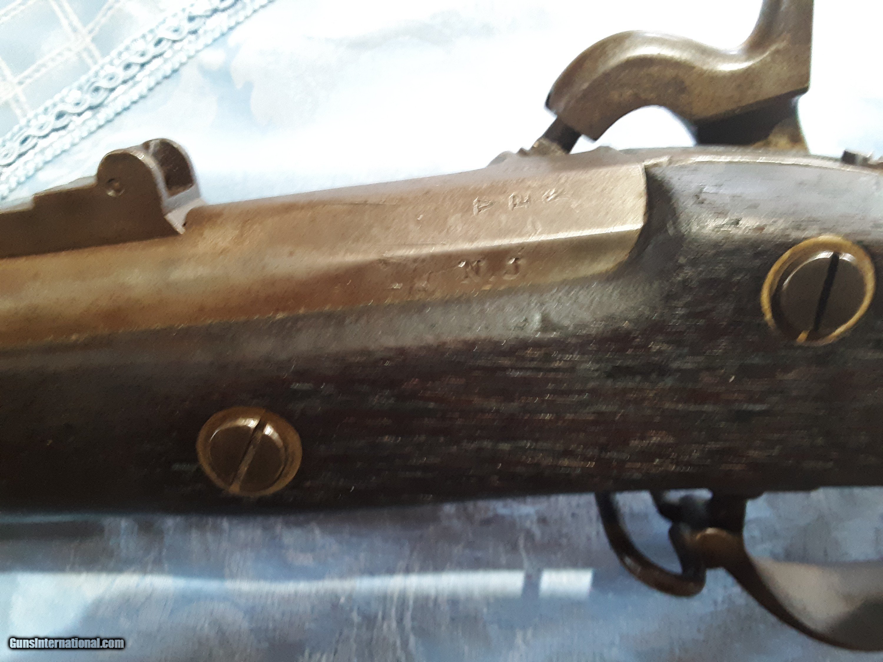 Description: On hold,Trenton contract model 1861 rifled musket in very good Cond. Came out of age old West Va. collection. This gun is not refinished and stock is solid with a rich deep tone and N.J. stamped. All steel parts are smooth with sharp markings and age stain patina. Rifled bore is very good. Barrel length is 39 and 3/4 inches and band springs are perfect. Holds half and fullcock with strong mainspring. Gun is 100% original and never sanded or steel wool used on it like so many. A good looking Civil War musket at a good price! SOLD Antique: Yes |