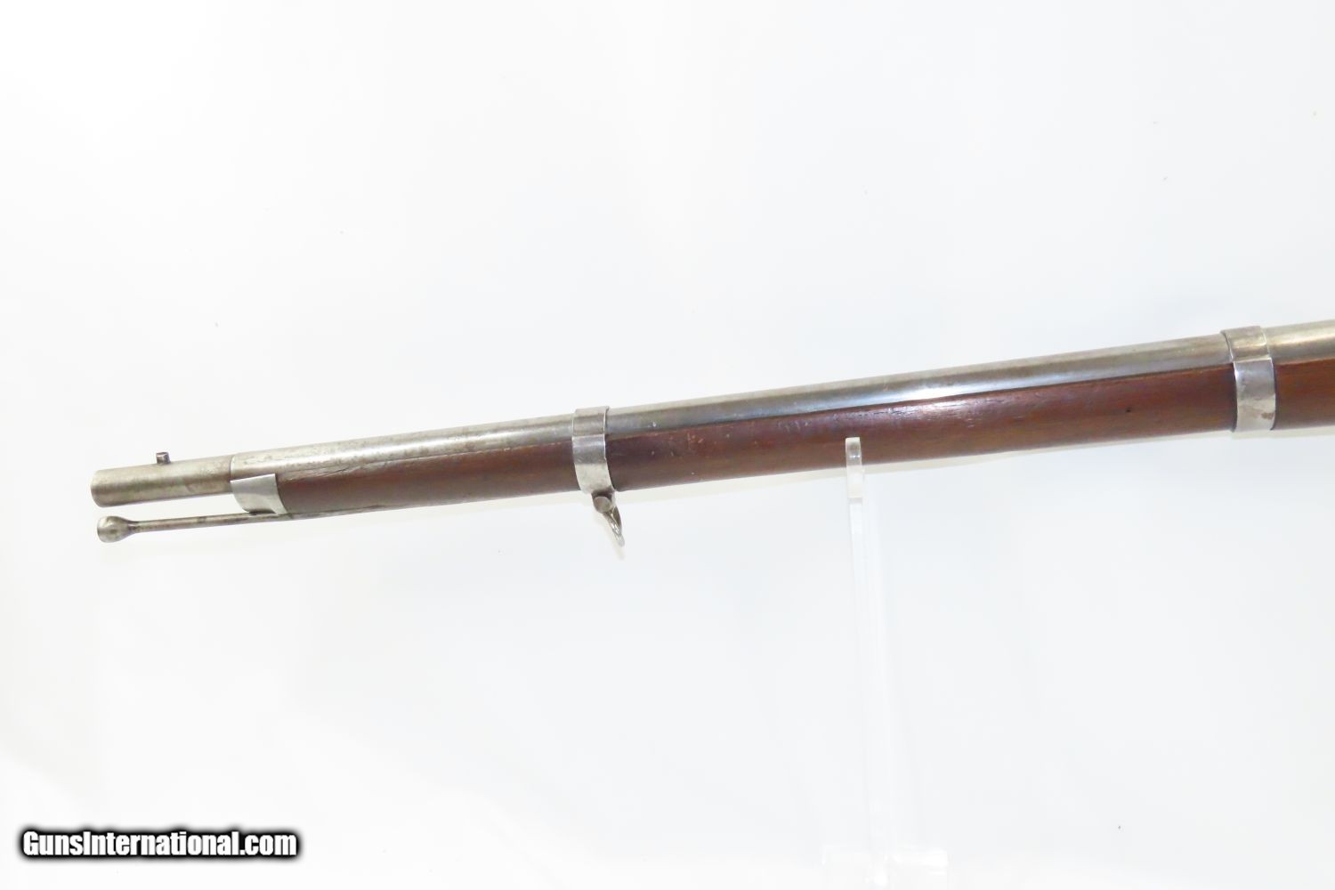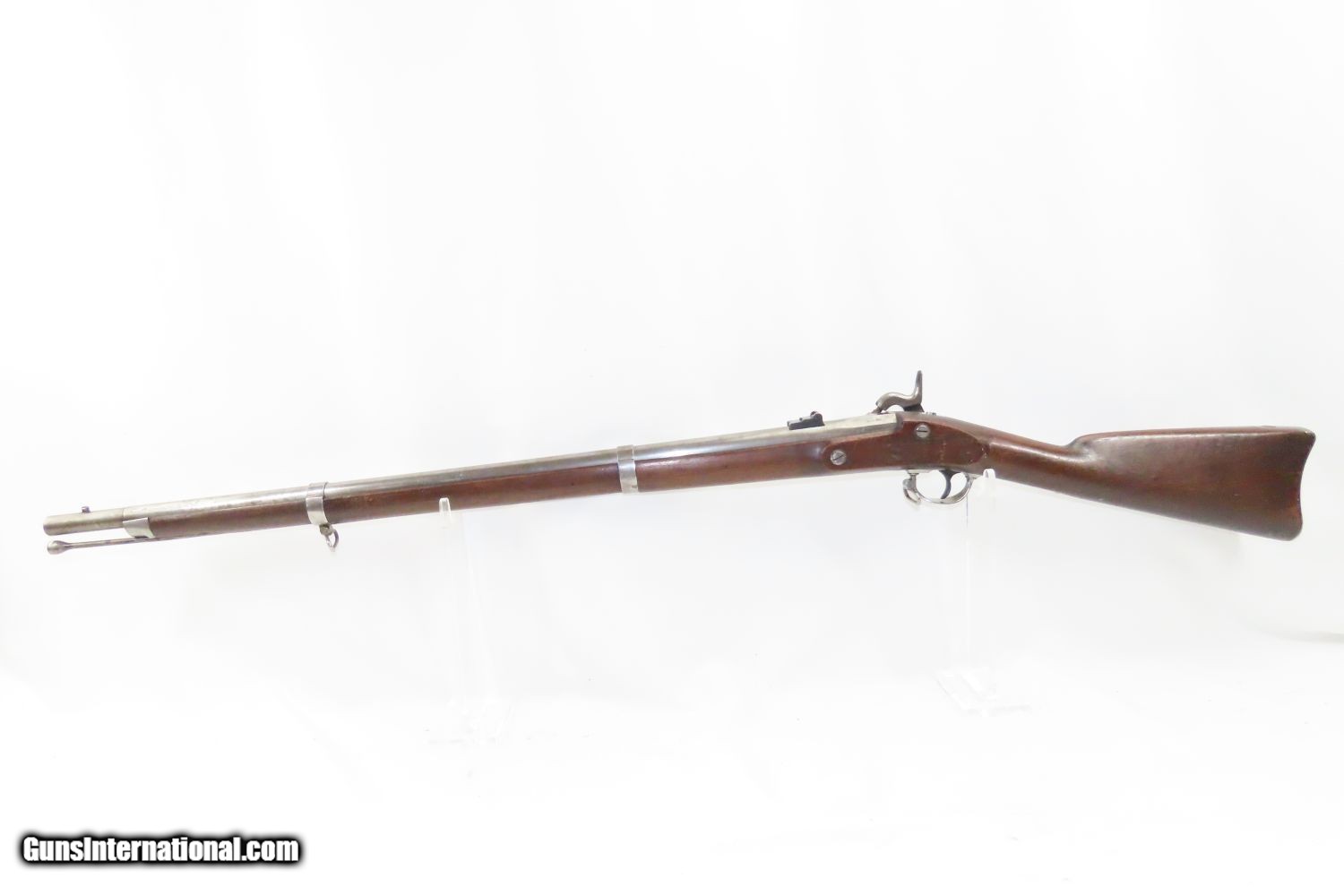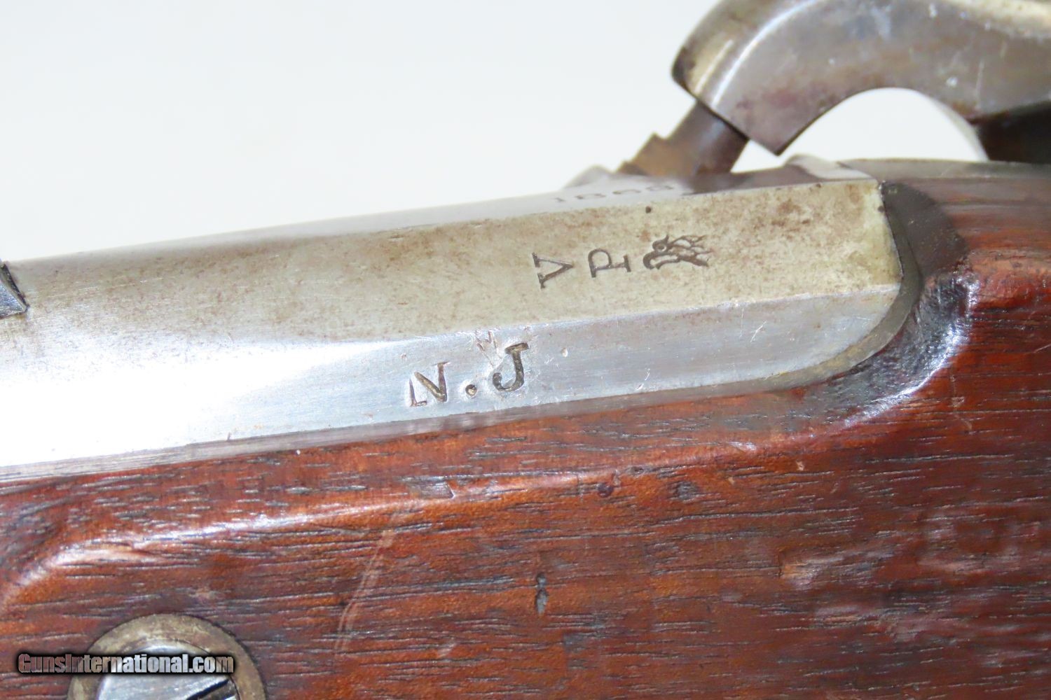 Description: New Jersey CIVIL WAR Antique SPRINGFIELD ARMORY Model 1861 Rifle .58 Caliber 1861 Dated Primary Infantry Weapon of the Union Army Here we present an antique U.S. Springfield Armory Model 1861 Civil War Rifle-Musket, made circa 1861 in Springfield, Massachusetts. The Model 1861 was the primary musket at the start of the American Civil War. The musket was designed to fire the .58 caliber minie ball. The M1861 is representative of the “everyman’s” rifle during the war. About 1.5 million rifle-muskets were made in the U.S., over 800,000 of which were made by the Springfield Armory. This was the last hurrah of the rifle-musket as arms development and tactics rapidly advanced during the short period of the American Civil War. Nevertheless, the 1861 represented new technology as it was made for use with the Minié ball, a hollow based, conical projectile that was small enough to quickly push down the muzzle of a rifled barrel and expanded to create a good gas seal unlike a solid, round ball. Almost immediately after the war, the US military switched from the old muzzle loading type weapons to the newer breech loading rifles, bringing an end to the musket as a standard frontline firearm in American history. This rifle-musket would have originally been made with a 40-inch long barrel. It was shortened at some point and the muzzle turned down to create the “step” as you see about 5 inches back from the muzzle. A new front sight was added. This was almost certainly done after it was sold as surplus after the war. With renewed interest in moving West after the war, these retired muskets were again put to use protecting and providing for settlers. The overall condition is very good. Excellent action. Very good bore with nice rifling. Solid walnut stock throughout. “1861” dated lock and “1863” dated barrel. “US’ is stamped on the lock and butt plate tang. “N.J.” is marked on the left barrel flat. Two legible cartouches on the left wrist. Own the original! This is a legitimate antique and not a reproduction. Barrel is 32 inches. Caliber: .58 Percussion Overall condition as seen in photos. Very Fast. Very Safe. FREE SHIPPING WORLDWIDE. Delivered directly to your door by express mail! Guaranteed AUTHENTIC & Includes CERTIFICATE OF AUTHENTICITY. ancestryguns $1485 #210837 SOLD Antique: Yes |