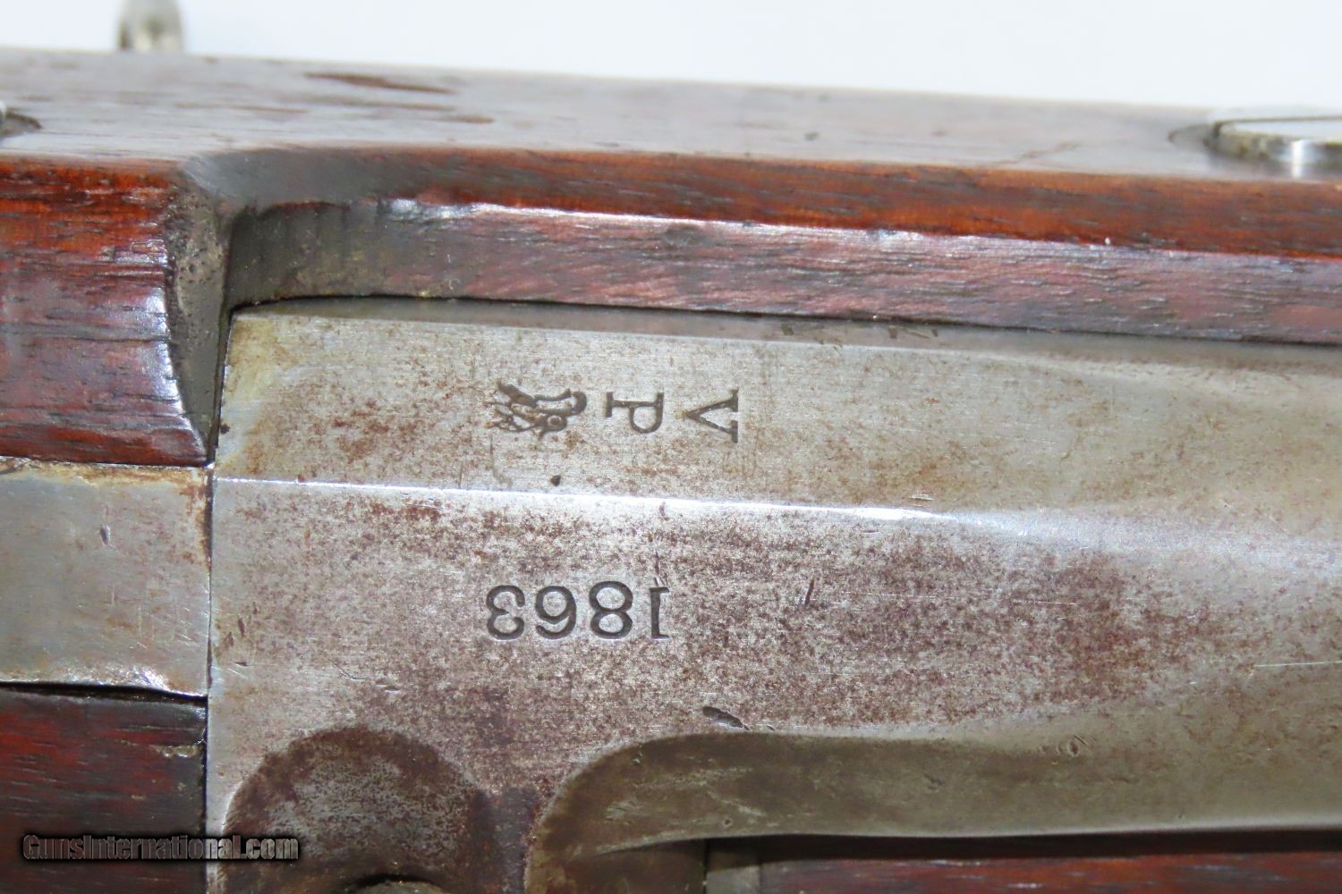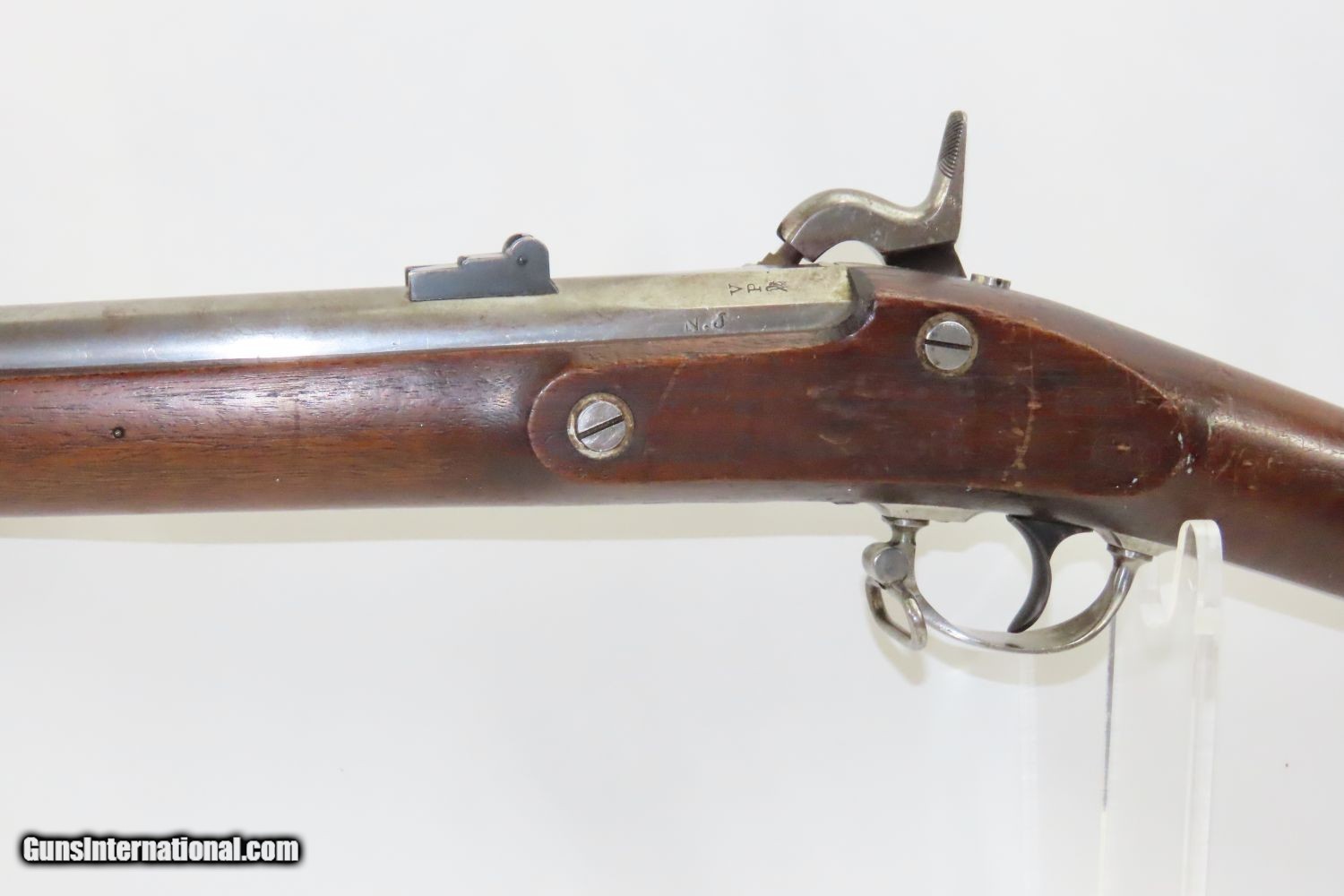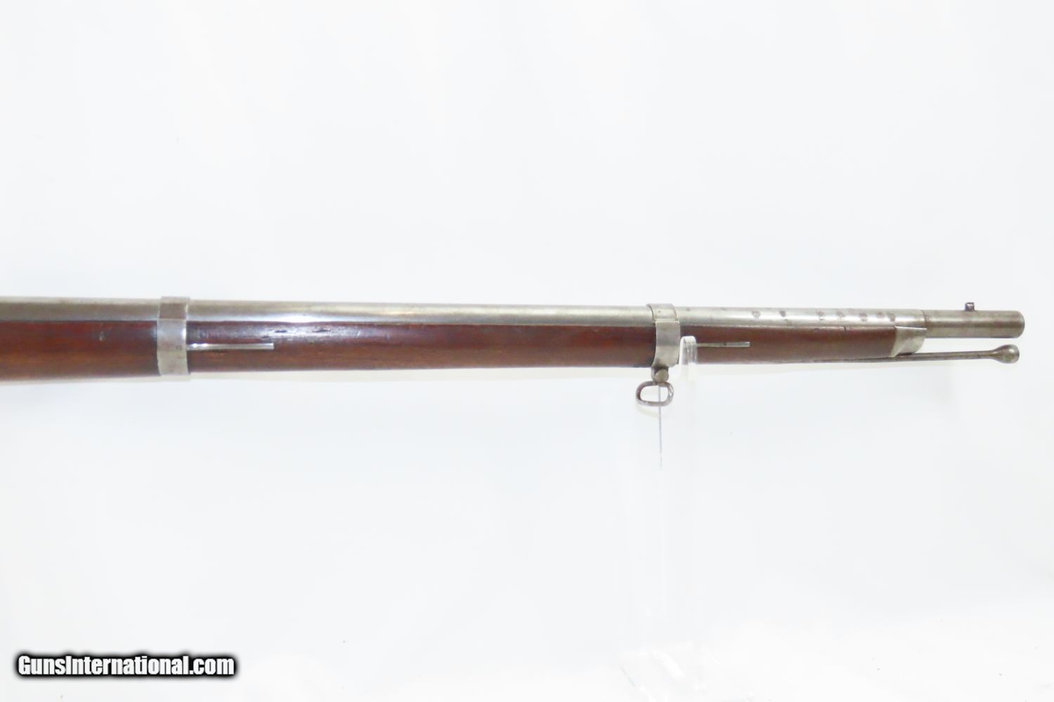 Description: New Jersey CIVIL WAR Antique SPRINGFIELD ARMORY Model 1861 Rifle .58 Caliber 1861 Dated Primary Infantry Weapon of the Union Army Here we present an antique U.S. Springfield Armory Model 1861 Civil War Rifle-Musket, made circa 1861 in Springfield, Massachusetts. The Model 1861 was the primary musket at the start of the American Civil War. The musket was designed to fire the .58 caliber minie ball. The M1861 is representative of the “everyman’s” rifle during the war. About 1.5 million rifle-muskets were made in the U.S., over 800,000 of which were made by the Springfield Armory. This was the last hurrah of the rifle-musket as arms development and tactics rapidly advanced during the short period of the American Civil War. Nevertheless, the 1861 represented new technology as it was made for use with the Minié ball, a hollow based, conical projectile that was small enough to quickly push down the muzzle of a rifled barrel and expanded to create a good gas seal unlike a solid, round ball. Almost immediately after the war, the US military switched from the old muzzle loading type weapons to the newer breech loading rifles, bringing an end to the musket as a standard frontline firearm in American history. This rifle-musket would have originally been made with a 40-inch long barrel. It was shortened at some point and the muzzle turned down to create the “step” as you see about 5 inches back from the muzzle. A new front sight was added. This was almost certainly done after it was sold as surplus after the war. With renewed interest in moving West after the war, these retired muskets were again put to use protecting and providing for settlers. The overall condition is very good. Excellent action. Very good bore with nice rifling. Solid walnut stock throughout. “1861” dated lock and “1863” dated barrel. “US’ is stamped on the lock and butt plate tang. “N.J.” is marked on the left barrel flat. Two legible cartouches on the left wrist. Own the original! This is a legitimate antique and not a reproduction. Barrel is 32 inches. Caliber: .58 Percussion Overall condition as seen in photos. Very Fast. Very Safe. FREE SHIPPING WORLDWIDE. Delivered directly to your door by express mail! Guaranteed AUTHENTIC & Includes CERTIFICATE OF AUTHENTICITY. ancestryguns $1485 #210837 SOLD Antique: Yes |