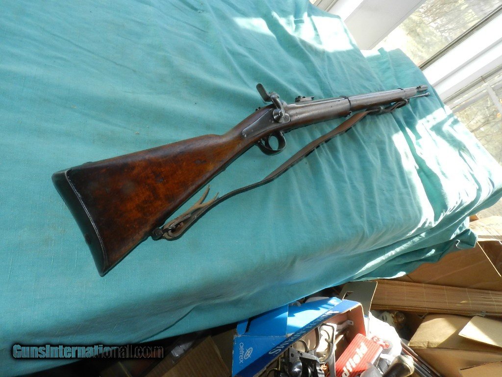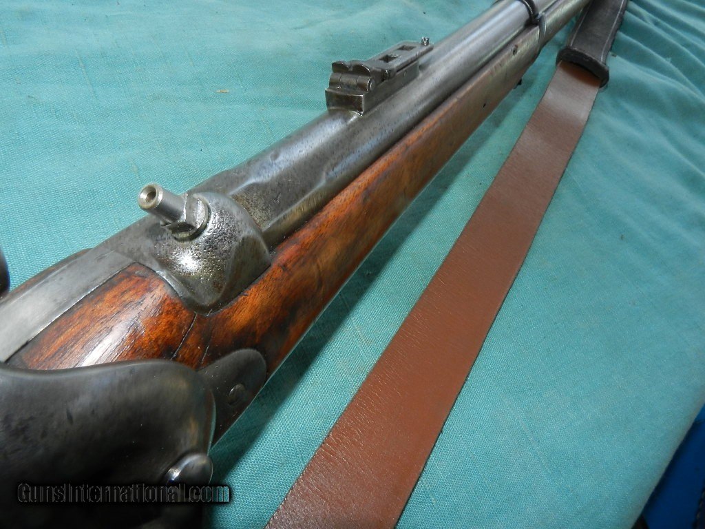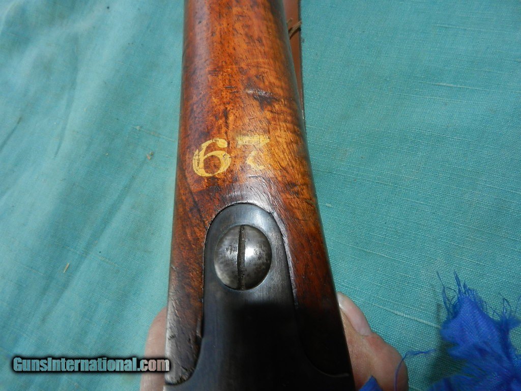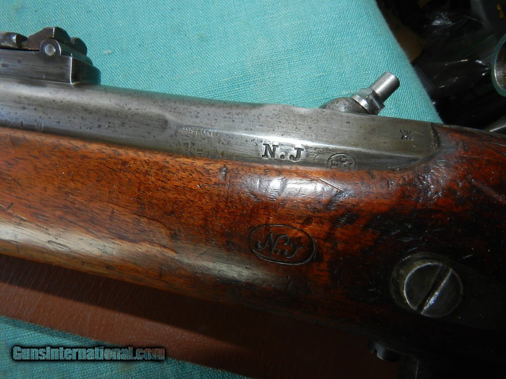 Description: SOLD A rare Civil War purchased .69 cal two band French import rifle known as a marine/naval rifle by th state of New Jersey. Most examples found are three band long rifled. These were purchased for use by Marine/Naval use and Artillery men use also. This fine gun with it's poriginal ram-rod has a 33" round barel with a clean, riflee bore. Action works very well, and the exterior metal is in the white as issued. French walnut stock has no issues . Left side of stock has an ovel NJ proof and the breech of the barrel also stamped N.J. . On the top edge of the stock near the butt-plate is painted 29 a reck number for sure. An added wide leather sling is present. Overall very clean original conditio and rare in this configuration.When buying a gun always have it examined by a competent gunsmith before shooting. To buy a gun from me you must get a direct email for me, with details, and shipping cost. We don’t have a web site .I prefer money orders or a check. Item ships when funds come in. I try to keep guns affordable, which means I make less money than most dealers. You won’t get altitude sickness, or nose bleed, with my prices! I consistently have the best selection of older guns If you attempt to buy, you must still contact us for details . Best to email to buy. Sometimes a local person can stop buy and purchase before the gun is removed. Sometimes not home to get calls. Some guns are required shipment to a gun dealer near you for a transfer to you when it arrives. Otherwise many older or black powder guns ship to your door. With the widest selection of older guns at great prices, We don’t have a store, and sell on the internet only. I’m easy to get along with. Thank You[JB1] [JB1] SOLD Antique: Yes |