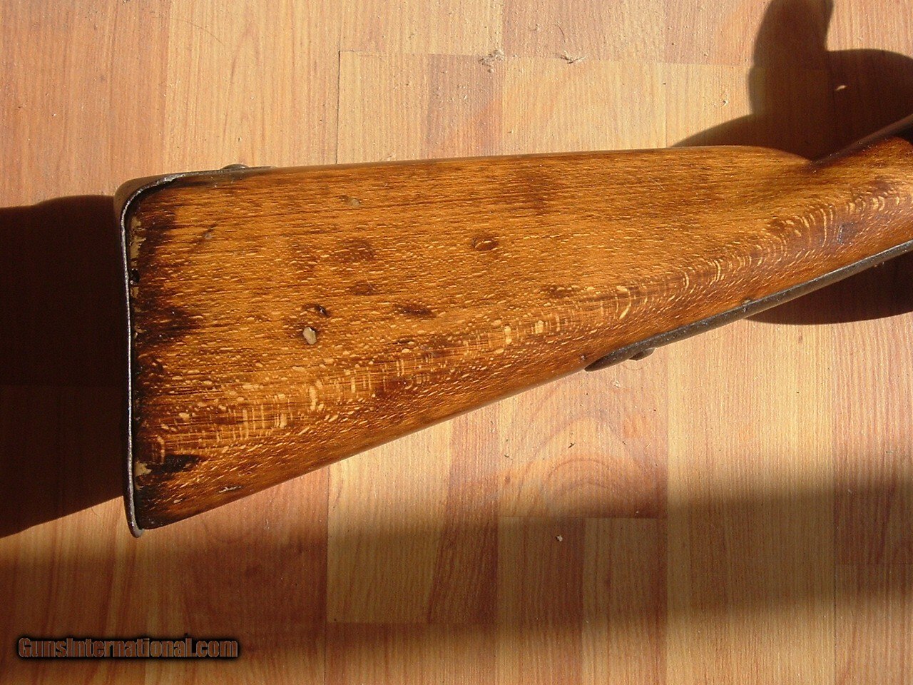 Description: Original Civil War .58 caliber Austrian Lorenz Rifle. These are officially known as the Model 1854 Austrian Lorenz rifle. The Lorenz was used early in the Civil War, used by both North and South. The production date is clearly visible on the lockplate "860" which was the Austrian way of denoting the 1860 production date. Behind the hammer it has the Austrian style eagle stamp still mostly visible. The mechanics of the lockplate catches on both of the positions. The barrel is full-length and has the front sight present to go along with the flip-up style rear sight. It is the original .54 caliber with rifling present, but the bore is dark with some pitting. Both of the sling swivels are present. The ramrod is a nice looking original with the correct style brass end tip. The stock has a very pleasing look with pretty beechwood grain pattern. These Lorenz Rifles have become highly sought after, getting hard to encounter a nice one as many were well used. Antique: Yes Price: $2,250.00 Buy Now Contact Seller |