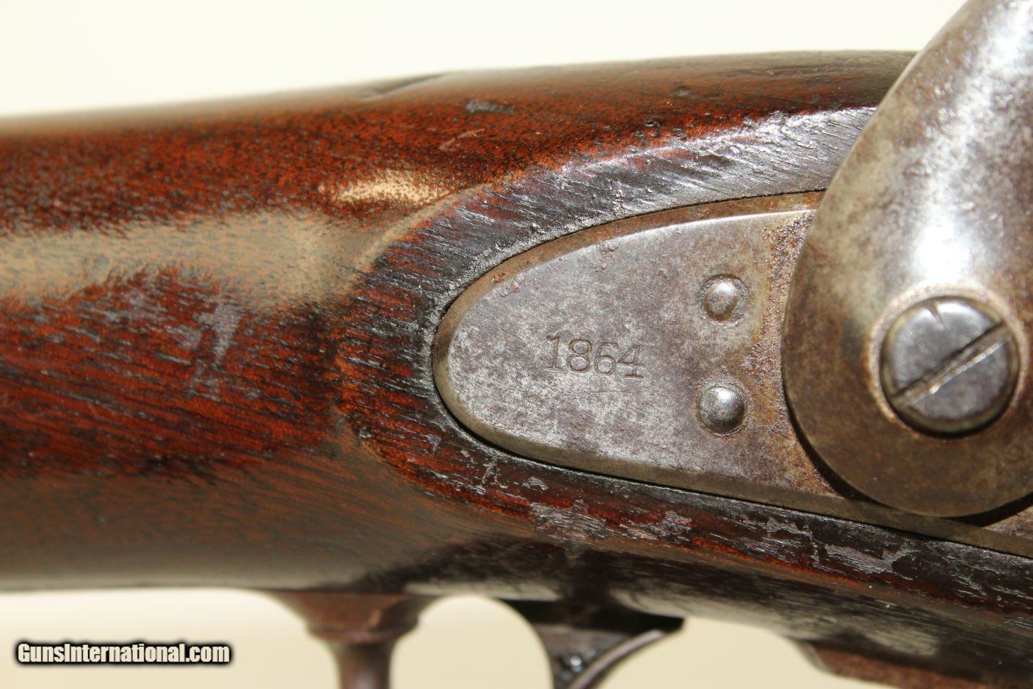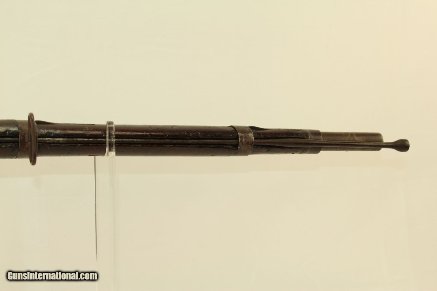 Description: RARE Antique MILLER M1861 .58 Rimfire CONVERSION Rifle 1 of 2,000 Converted Post-CIVIL WAR Here we present an antique Miller Conversion Model 1861 (from the Parkers’ Snow & Co. Contract) .58 Caliber Rimfire Breech Loading Rifle, made circa 1864 in Meridan, Connecticut and converted circa 1865-67. Only about 2,000 are known to have been made. Production of the US Model 1861/63 rifle musket was in excess of 1 million during the American Civil War between Springfield Armory, Harpers Ferry and about 20 different contractors. It represented a streamlined and, in some ways, technologically advanced musket capable of accurate fire when compared to previous generations of American muskets. Yet it was adopted during a period of rapid innovation that would make it obsolescent before the war drew to a close. Many conversions appeared toward the end seeking to take advantage of metallic cartridge technology for a faster rate of fire. Such examples were the Snider, Joslyn, Needham, Peabody, and the most successful, the Allin, and this was not even all of them. This conversion, undertaken by the Meriden Manufacturing Company of Connecticut, produced the “Miller Model 1861”. The conversion was named for the patent holders William H. and George W. Miller. In the system, a release catch found along the top of the barrel was used to break the action open along a hinge, exposing the breech for inserting a cartridge. The patented arrangement was also featured in Parker, Snow & Company Model 1861 rifles. The Parker Snow Contract Model 1861 was the chosen host for this conversion. The lock is stamped with a large spread-winged eagle over “U.S.” and marked “PARKERS’ SNOW & CO. / MERIDEN, CONN” in front of the hammer. The date of “1864” is stamped back of the hammer. This rifle being dated 1864 is believed to be the product of the James Mulholland Contract of 1861 of which only 5,502 were delivered. According to Flayderman’s Guide to Antique American Firearms, “it represents the first venture in firearms manufacturing by Charles Parker of Meriden, Connecticut. Originally a manufacturer of hardware, he soon, after the Civil War, in 1866-1867 formed what was to become the most famous of all-American shotgun Manufacturers, the famous “Parker Brothers”. These are known to have been issued to New York and Maryland militias after the war. This one is rack numbered “15” on the comb of the stock and is very likely one of those that found its way to a state arsenal! The overall condition is Fine. The action is strong and tight. The bore is bright with good rifling. A unique breech loading experimental rifle from just after the Civil War! Own the original! This is a legitimate antique and not a reproduction. Barrel is 35-1/4 inches. Caliber: .58 Rimfire Overall condition as seen in photos. Very Fast. Very Safe. FREE SHIPPING WORLDWIDE. Delivered directly to your door by express mail! Guaranteed AUTHENTIC & Includes CERTIFICATE OF AUTHENTICITY. ancestryguns $1900 #190892 SOLD Antique: Yes |
