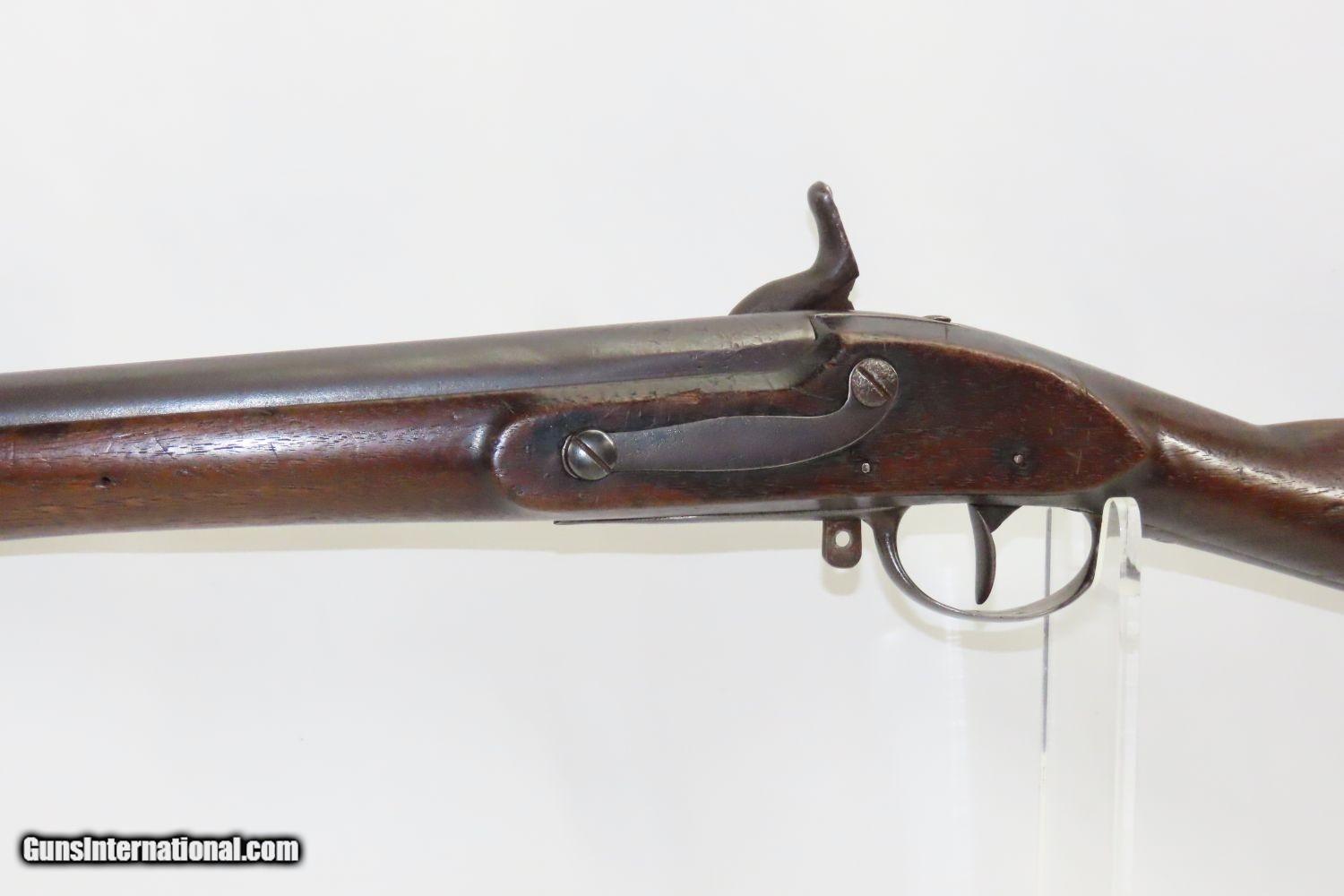 Description: Rare DATED VIRGINIA MANUFACTORY SHORT MUSKET 36” BARREL Carbine Richmond VA Southern Musket Updated for the Civil War Here we present a Rare Antique Virginia Manufactory Short Musket or Carbine, originally made in Richmond, Virginia circa 1810 and converted around the time of the American Civil War. The Short Musket and Carbine terminology was interchangeable to the Manufactory. While the Manufactory was by and large producing full-length muskets for the state’s militia units (42-44” barrels) the armory also made shorter length muskets with 36-39” barrels. These were adopted, according to Giles Cromwell in his book The Virginia Manufactory of Arms, due to two factors: “First of all, economy forced the use of those barrels that did not finish out at the customary 42- of 44-inch lengths. These shorter barrels were cut to the closest 36 or 39 inches and stocked along with the rest of the longer barrels.” In addition, there came a policy of simply shortening barrels of muskets that had burst their barrels in the course of proofing. These were considered handier weapons for the Artillery or Light Infantry. Some were even “loaned to certain boys’ schools, such as the Norfolk Academy, the Rumford Academy in King William County, and the Fleetwood Academy in King and Queen County, for training purposes. This piece’s lock is dated 1810 while the barrel is dated 1821. This is due to the fact that the Manufactory produced a surplus of lock that were still being used up at the very end of production in 1821 (this is the same year the Manufactory closed). The left side of the barrel is marked with an eagle’s head and “P” proof mark within an oval. It has a drum type of conversion and a replacement hammer. The face of the lock plate was stripped of the old flintlock hardware and the holes filled and filed. The ramrod appears to be from the period but was broken off a bit short and has a bit of a wave to it, suggesting it may have been used for other purposes. Sling swivels were removed and the barrel band with the front swivel filed down. Being specifically made for Virginian militia by its own state armory these converted muskets are considered Confederate weapons during the American Civil War. According to Giles Cromwell, these muskets were not updated until the war began in 1861. This one appears to have had one of the armory conversions with the large bolster installed. However, the original nipple bolster was removed (or perhaps knocked off) at some point and it then received a “drum” type bolster. The overall condition is very good. Robust action. The markings on the lock plate have been filled with a small amount of white paint. Smooth bore. The stock is solid despite the chipping around the lock and other evidence of use. “1810” dated lock. “[18]21” is marked on the barrel tang. A fantastic piece of history! Own the original! This is a legitimate antique and not a reproduction. Barrel is 36 inches. Caliber: .69 Percussion Overall condition as seen in photos. Very Fast. Very Safe. FREE SHIPPING WORLDWIDE. Delivered directly to your door by express mail! Guaranteed AUTHENTIC & Includes CERTIFICATE OF AUTHENTICITY. ancestryguns $4635 #210381 SOLD Antique: Yes |