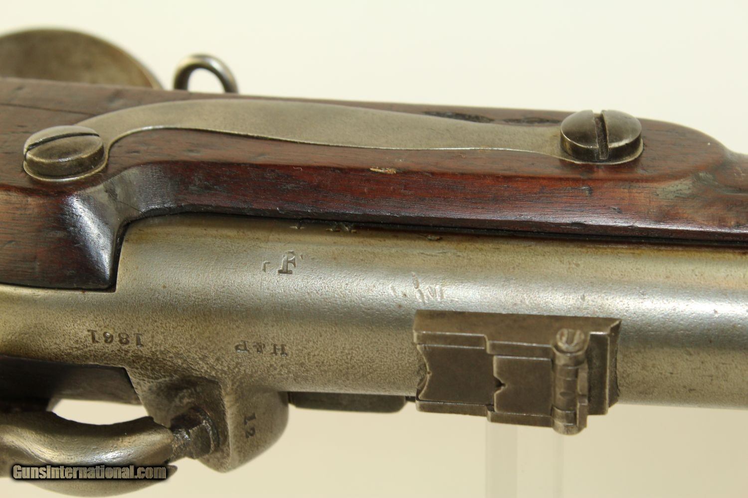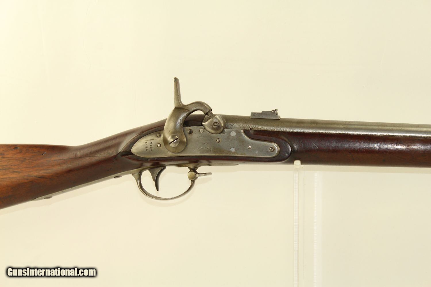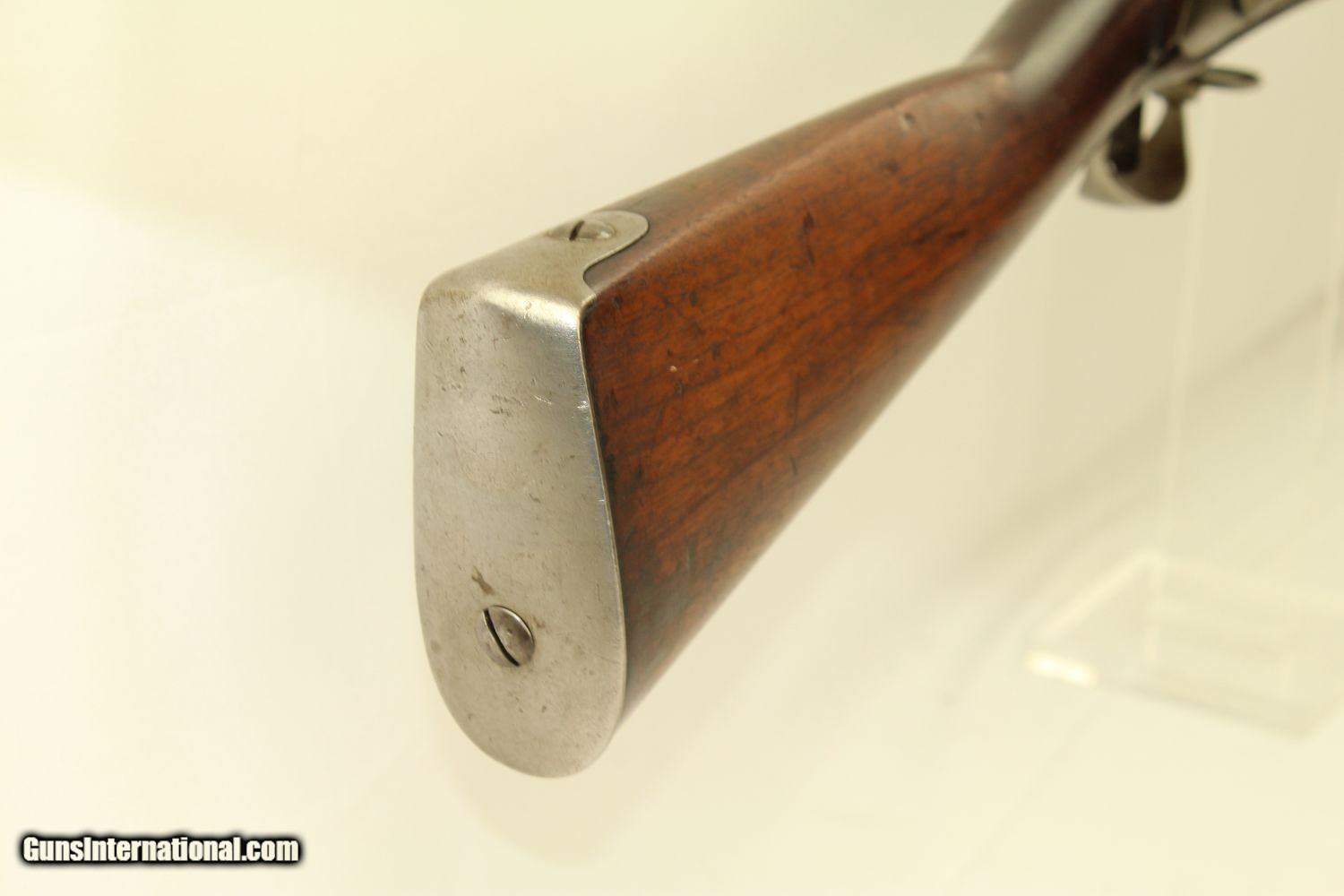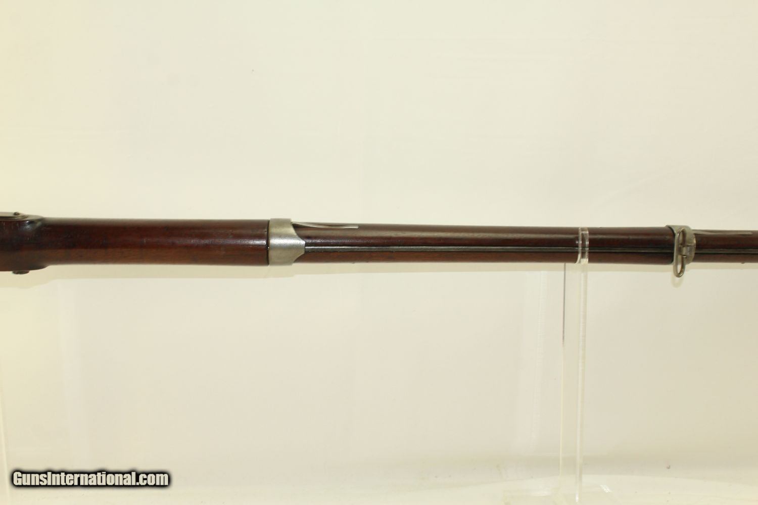 Description: RARE Hewes & Philips NEW JERSEY Rework 1816 Musket Early 1861 CIVIL WAR Contract Rifled Musket! Here we present an antique Hewes & Philips Armory Rework of a Wickham Model 1816 Musket for the state of New Jersey in 1861. This musket was originally manufactured in Philadelphia, Pennsylvania by Marine T. Wickham in 1834 before it was converted to percussion by Hewes and Phillips circa 1861. While many M1816 flintlock muskets saw conversion to percussion in the Civil War period, almost no other saw the level of update this musket received. The flash pan and frizzen were removed from the lock and all the holes filled and ground down flush with the face. You will notice that the markings were also slightly effaced in the process. A very large bolster was welded to the barrel and a percussion nipple threaded in. A percussion hammer that is unique to this model was installed. The barrel was rifled. A new front barrel band replaced the old so that there was a good front sight for the rifle and a mutli-leaf sight was installed at the rear. A bayonet lug was installed on the top near the muzzle. Hewes & Philips numbered their parts and you will see the number “12” throughout, to include the nipple bolster, the hammer, the bayonet lug, etc. The top of the barrel shows the company markings “H&P” and the date of the conversion 1861. A large “P” on the barrel and a long cartouche at the rear of the comb of the stock are probably New Jersey inspector markings. A large “NJ” for New Jersey is also visible where the barrel meets the stock on the left side. This is a fantastic piece for so many reasons, and is the epitome of a musket that saw lots of use. The overall condition is very good. The stock has several stable cracks throughout. It does not look like these are from an impact, rather green wood may have been used by this contractor in their effort to get guns out the door, as happened with other contracts. The bore is in great shape with nice rifling. The action is excellent. This one is a cut above other conversions. Own the original! This is a legitimate antique and not a reproduction. Barrel is 42 inches. Caliber: .69 Overall condition as seen in photos. Very Fast. Very Safe. FREE SHIPPING WORLDWIDE. Delivered directly to your door by express mail! Guaranteed AUTHENTIC & Includes CERTIFICATE OF AUTHENTICITY. ancestryguns $2200 #190290 SOLD Antique: Yes |