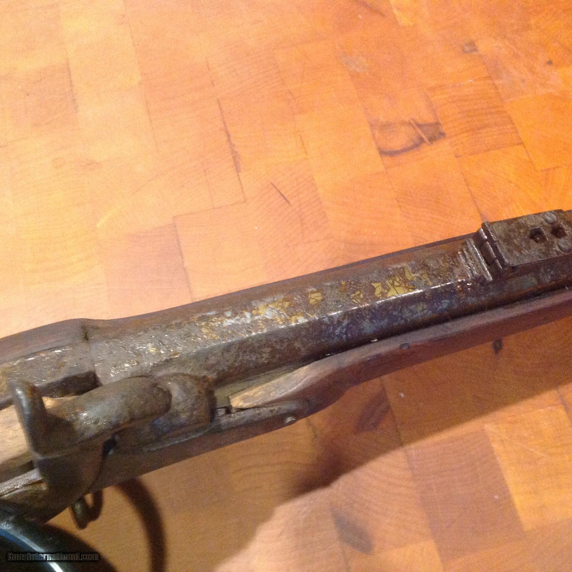 Description: SOLD!!!!! Austrian Lorenz Rifle with the soldier’s name carved on the stock. The only provenance is verbal from the sellers that this Rifle was used by a Georgia rebel. The stock has the soldiers name W. L. Dale carved in the stock. W.L. Dale is listed in the national archives from the confederate 11th Regiment Georgia Infantry. That is the only research I have done. The action works but is weak. It holds half cock and full cock. This rifle is in relic condition and had some repair to the wrist. The wrist was cracked. Metal is in relic barn condition as shown in the photos. These rifles were popular with soldiers in the South. Has a nice CIvil War period wood rod with carved cleaning tip. With some TLC you could improve the eye appeal drastically with just a oil on the stock. I have not touched it in any way. SOLD Curio/Relic: Yes Antique: Yes |