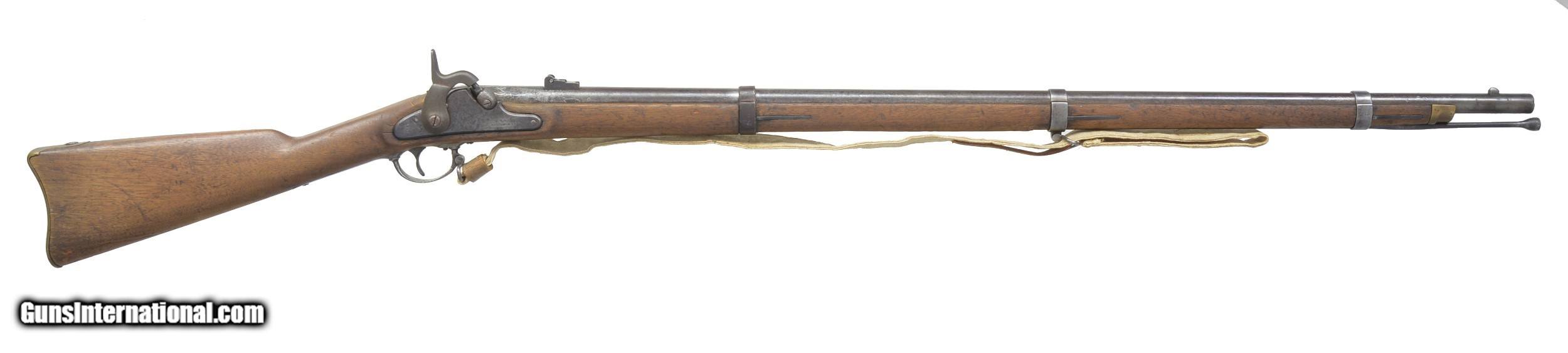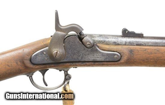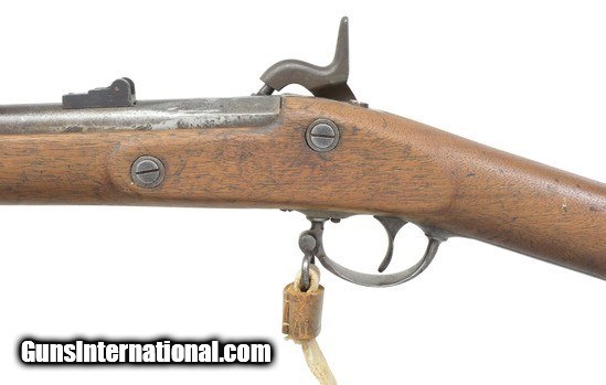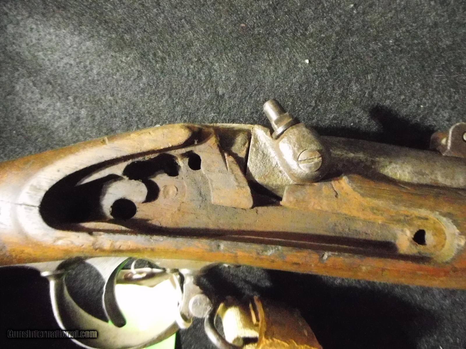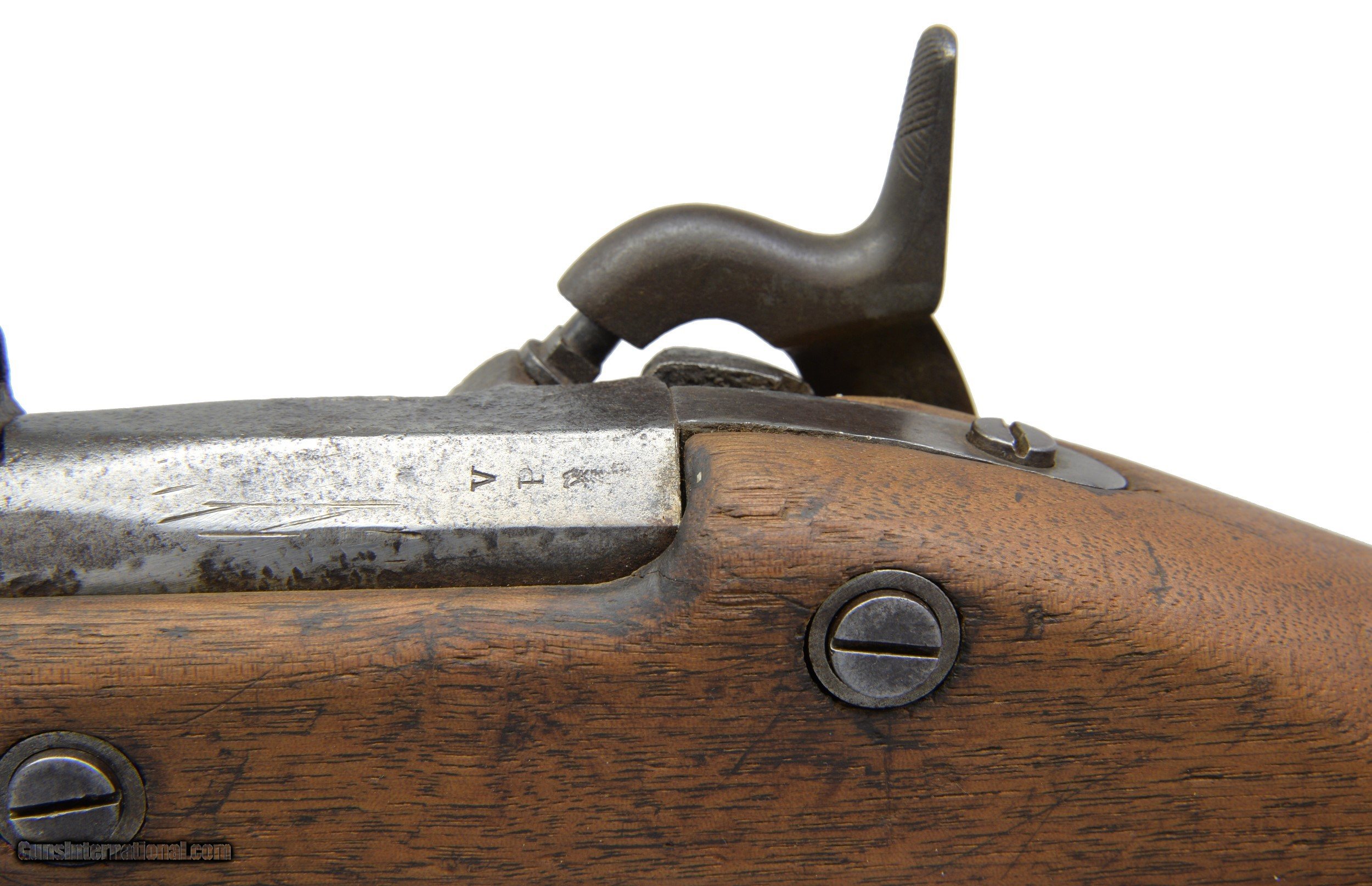 Description: SALE PENDING....(LAYAWAY?)... RICHMOND ARMORY RIFLE MUSKET DATED 1862...CSA...Civil War..with PROVENANCE.... Cal. 58. NSN. Overall length 56" w/ 40" bbl., marked at breech w/ "V" "P" & Harper's Ferry / Richmond style eagle. The "P" is correct Richmond style w/ break in die & can be seen in photos. Long rear sight steady-pin slot in bbl. extending forward of rear sight dovetail, M1861 leaf type rear sight. “Low hump” lockplate marked forward of hammer w/ "C.S." over "RICHMOND, VA" & to the rear of hammer marked w/ date "1862." This is the first type 1862 date stamp w/ all numerals intact & open "2". No marks inside lock, but has Richmond or U.S. Model 1855 type mainspring swivel. Top & bottom bands have Richmond style offset "U", middle band is not marked. Brass buttplate, nose cap is brass w/ an iron screw. Stock does not have slot for US Model 1855 Maynard tape primer arm showing Richmond mfg. Ramrod is swelled Model 1855 type. Attached to the arm is a Confederate 40" cotton sling w/ leather sling loop intact, 4 holes in hook strip. Beverly DuBose's inventory number 150 in black paint on buttplate tang. CONDITION: good overall. Bottom band does not fit properly & has been considerably dented along the edges (clear evidence of hammering to fit). Screw for hammer will not tighten down completely; otherwise lock is functional & action is still crisp. Stock bears the usual dings, dents, & is noticeably absent of finish. Considerable wear around the bolster, both in wood & metal. Metal is overall mottled gray patina w/ pitting. Worn pitted bore w/ traces of rifling. Appears original & authentic & "as found" w/ the exception of rear sight, hammer & ramrod, which are all period additions. Attached sling is in fine overall condition w/ scuffing to leather attachment. PROVENANCE: Ex Beverly Dubose Jr. Collection; Atlanta History Center 1984 (Will give catalog with photos and provenance) ….. S/H $40 Thanks!....Greg aa76-81 ****SEE MY OTHER FIREARMS ON UNDER SELLER: greenesgt **** SOLD Antique: Yes Manufacturer: CS Richmond Armory, Richmond, VA. Model: Low Hump Musket Serial Number: NONE Caliber Info: .58 |