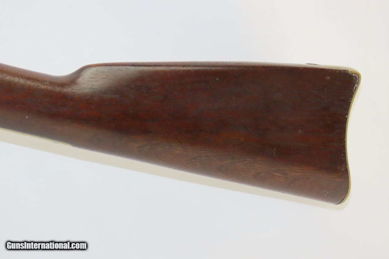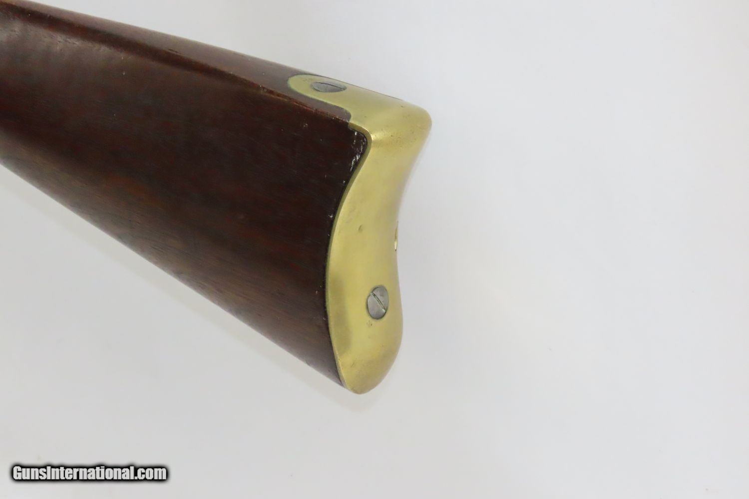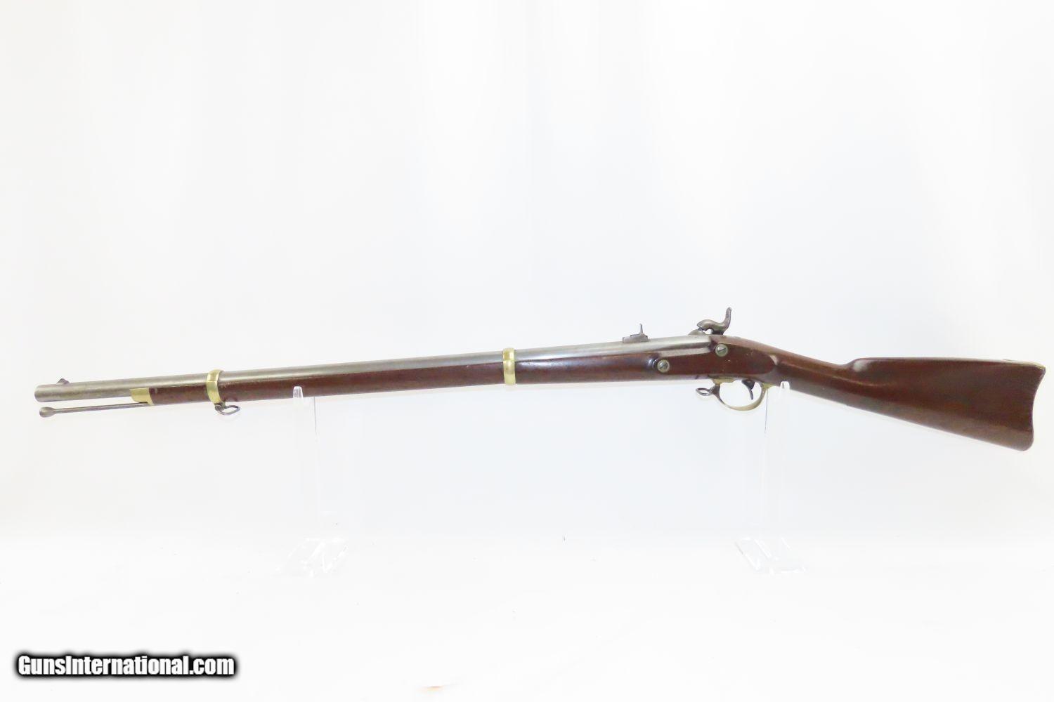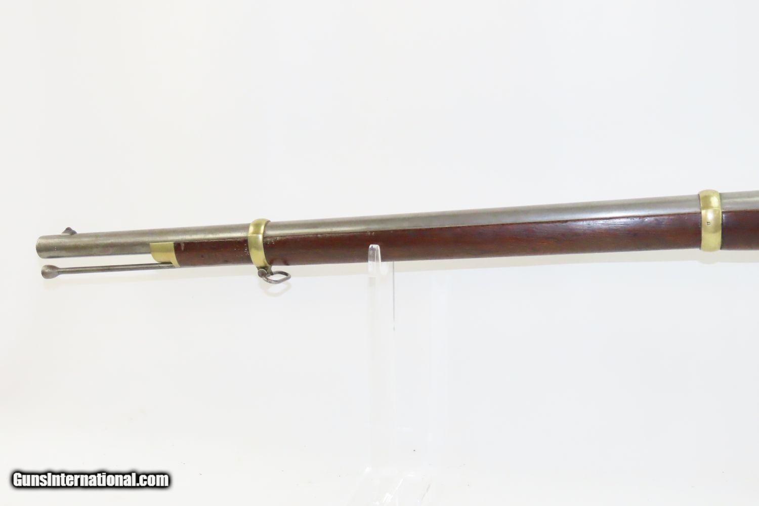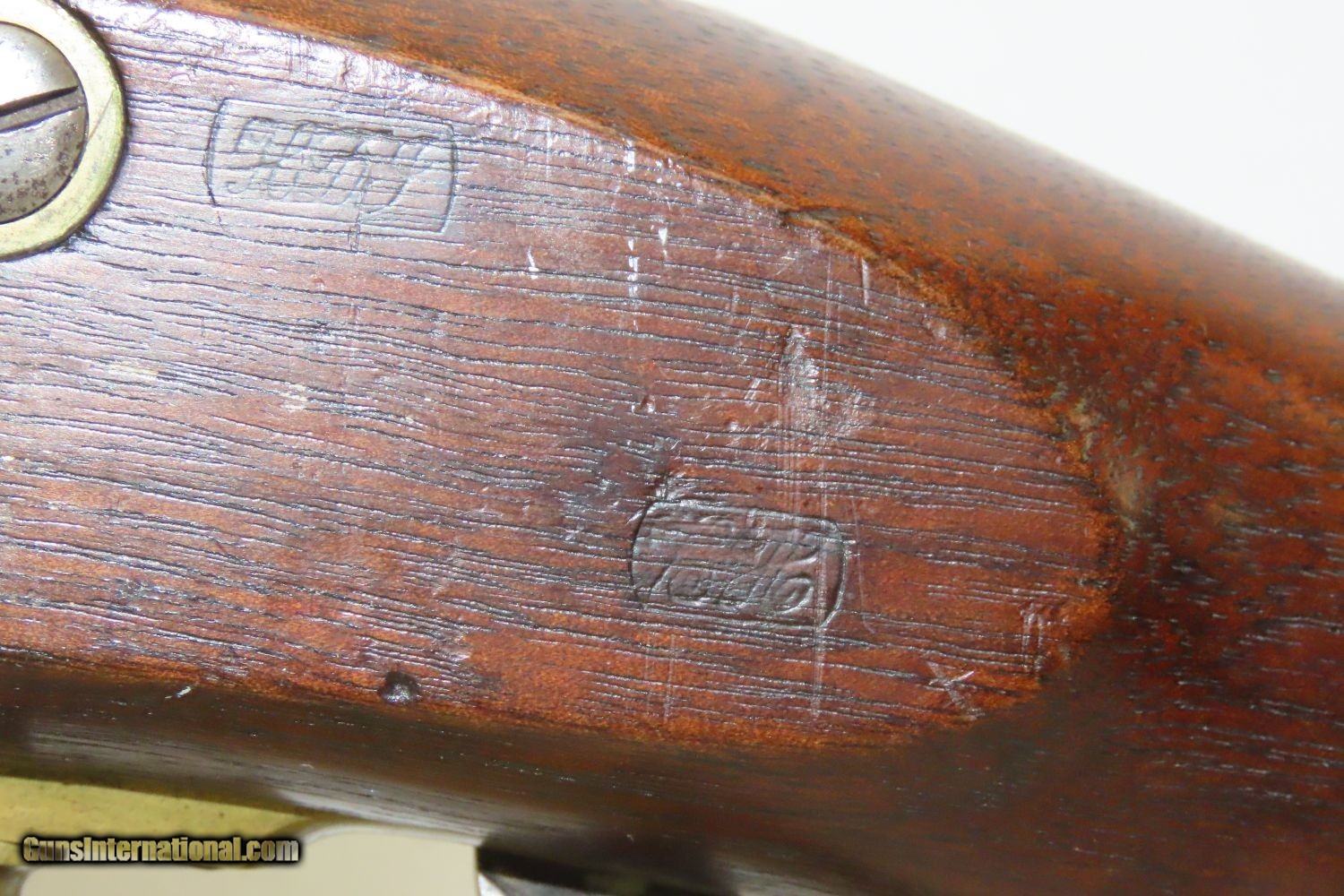 Description: SCARCE Antique CIVIL WAR US Remington Model 1863 “ZOUAVE” Percussion Rifle Only 12,501 Made for the Union Army 1863-1865 Here we present an antique US Model 1863 Remington “Zouave” Rifle-Musket manufactured by the Remington Arms Co., circa 1863, in Ilion, New York. Only 12,501 were made. The “Zouave” rifle was quite similar to the Harpers Ferry Model 1841 “Mississippi Rifle” of Mexican War fame, so-called for its endearment to the Mississippi troops under then-Colonel Jefferson Davis (1808-1889). Both had brass hardware with a patchbox set into the right side of the butt stock (the Remington’s is smaller in comparison), both had 33-inch barrels secured by 2 barrel bands. One of the primary differences was the Model 1841’s .54 caliber rather than the Zouave’s .58 caliber, however, there was enough material in the barrel that many were re-bored later to .58 as that became the standard. Remington made some of the Model 1841s on contract from 1846-1854. Both are excellent in design, quality, and aesthetic. Their shorter barrels in comparison to the Models 1861/1863 would have been advantageous in closer confines. Two cartouches remain legible on the left wrist: “HDL” for Henry D. Jennings and “BH” for Benjamin Hannis. The left side of the barrel is initialed “H.S.L.” for Homer S. Lathe. “US” is stamped on the buttplate tang and lock. This example is dated “1863”. Inside of the patch box “E.G.P.” is hand engraved. The overall condition is very good+. The action is strong. The bore is bright with sharp rifling. The stock is solid and smooth. This is a fantastic example of one of the scarcest government contract rifle-muskets of the American Civil War and a handsome devil to boot! Own the original! This is a legitimate antique and not a reproduction. Barrel is 33 inches. Caliber: .58 Overall condition as seen in photos. Very Fast. Very Safe. FREE SHIPPING WORLDWIDE. Delivered directly to your door by express mail! Guaranteed AUTHENTIC & Includes CERTIFICATE OF AUTHENTICITY. ancestryguns $3185 #200857 SOLD Antique: Yes Rifle Caliber: .58 |
