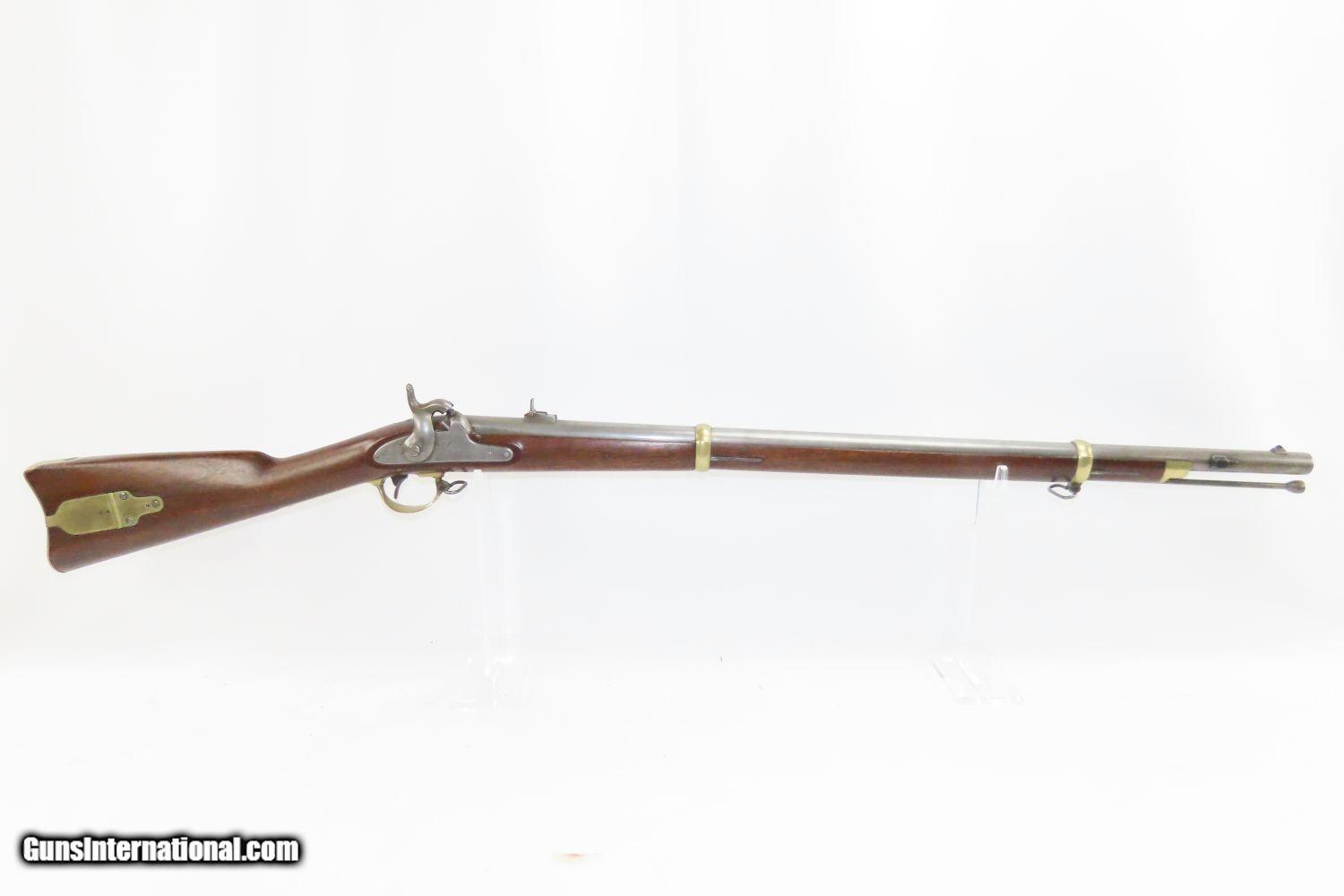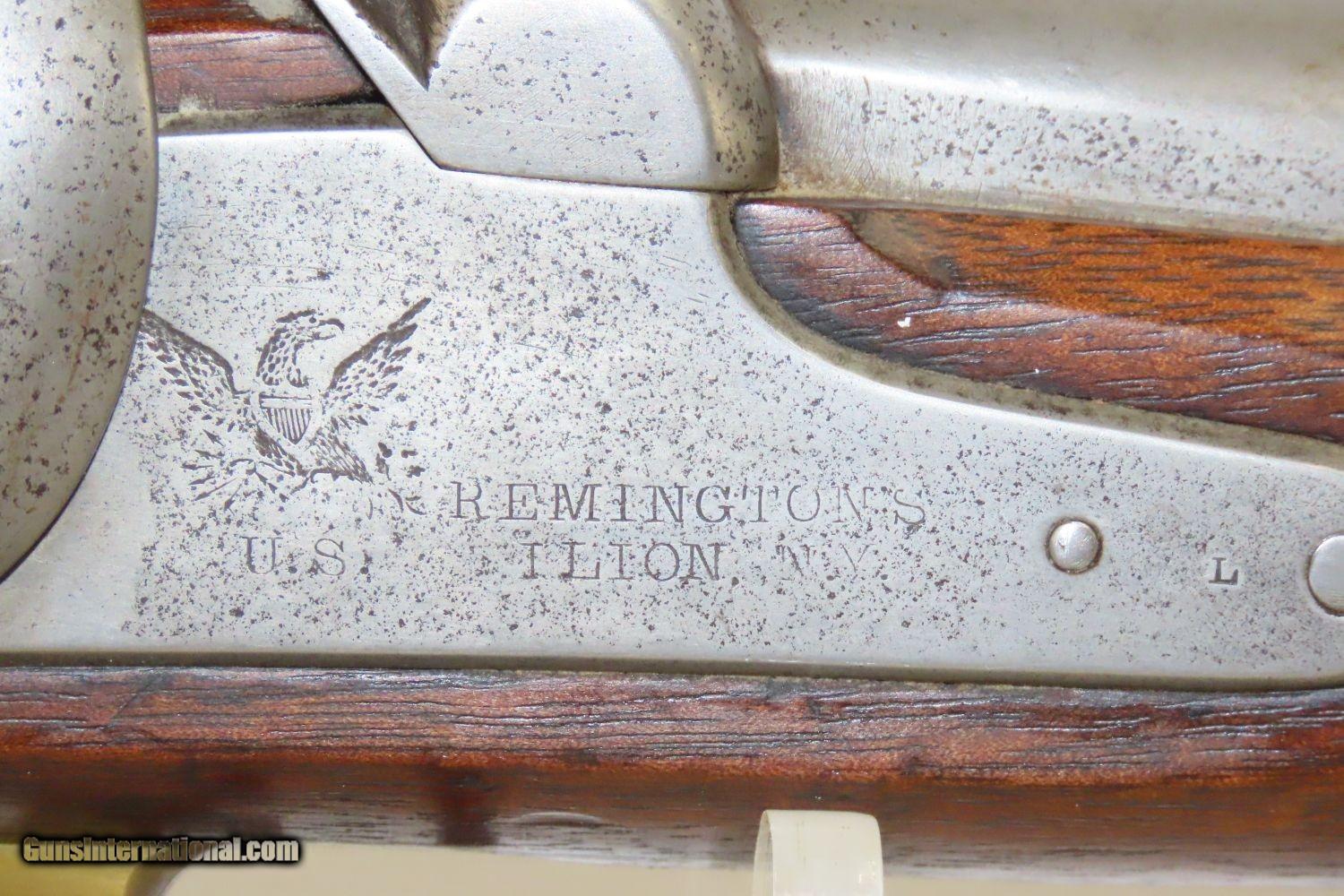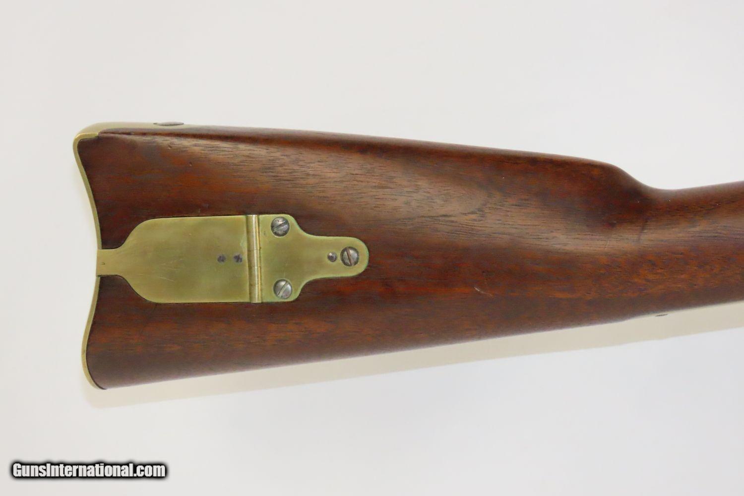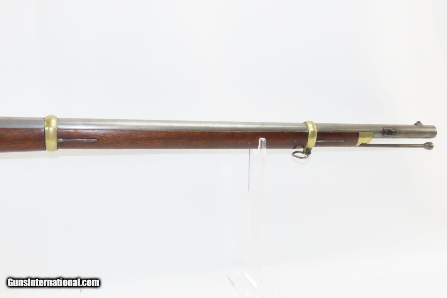 Description: SCARCE Antique CIVIL WAR US Remington Model 1863 “ZOUAVE” Percussion Rifle Only 12,501 Made for the Union Army 1863-1865 Here we present an antique US Model 1863 Remington “Zouave” Rifle-Musket manufactured by the Remington Arms Co., circa 1863, in Ilion, New York. Only 12,501 were made. The “Zouave” rifle was quite similar to the Harpers Ferry Model 1841 “Mississippi Rifle” of Mexican War fame, so-called for its endearment to the Mississippi troops under then-Colonel Jefferson Davis (1808-1889). Both had brass hardware with a patchbox set into the right side of the butt stock (the Remington’s is smaller in comparison), both had 33-inch barrels secured by 2 barrel bands. One of the primary differences was the Model 1841’s .54 caliber rather than the Zouave’s .58 caliber, however, there was enough material in the barrel that many were re-bored later to .58 as that became the standard. Remington made some of the Model 1841s on contract from 1846-1854. Both are excellent in design, quality, and aesthetic. Their shorter barrels in comparison to the Models 1861/1863 would have been advantageous in closer confines. Two cartouches remain legible on the left wrist: “HDL” for Henry D. Jennings and “BH” for Benjamin Hannis. The left side of the barrel is initialed “H.S.L.” for Homer S. Lathe. “US” is stamped on the buttplate tang and lock. This example is dated “1863”. Inside of the patch box “E.G.P.” is hand engraved. The overall condition is very good+. The action is strong. The bore is bright with sharp rifling. The stock is solid and smooth. This is a fantastic example of one of the scarcest government contract rifle-muskets of the American Civil War and a handsome devil to boot! Own the original! This is a legitimate antique and not a reproduction. Barrel is 33 inches. Caliber: .58 Overall condition as seen in photos. Very Fast. Very Safe. FREE SHIPPING WORLDWIDE. Delivered directly to your door by express mail! Guaranteed AUTHENTIC & Includes CERTIFICATE OF AUTHENTICITY. ancestryguns $3185 #200857 SOLD Antique: Yes Rifle Caliber: .58 |
