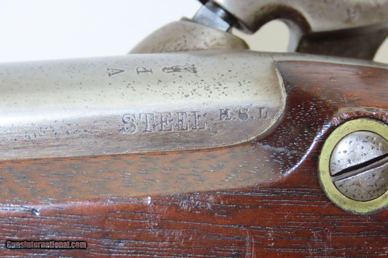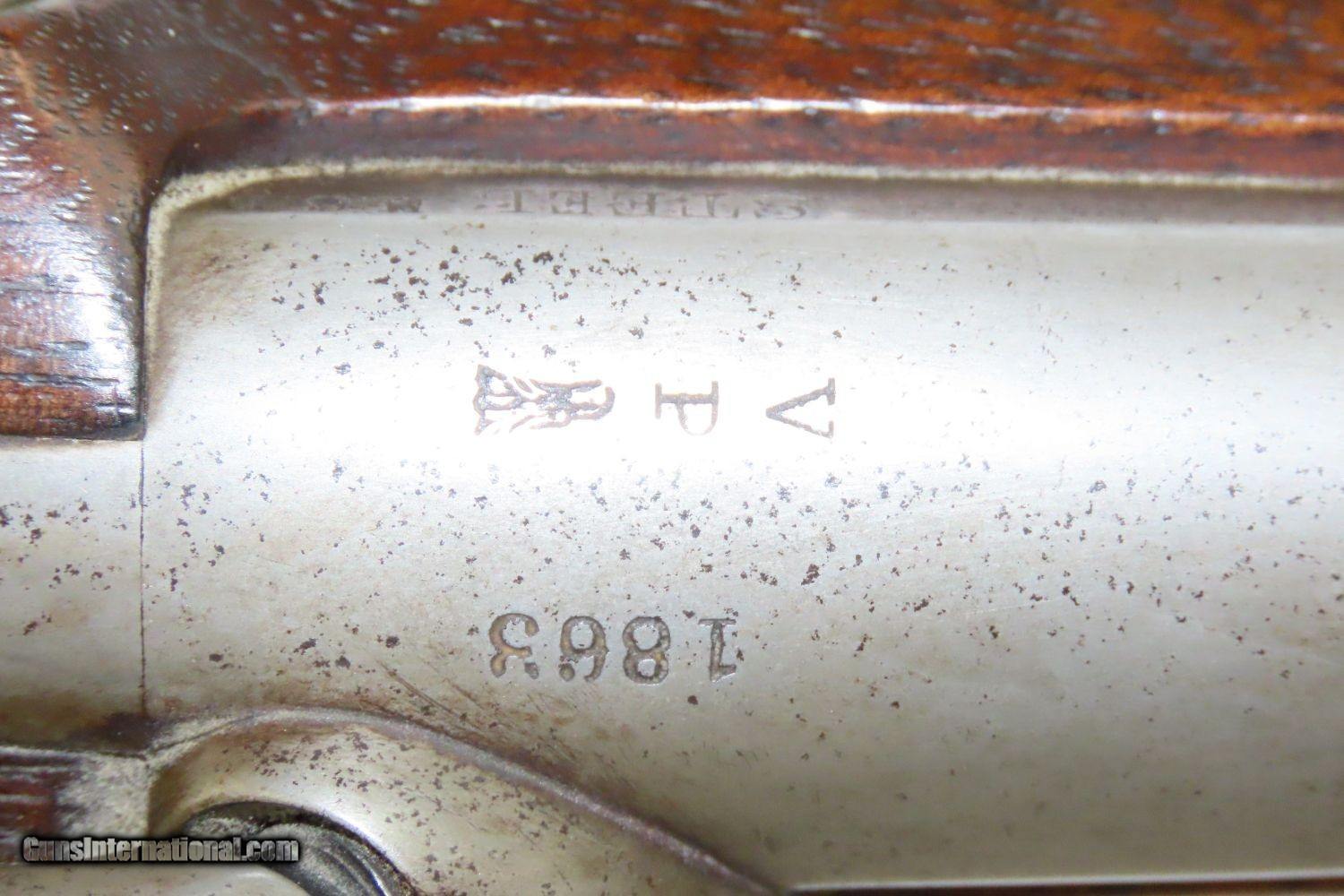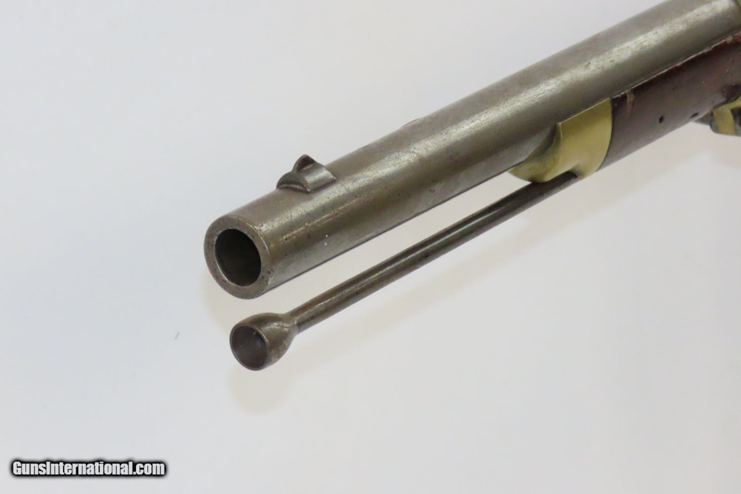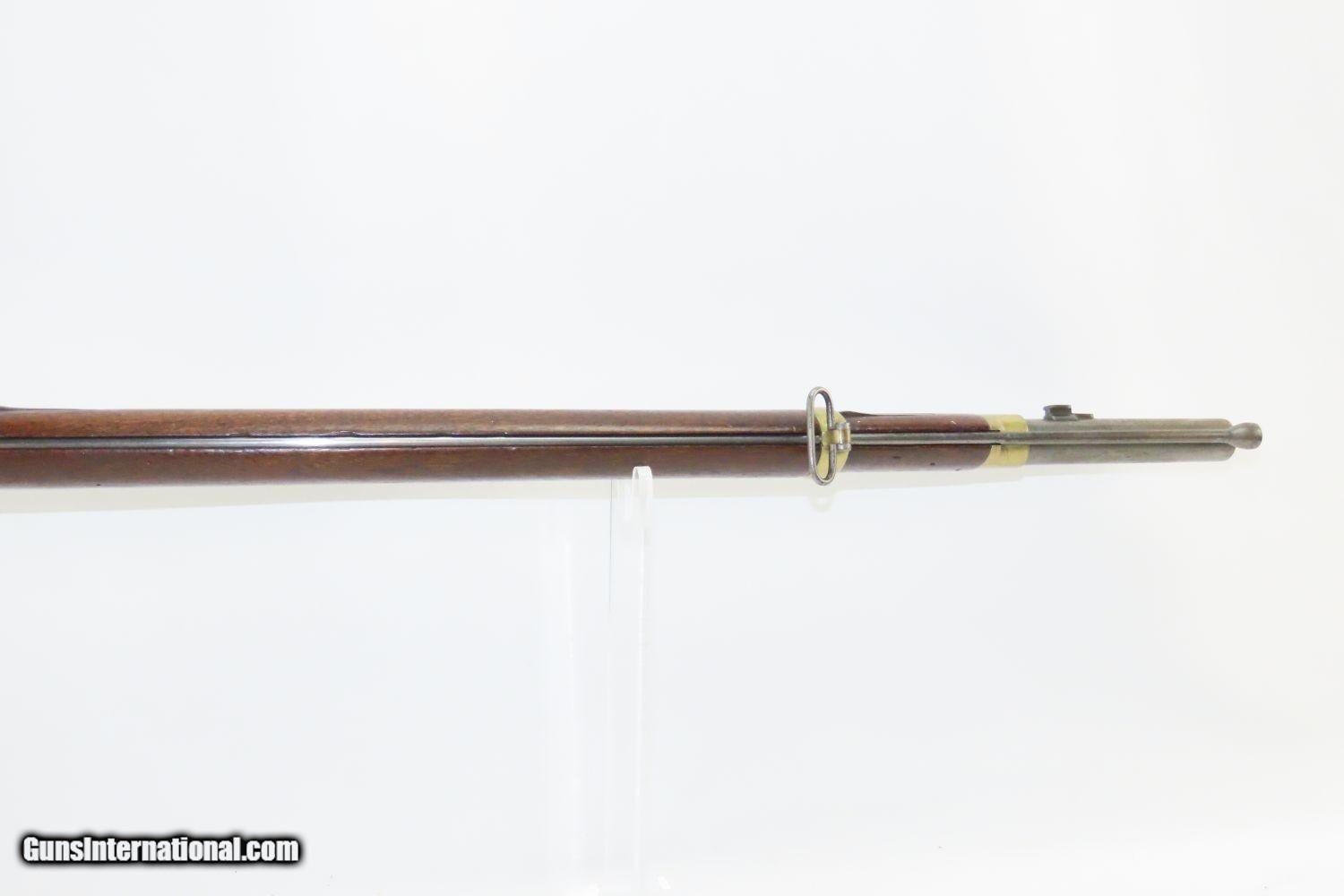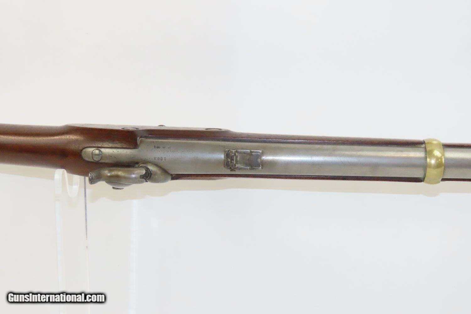 Description: SCARCE Antique CIVIL WAR US Remington Model 1863 “ZOUAVE” Percussion Rifle Only 12,501 Made for the Union Army 1863-1865 Here we present an antique US Model 1863 Remington “Zouave” Rifle-Musket manufactured by the Remington Arms Co., circa 1863, in Ilion, New York. Only 12,501 were made. The “Zouave” rifle was quite similar to the Harpers Ferry Model 1841 “Mississippi Rifle” of Mexican War fame, so-called for its endearment to the Mississippi troops under then-Colonel Jefferson Davis (1808-1889). Both had brass hardware with a patchbox set into the right side of the butt stock (the Remington’s is smaller in comparison), both had 33-inch barrels secured by 2 barrel bands. One of the primary differences was the Model 1841’s .54 caliber rather than the Zouave’s .58 caliber, however, there was enough material in the barrel that many were re-bored later to .58 as that became the standard. Remington made some of the Model 1841s on contract from 1846-1854. Both are excellent in design, quality, and aesthetic. Their shorter barrels in comparison to the Models 1861/1863 would have been advantageous in closer confines. Two cartouches remain legible on the left wrist: “HDL” for Henry D. Jennings and “BH” for Benjamin Hannis. The left side of the barrel is initialed “H.S.L.” for Homer S. Lathe. “US” is stamped on the buttplate tang and lock. This example is dated “1863”. Inside of the patch box “E.G.P.” is hand engraved. The overall condition is very good+. The action is strong. The bore is bright with sharp rifling. The stock is solid and smooth. This is a fantastic example of one of the scarcest government contract rifle-muskets of the American Civil War and a handsome devil to boot! Own the original! This is a legitimate antique and not a reproduction. Barrel is 33 inches. Caliber: .58 Overall condition as seen in photos. Very Fast. Very Safe. FREE SHIPPING WORLDWIDE. Delivered directly to your door by express mail! Guaranteed AUTHENTIC & Includes CERTIFICATE OF AUTHENTICITY. ancestryguns $3185 #200857 SOLD Antique: Yes Rifle Caliber: .58 |