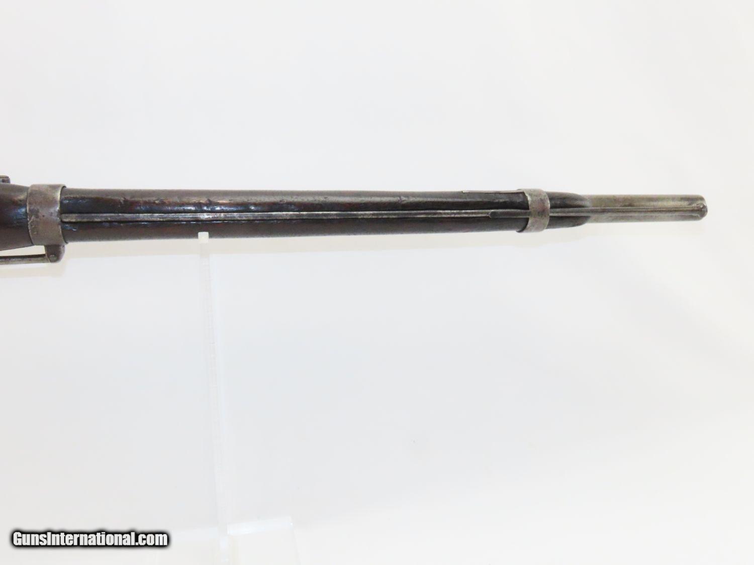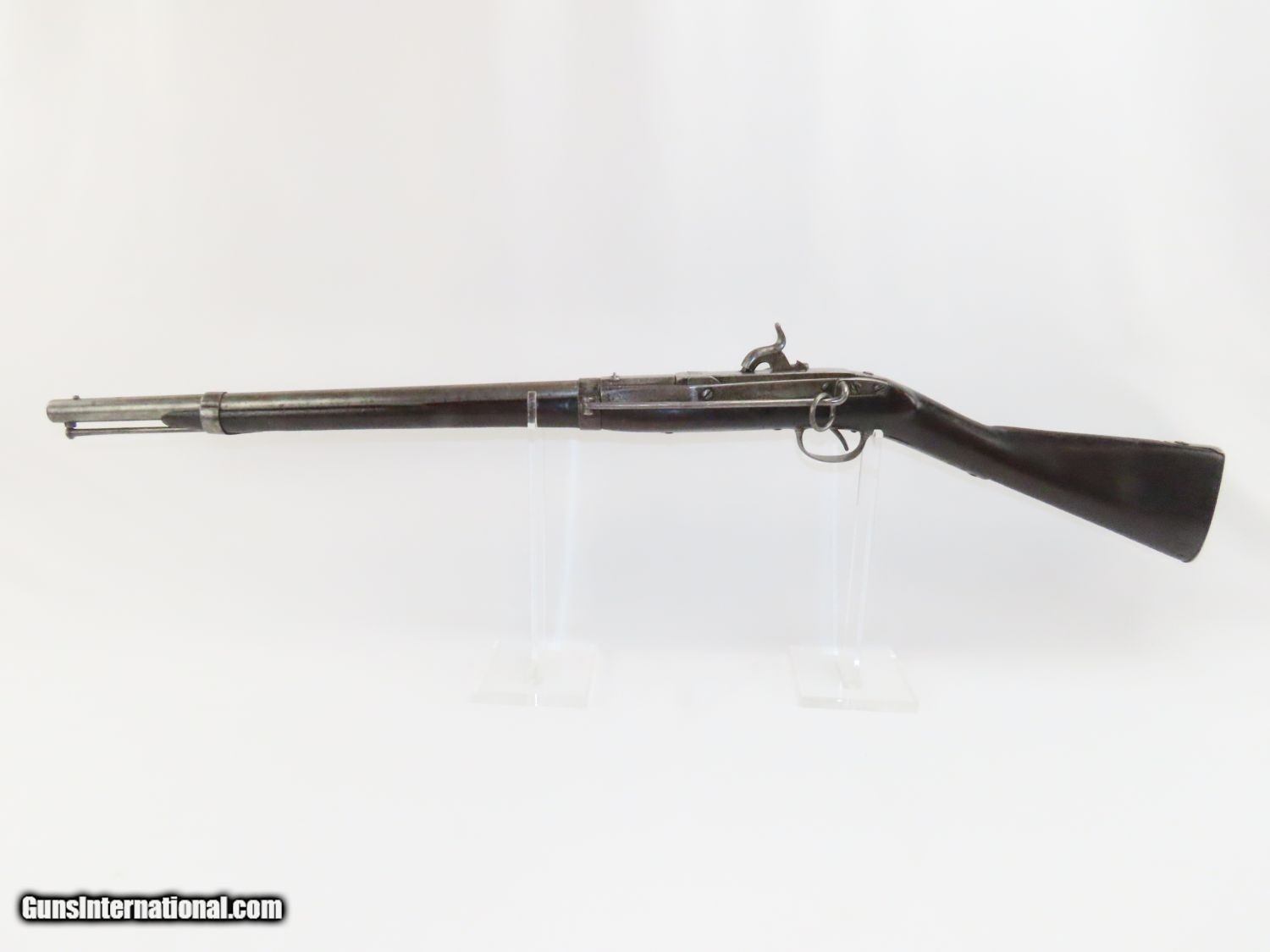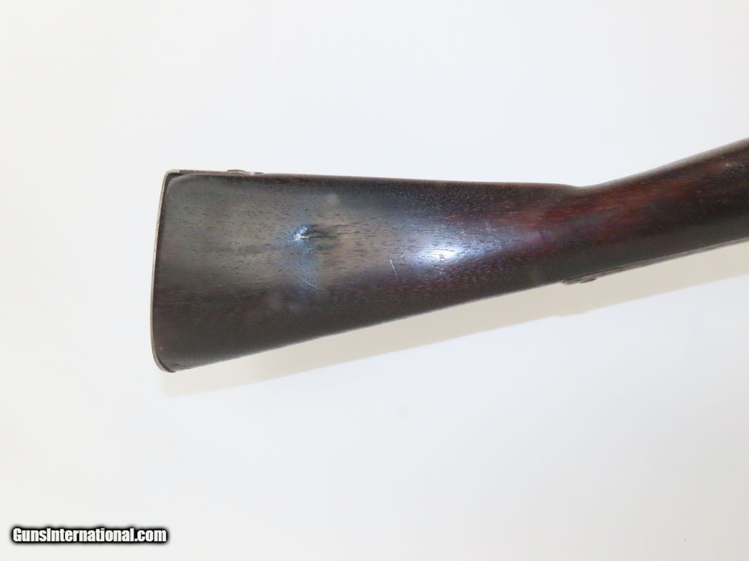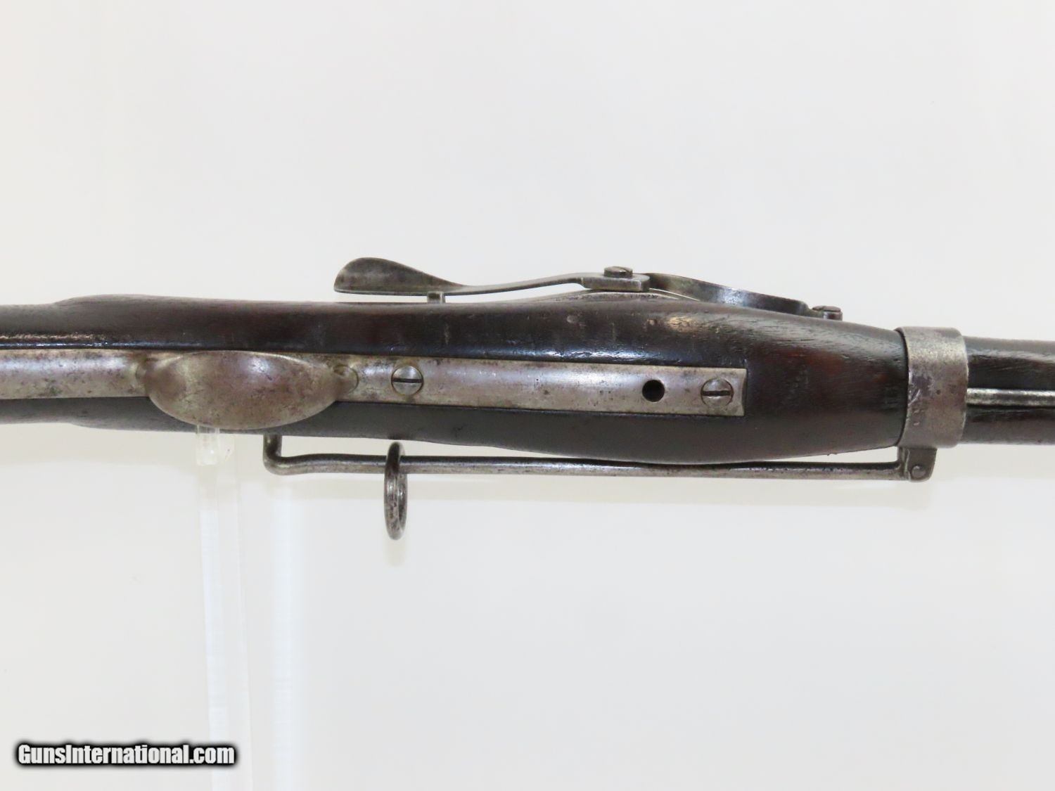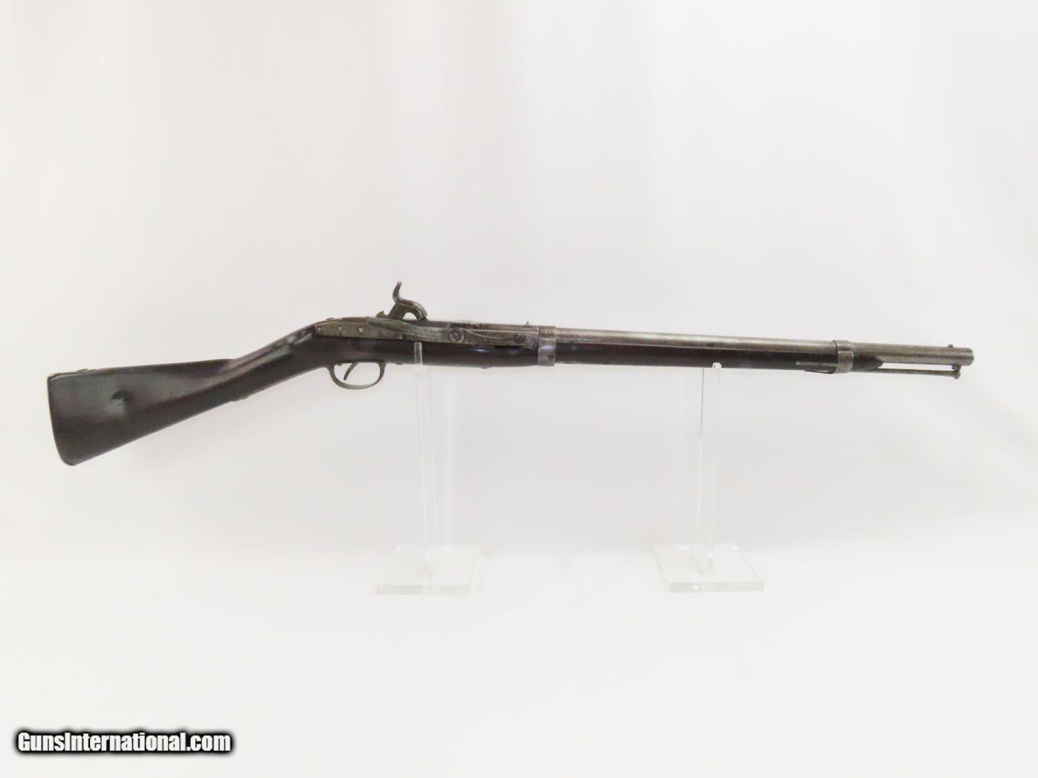 Description: SCARCE Antique SIMEON NORTH Model 1843 HALL Breech Loading CAVALRY CARBINE 1 of 10,500 Contracted by Simeon North Here we present an antique U.S. Model 1843 Side Lever Breech Loading Carbine from the Simeon North Contract, made circa 1849 in Middletown, Connecticut. A native of Berlin, Connecticut, Simeon North was a successful manufacturer of scythes before he turned to gun making, eventually becoming one of the major suppliers of firearms to the United States military before the Civil War. 10,500 of these "side lever" Hall carbines were produced by Simeon North in 1844-1853. North was better known for the rifles that he produced. In 1823, he won a government contract in which he supplied the army with standard breech-loading rifles. These initially were flintlock arms, but in 1843 North submitted a new design for governmental approval. His revamped model was christened "North's Improvement" for its improved method of working the breech mechanism. Until then, breech-loading rifles were flawed with loose seams between the chamber and the barrel, causing flames to spurt out the back and losing some velocity because of this gas leakage. North's design made the breech mechanism fit more closely to the barrel, thus reducing the loss of velocity. His adaptation of the Hall percussion breechloader was a success with the army, and he continued filling orders until his death in 1852. Many of these rode on the Western Frontier with the 1st and 2nd Dragoons and many would go on to be used during the American Civil War, especially in the Western Theater. The overall condition is very good. The action is strong. The bore is in good condition with nice rifling. “W” and “HUNTER” are stamped on the left side of the frame. “US/S. NORTH/MIDLtn/CONN1849” is marked atop the breech. Nice, smooth, dark walnut stock that remains solid. An interesting indentation on the right side, perhaps from an impact, that did not break the stock. The left side of the barrel has a “JCB” stamp, for Ordnance Inspector Joseph C. Bragg. A great piece of US history! Own the original! This is a legitimate antique and not a reproduction. Barrel is 21 inches. Caliber: .52 Overall condition as seen in photos. Very Fast. Very Safe. FREE SHIPPING WORLDWIDE. Delivered directly to your door by express mail! Guaranteed AUTHENTIC & Includes CERTIFICATE OF AUTHENTICITY. ancestryguns $2795 #20170 SOLD Antique: Yes |