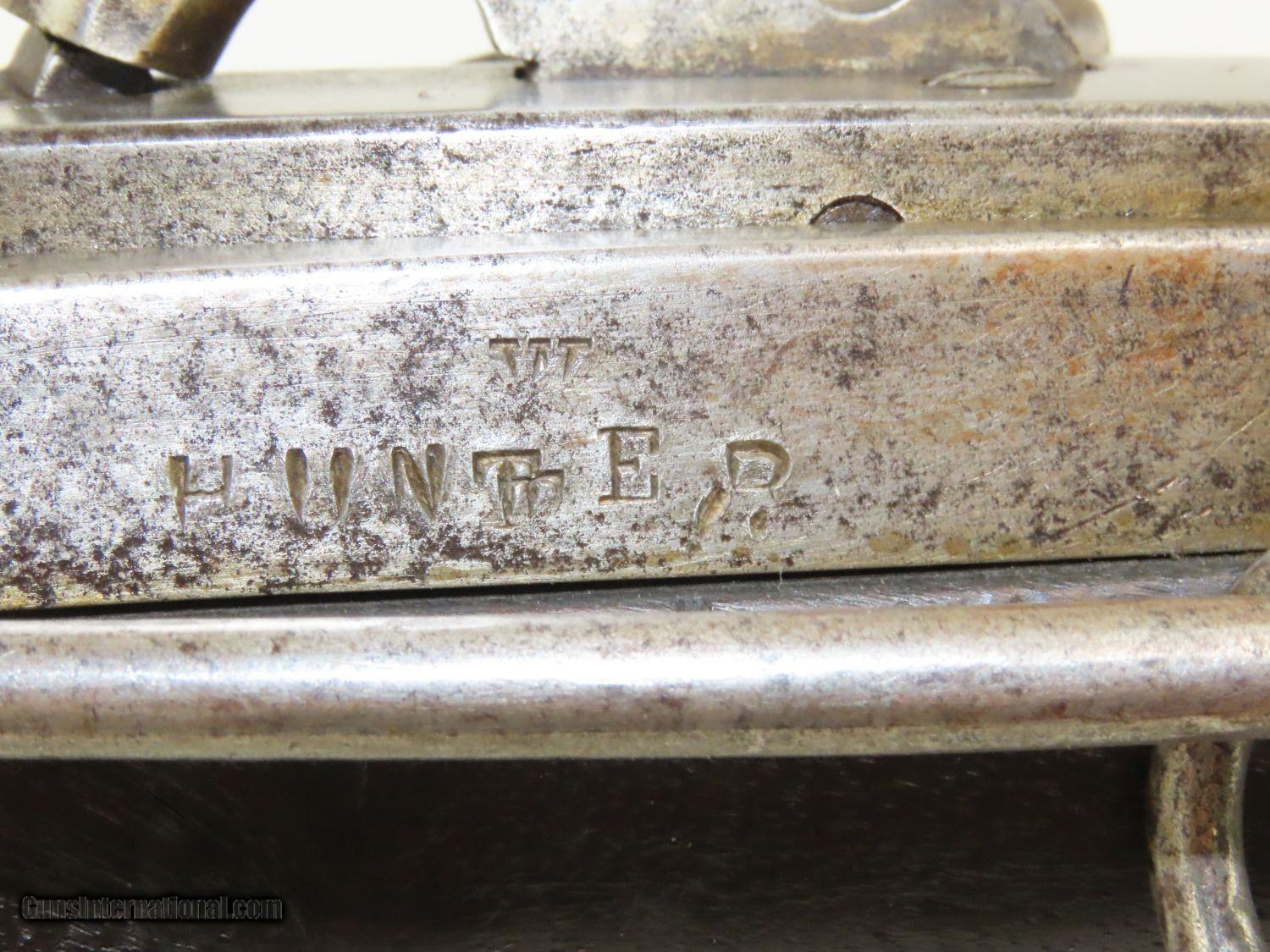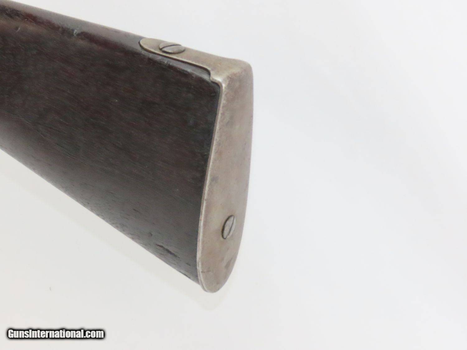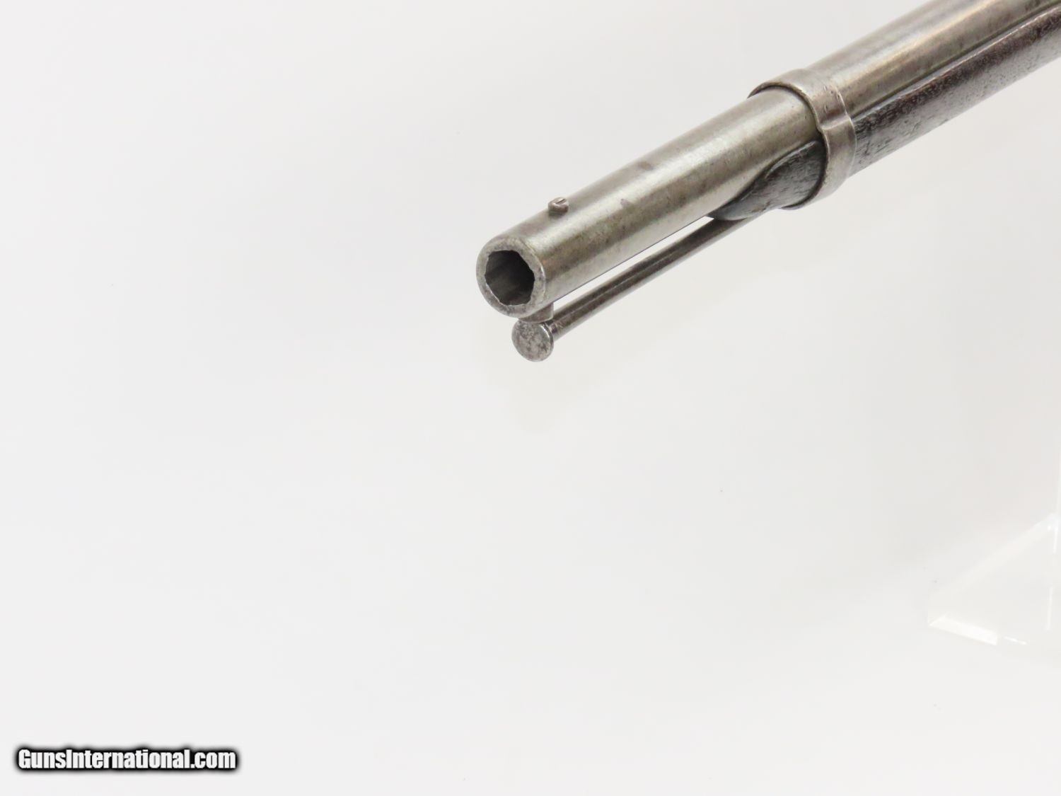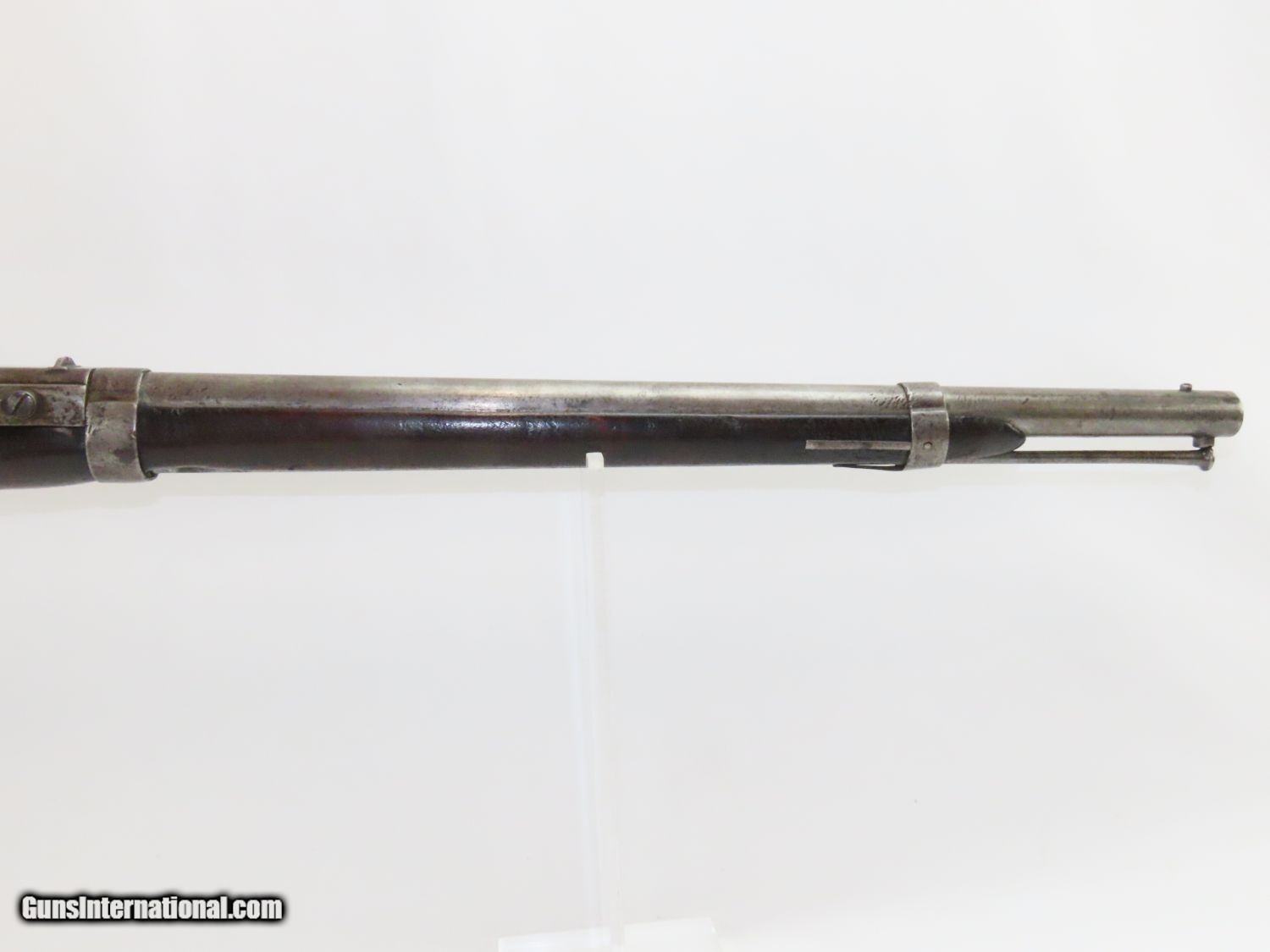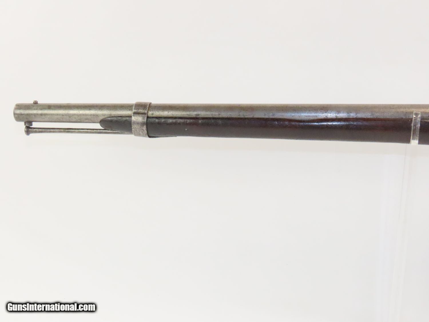 Description: SCARCE Antique SIMEON NORTH Model 1843 HALL Breech Loading CAVALRY CARBINE 1 of 10,500 Contracted by Simeon North Here we present an antique U.S. Model 1843 Side Lever Breech Loading Carbine from the Simeon North Contract, made circa 1849 in Middletown, Connecticut. A native of Berlin, Connecticut, Simeon North was a successful manufacturer of scythes before he turned to gun making, eventually becoming one of the major suppliers of firearms to the United States military before the Civil War. 10,500 of these "side lever" Hall carbines were produced by Simeon North in 1844-1853. North was better known for the rifles that he produced. In 1823, he won a government contract in which he supplied the army with standard breech-loading rifles. These initially were flintlock arms, but in 1843 North submitted a new design for governmental approval. His revamped model was christened "North's Improvement" for its improved method of working the breech mechanism. Until then, breech-loading rifles were flawed with loose seams between the chamber and the barrel, causing flames to spurt out the back and losing some velocity because of this gas leakage. North's design made the breech mechanism fit more closely to the barrel, thus reducing the loss of velocity. His adaptation of the Hall percussion breechloader was a success with the army, and he continued filling orders until his death in 1852. Many of these rode on the Western Frontier with the 1st and 2nd Dragoons and many would go on to be used during the American Civil War, especially in the Western Theater. The overall condition is very good. The action is strong. The bore is in good condition with nice rifling. “W” and “HUNTER” are stamped on the left side of the frame. “US/S. NORTH/MIDLtn/CONN1849” is marked atop the breech. Nice, smooth, dark walnut stock that remains solid. An interesting indentation on the right side, perhaps from an impact, that did not break the stock. The left side of the barrel has a “JCB” stamp, for Ordnance Inspector Joseph C. Bragg. A great piece of US history! Own the original! This is a legitimate antique and not a reproduction. Barrel is 21 inches. Caliber: .52 Overall condition as seen in photos. Very Fast. Very Safe. FREE SHIPPING WORLDWIDE. Delivered directly to your door by express mail! Guaranteed AUTHENTIC & Includes CERTIFICATE OF AUTHENTICITY. ancestryguns $2795 #20170 SOLD Antique: Yes |