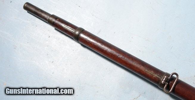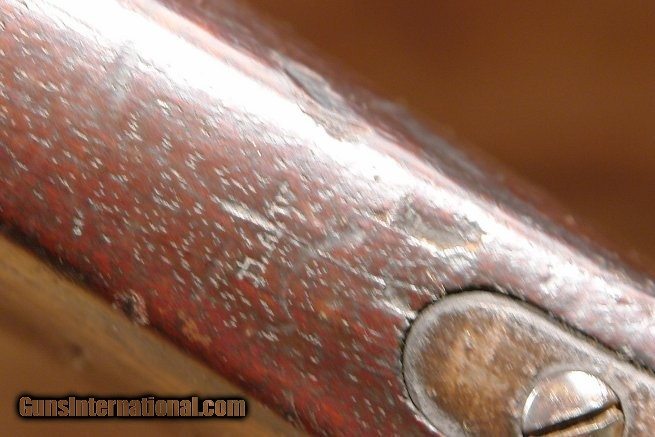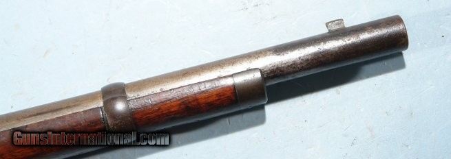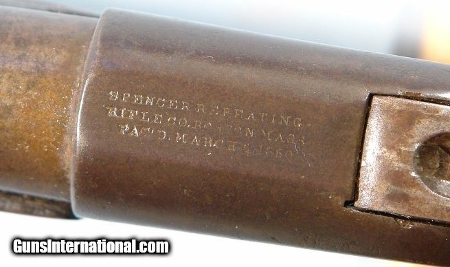 Description: SCARCE CIVIL WAR SPENCER .52 CALIBER REPEATING ARMY RIFLE CA. 1863-4. 30” barrel. All original and complete. Serial numbered in the 28xxx range and all matching. Only 11,470 delivered to the U.S. Army during the Civil War and all were issued and used during the war. Very good overall with dark metal patina never cleaned of polished. Attic excellent condition. Stock and forend with the original finish. U.S. Ordnance Inspector’s stamp (E.A.W.) on stock comb ahead of butt plate tang for E.A. Williams Army Sub-inspector at Spencer during the Civil War. The inspector’s cartouche at the wrist can also be seen but is very faint. Stock with two old and solid minor hairline cracks along the tube channel which is very common. Chip out of right forend at the frame. Working order and very good bore. Untouched original example and rarely seen for sale. SOLD Antique: Yes |
