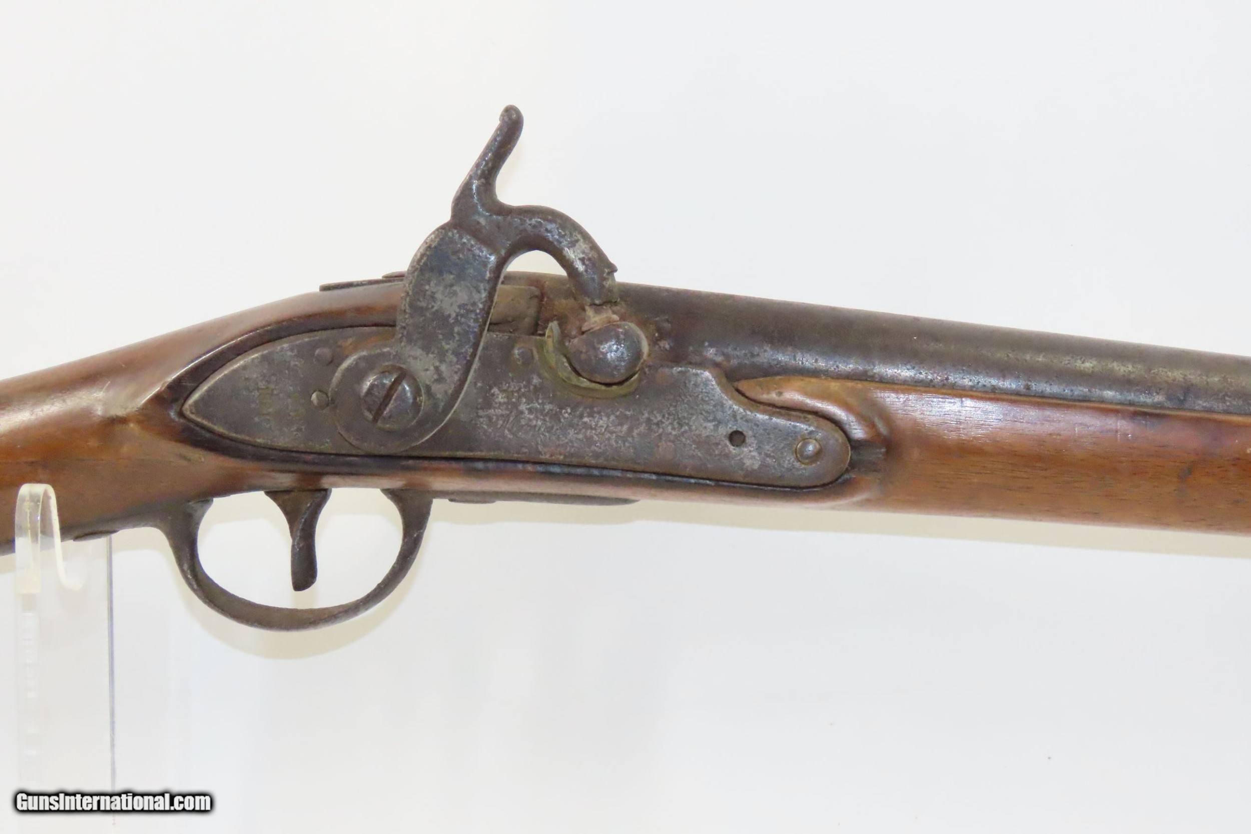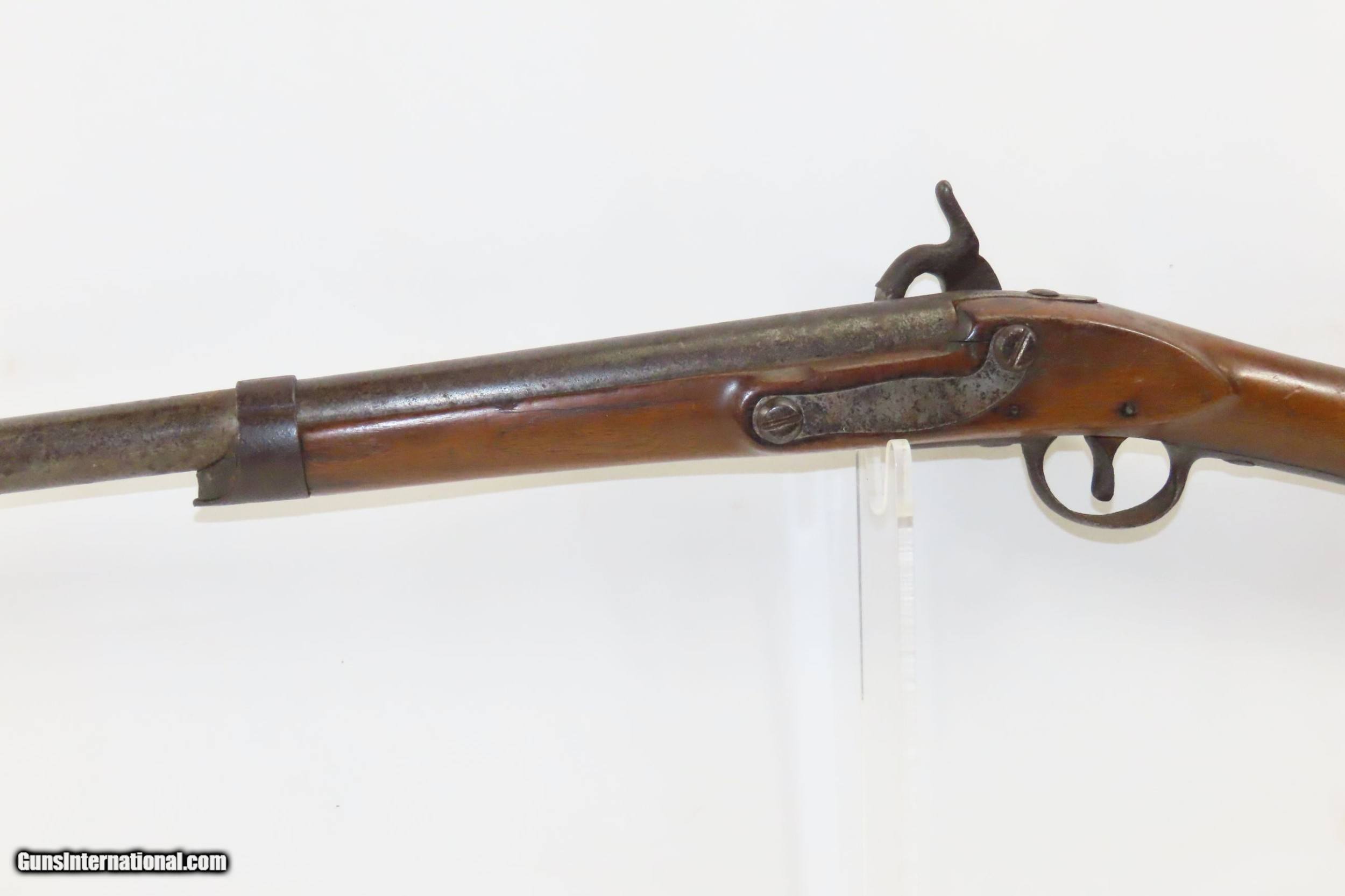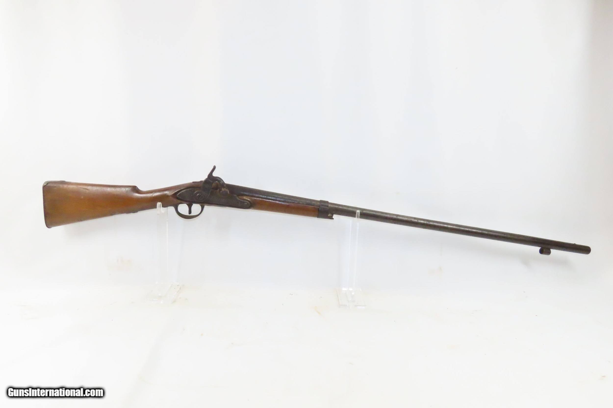 Description: Scarce SOUTHERN Antique VIRGINIA MANUFACTORY Musket CIVIL WAR Bolster Conv Richmond, VA Musket Made in Only State Run Armory Here we present a Antique Richmond Manufactory Conversion Musket, originally made in Richmond, Virginia circa 1821 and likely converted just prior to or during the American Civil War. The original 1st models were produced between the time the Manufactory opened in 1802 through 1808 and the 2nd model Virginia Manufactory Muskets were built from 1809 to 1814. They were completely hand built and as such several variations have been noted between muskets. This example was built shortly thereafter. These converted muskets are generally classified as Confederate weapons. This is an example of a very rare Virginia Manufactory musket likely used during multiple conflicts. It is truly an amazing firearm that is yet available to be preserved as an artifact of the Civil War and the State of Virginia. In 1802 the first state owned firearm factory began production under superintendent, John Clarke. The factory produced not only firearms, but swords and bayonets all the way up until 1821 when production ceased. By this time, many other sources of firearms were being more readily produced and the armory was no longer necessary. That and, according to Giles Cromwell, Virginia went through a period of stagnation due to economic factors in the state that lasted from about the time the Manufactory closed up to when the Civil War began. Due to the shortage of percussion small arms at the onset of the Civil War, the bulk of Stonewall Jackson's divisions were armed with flintlocks at the start of the Valley Campaign, including many from the Virginia Manufactory arsenal. When the Civil War began, records show that virtually none of the Virginia Manufactory muskets had been converted at all. From October 1, 1859 to November 1, 1861 over 44,000 Virginian long arms were issued from stores, all still in their original flintlock configuration. No other flintlocks are recorded as having been distributed after this last date, and Cromwell suggests that this was the beginning of a campaign to cycle these muskets back through for update and conversion to percussion. There was a short revival period of the factory during the Civil War, but in 1865 a fire destroyed the interior and it was never rebuilt. In recent years, a Federal Bank and a packaging company have completed construction over top of the Manufactory’s original site leaving no traces of the country’s earliest state-owned firearm factory. All we have left to remember this part of history by are a few public records and the products the factory produced. Luckily, we have one of those few muskets here! This musket received a pretty hasty bolster conversion from flintlock to percussion—look at the remnants of the brass flashpan! At some point after the service life of this musket it was turned into what is basically a shotgun with the stock and barrel being trimmed for weight or possibly due to damage. A ramrod tube was affixed to the bottom of the barrel. This is certainly a gun that was used for a significant part of the 19th Century! The overall condition is fair. Original patina throughout. The action is strong. The bore is untouched, dusty and smooth. The stock has been cut shorter and the barrel band is a bit loose. Stock shows lots of wear. There is a short split at the front lock screw head on the left stock flat, otherwise solid. Own the original! This is a legitimate antique and not a reproduction. Barrel is 36-1/8 inches. Caliber: .72 Percussion Overall condition as seen in photos. Very Fast. Very Safe. FREE SHIPPING WORLDWIDE. Delivered directly to your door by express mail! Guaranteed AUTHENTIC & Includes CERTIFICATE OF AUTHENTICITY. ancestryguns $1600 #226945 SOLD Curio/Relic: Yes Antique: Yes |