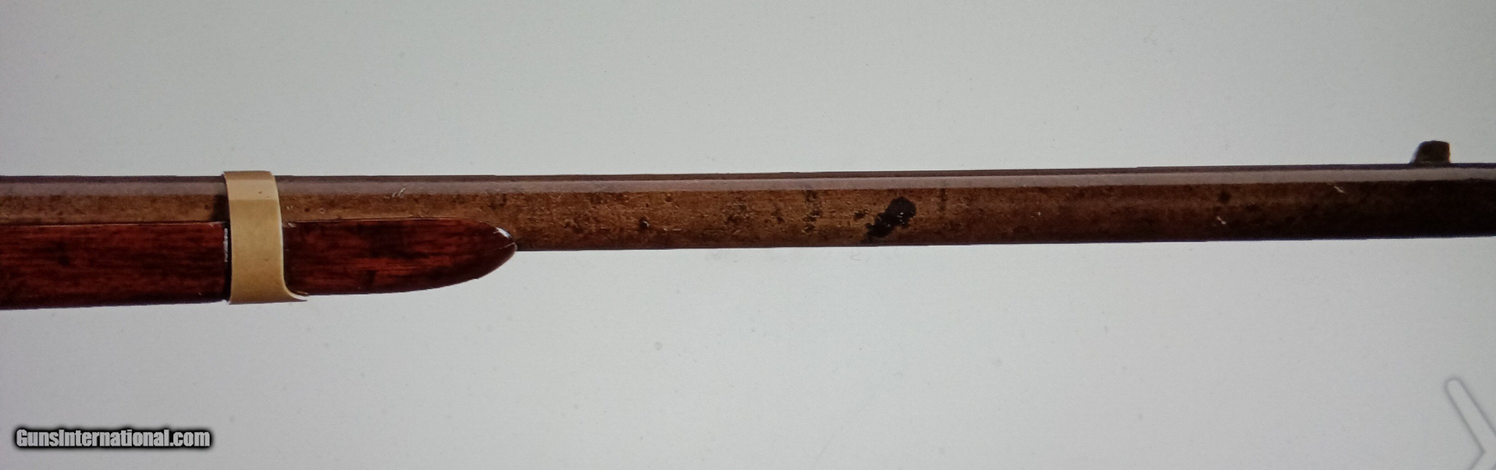 Description: SALE PENDING.....Description: SCARCE...LOOKS BETTER THAN PHOTOS... Manufactured from 1853 to 1855 by Robbins & Lawrence of Windsor, Vermont, with a total production of approximately 4,997. This is the earliest Sharps Model with the distinctive "slanting breech" and is fitted with the lever hinge pin retaining spring mounted on the right rear of the forearm. The top of the barrel at the breech is marked "ROBBINS &/LAWRENCE", the upper tang "C. SHARPS/PATENT/1848" followed by the serial number and the lock is marked "SHARPS/PATENT/1852". The matching serial number is marked on the underside of the barrel and back of the breechblock with the inside of the patch box door marked "457". Brass blade front and folding squirrel ear rear sight, sling swivel mounted on the brass barrel band and left side of the frame, and mounted with a smooth forearm and straight grip stock with brass patch box and carbine buttplate. Condition: Very Good as refinished with brown on the metal surfaces. The brass has an attractive aged "mustard yellow" patina. The wood has been lightly sanded and varnished and remains very good with a few pressure dents and scratches. The markings are clear. Mechanically fine. ....2nd firearm SHIPS FREE, with this one!...S/H $55....Thanks Greg 522-23, cp SEE MY NUMEROUS FIREARMS of NICE CIVIL WAR AND INDIAN WARS... SOLD Antique: Yes Manufacturer: Sharp's Model: m1852 Serial Number: 2587 |