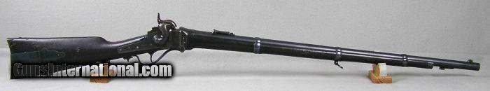 This is a Sharps New Model 1859 Percussion breach-loading rifle with saber bayonet lug. It has a 3 band 30” barrel with a very good shinny bore, only a very small amount of fine corrosion at the rear end of the bore. All of the markings are sharp and clear. The barrel retains about 80% blue and the receiver still shows dark case colors. The mechanical function is very good sharp and crisp. This is a very tight and solid Sharps rifle and the wood has only a few storage dings and dents. The serial number is 33720 so this was made between 1859 and 1861. There were 129000 rifles and carbines made from 1859-1865. I would consider trades for pre 1899 ANTIQUE PISTOLS and rifles on any of my items.. WHAT DO YOU HAVE TO TRADE? Ask about our 30-90 day lay-away program. We accept Bank Check, Money order, Personal checks or wire transfer.
