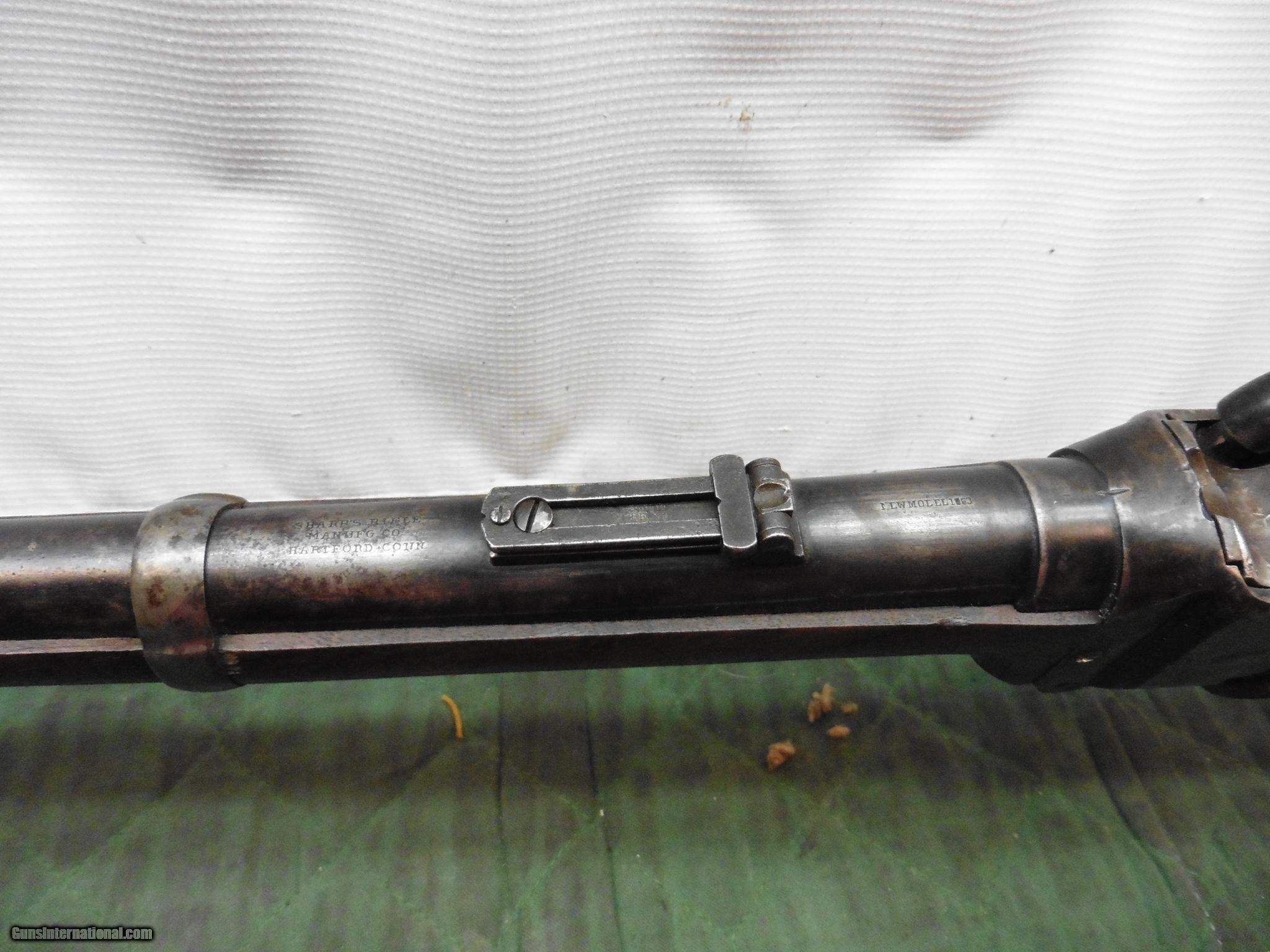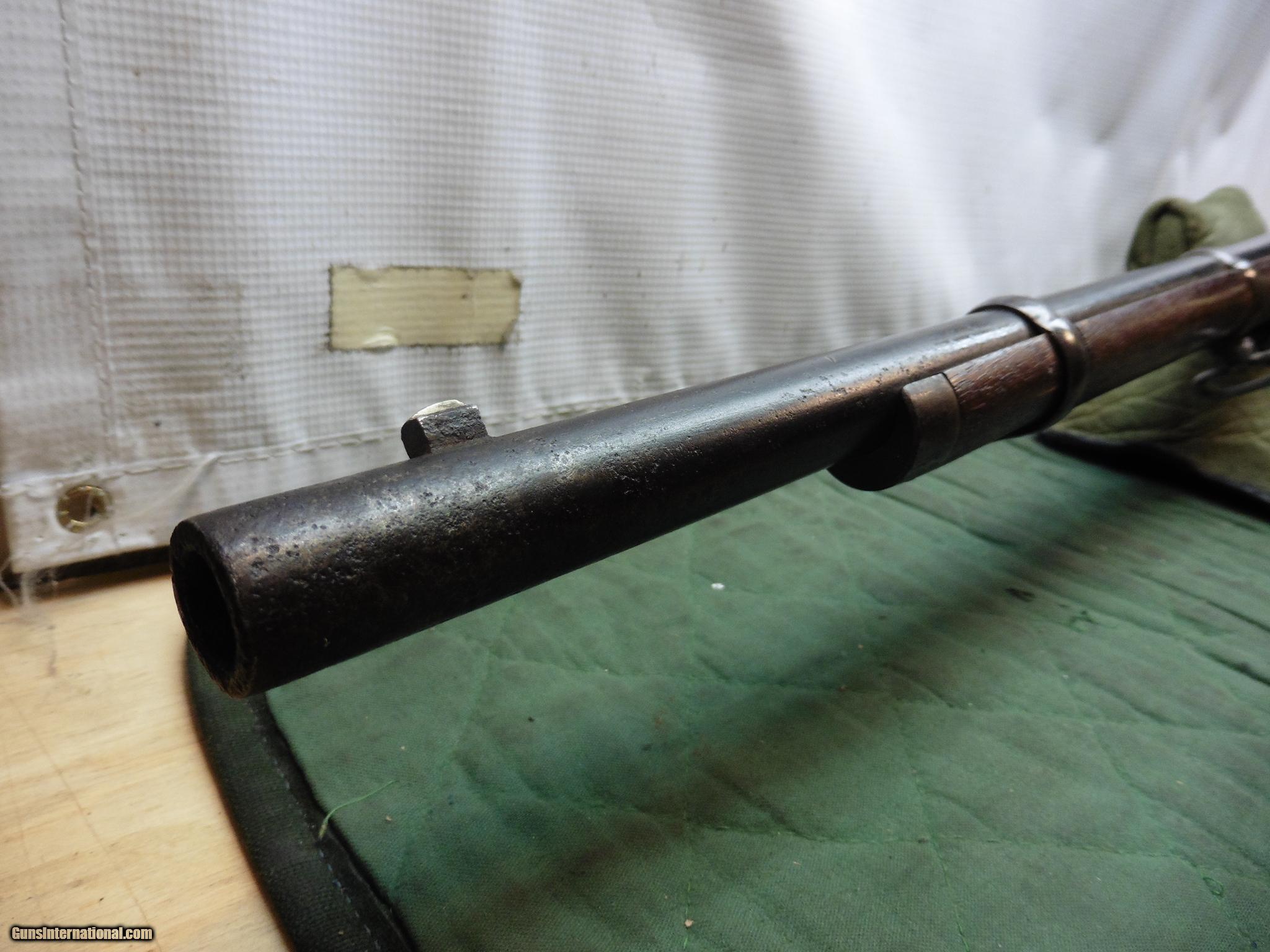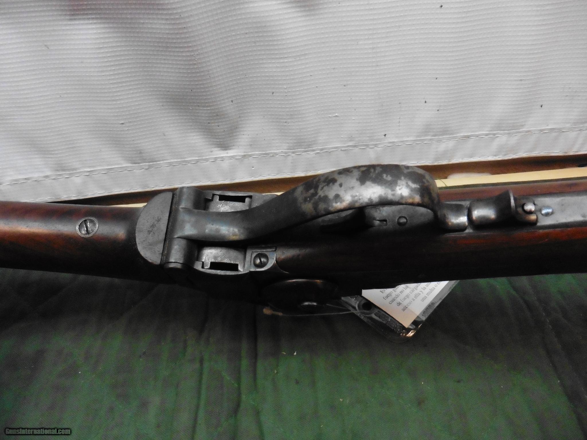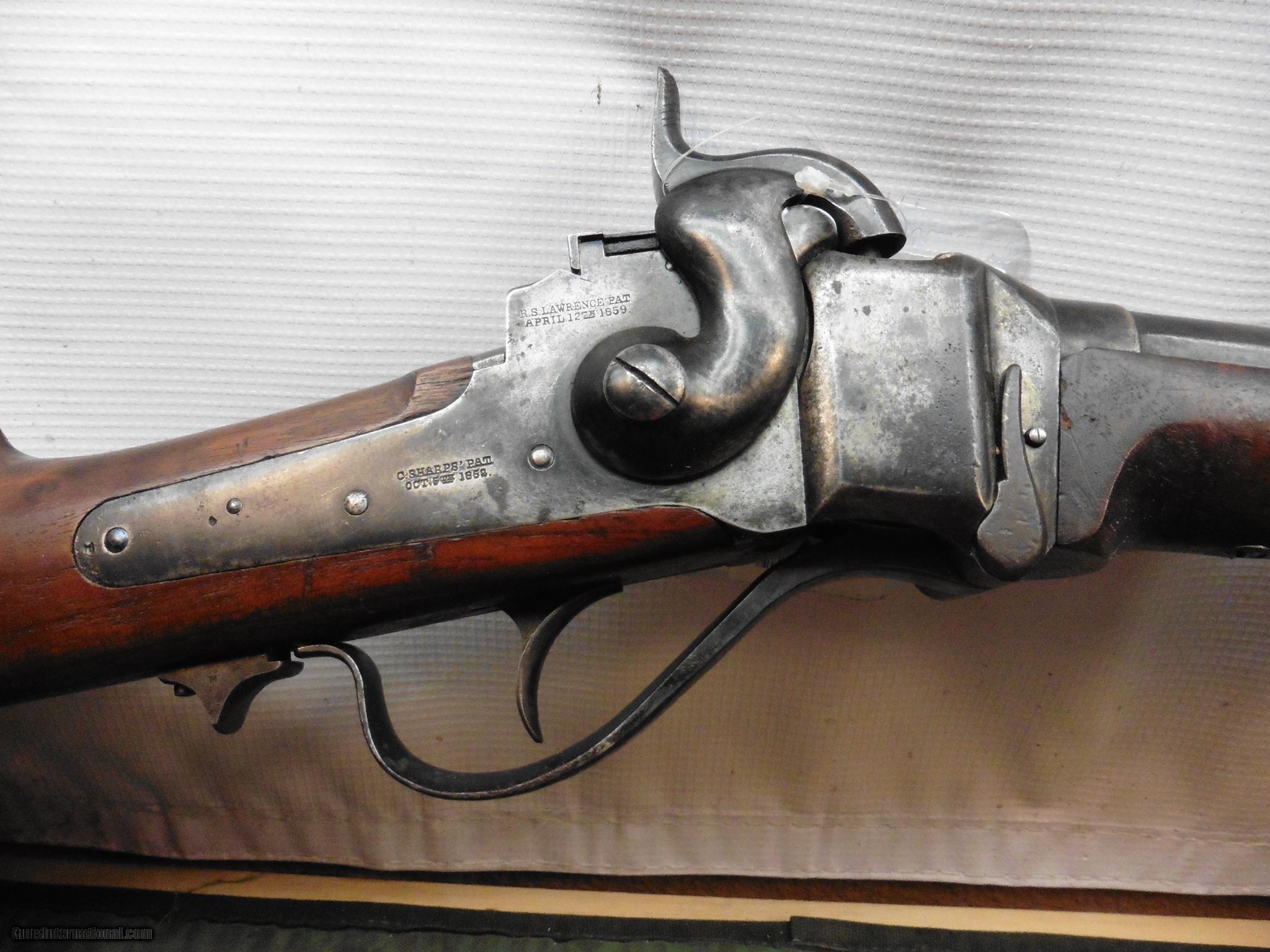 Description: Sharps New Model 1863 Rifle 6,150 units produced. .52 Caliber 36” barrel. Hardwood stock has butt plate and built-in patchbox in excellent condition retaining color case finish. Barrel retains 50% of blueing. Folding ladder rear sight. Sharps pellet priming system integrated with lock plate. All lock stampings are crisp and legible. Barrel stamped SHARPS RIFLE/MANUFG.CO/HARTFORD CONN. NEW MODEL 1863. Straight breech model. Serial # C37964. Excellent overall condition. SOLD Antique: Yes Manufacturer: Sharps Model: New Model 1863 Rifle Caliber Info: .52 |