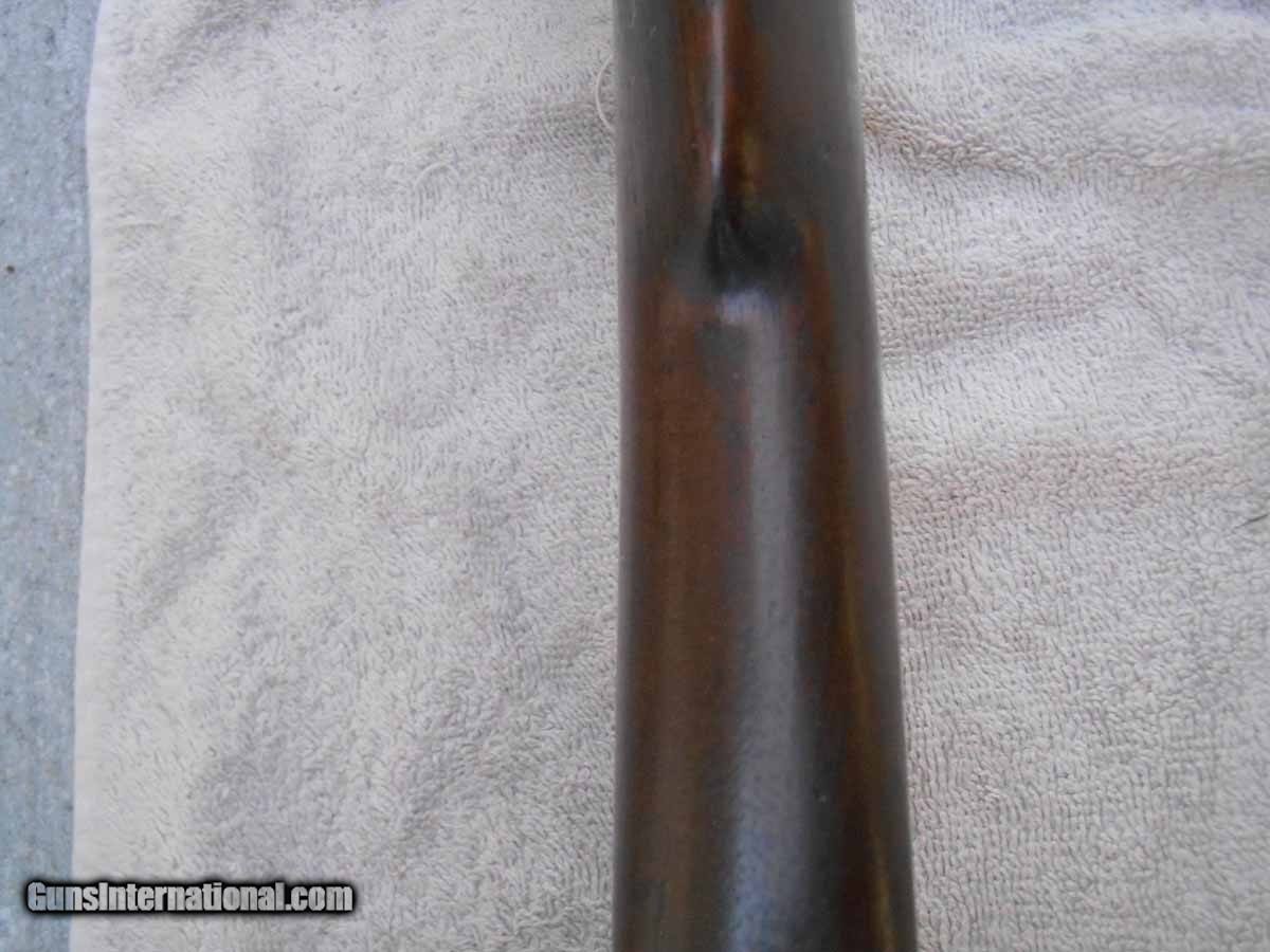 Description: This Smith Patent carbine is in very good condition for its age, without taking into consideration its heavy patina, as most have these days. The wood is without doubt in its unsanded condition, with a very nice cartouche on the left side of the stock.The line on the stock, below the cartouche, looks like a crack, but it isn't, according to its previous owner. It is, instead, a wide scratch among a couple of other much smaller scratches in the same area of the stock. Whatever it is, it is very shallow. The bore doesn't appear to be corroded and gauges right at .50 inches. The mechanical function is excellent. All of the parts appear original to the carbine and all of the markings on the receiver are sharp and in the places they should be. There is a 7670 on the barrel lug, sandwiched between a 76 and a 70 on the bottom of the receiver ears that I didn't get a photo of, apparently serial numbers put there during manufacturing long ago. Please refer to the photos, as they are an integral part of the description. Buyer pays shipping and insurance. NO FFL REQUIRED, the carbine is an antique and ships directly to the buyer. There is a three day inspection and return period, provided that the item is returned, unfired and not disassembled, in the exact condition it was shipped in, with all of its original parts intact. The buyer is responsible for payment of the cost of returning the item plus insurance. Thanks for looking. SOLD Rifle Caliber: .50 Manufacturer: Poultney & Trimble Model: Smith Carbine Barrel Length: 21 inches Condition: Very Good Metal Condition: Very Good Wood Condition: Very Good Bore Condition: Very Good Stock: Wood |