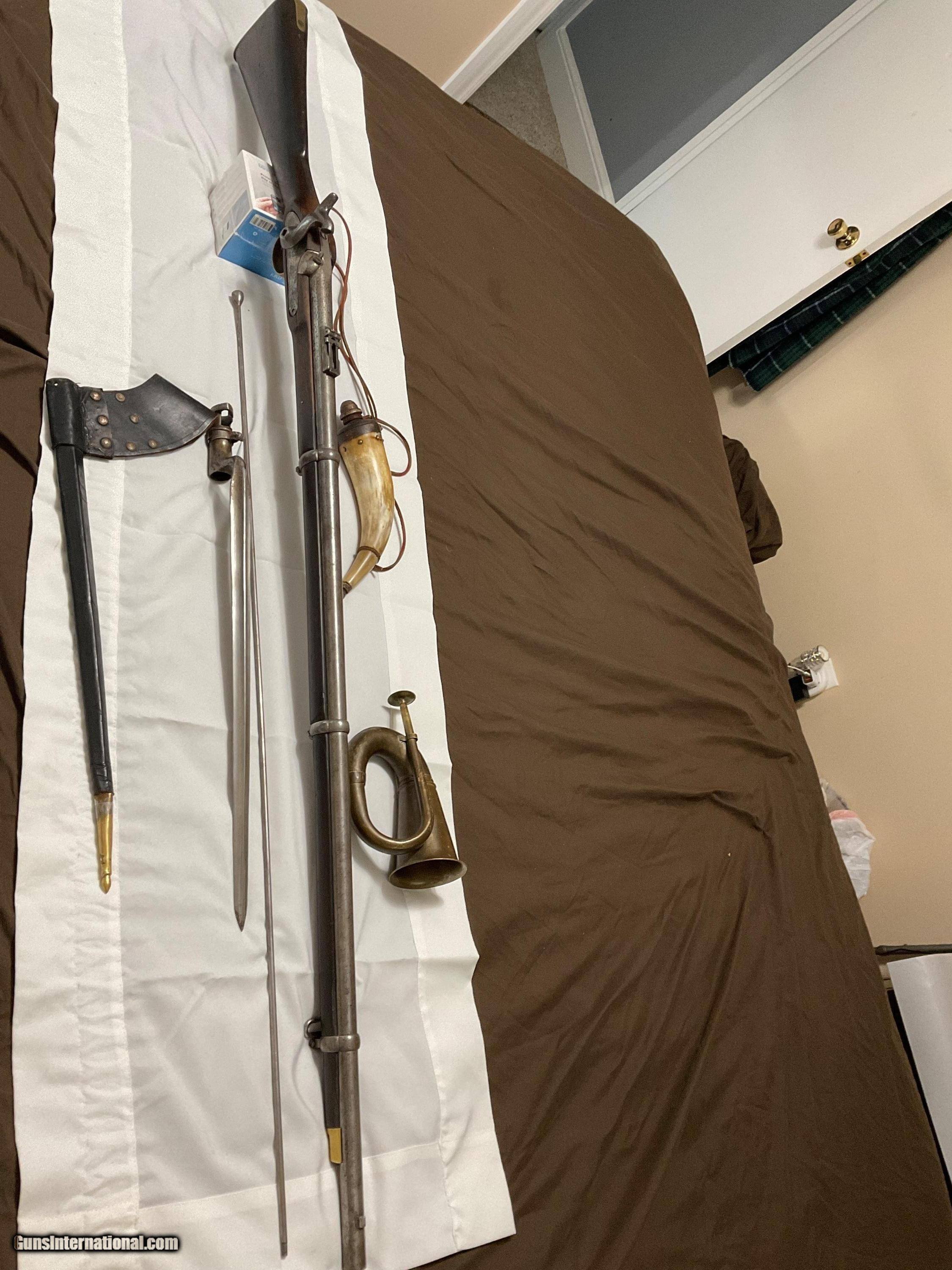 Description: I brought the Rifle 10 years ago from A collector for its age still and fair shapes It comes with a knife and the cover made of leather that has its own age also, where's boutch for the black border that Bouch made of elephant ovary . It is very very rare anything left in good shape like the one I have also come with the horn made of brass but is not function there is no sound come out of it still in good shape but the board to make the noise is not exist inside it I will include all that in the picture I might put some information wrong about the calibre and the size because I don't have that experience about it I know it's antique and original but all the details I will leave it to the picture so you have a better judge about it thank you for looking SOLD Antique: Yes |