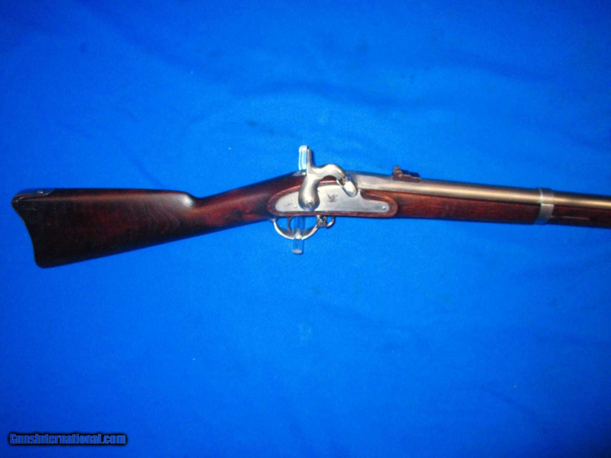 Description: U.S. Civil War Military Issued Springfield Model 1861 Musket Dated 1862 An Early U.S. Civil War Military Issued Springfield Model 1861 Musket Dated 1862 In Excellent Condition. Excellent metal and fine markings throughout. There is a clear eagle on the lock, & it is marked "U.S. SPRINGFIELD" to the right of it. It is clearly dated '1862" behind the lock. The top of the barrel is dated 1862 and has a "V/P/EAGLE" on the side of it. The butt plate is clearly marked "U.S." All the bands are marked with "U's" All of the metal on the musket is in the bright shows light cleaning at one time. The wood on the musket is excellent throughout with crisp edges. it has a wonderful even grain and color to it. The excellent ramrod is original and matches the metal. The musket has a tight as new action and excellent bore in it. This Is An Excellent Throughout Example Of An Early U.S. Civil War Military Issued Springfield Model 1861 Musket Dated 1862 That Would be A Great Addition To Any Civil War Collection! DISCLAIMER: All firearms are sold as collector’s items only – we did not accept responsibility as to the shooting safety or reliability of any antique firearm. All firearms as described as accurately as possible, given the restraints of a catalog listing length. We want satisfied customers and often under describe the weapons. Any city or state regulations regarding owning antique firearms are the responsibility of the purchaser. All firearms are mechanically perfect unless noted, but again are NOT warranted as safe to fire. We do not sell or ship any Antique Guns or Antique Ammo to anywhere in New York State. Antique: Yes Manufacturer: Springfield Model: Model 1861 Condition: Excellent Metal Condition: Excellent Wood Condition: Excellent Bore Condition: Excellent Price: $4,895.00 Contact Seller |
