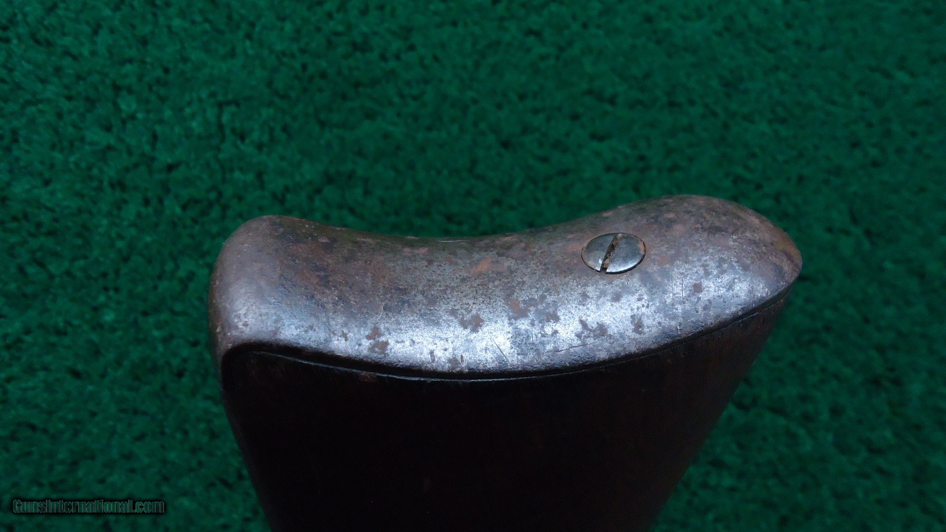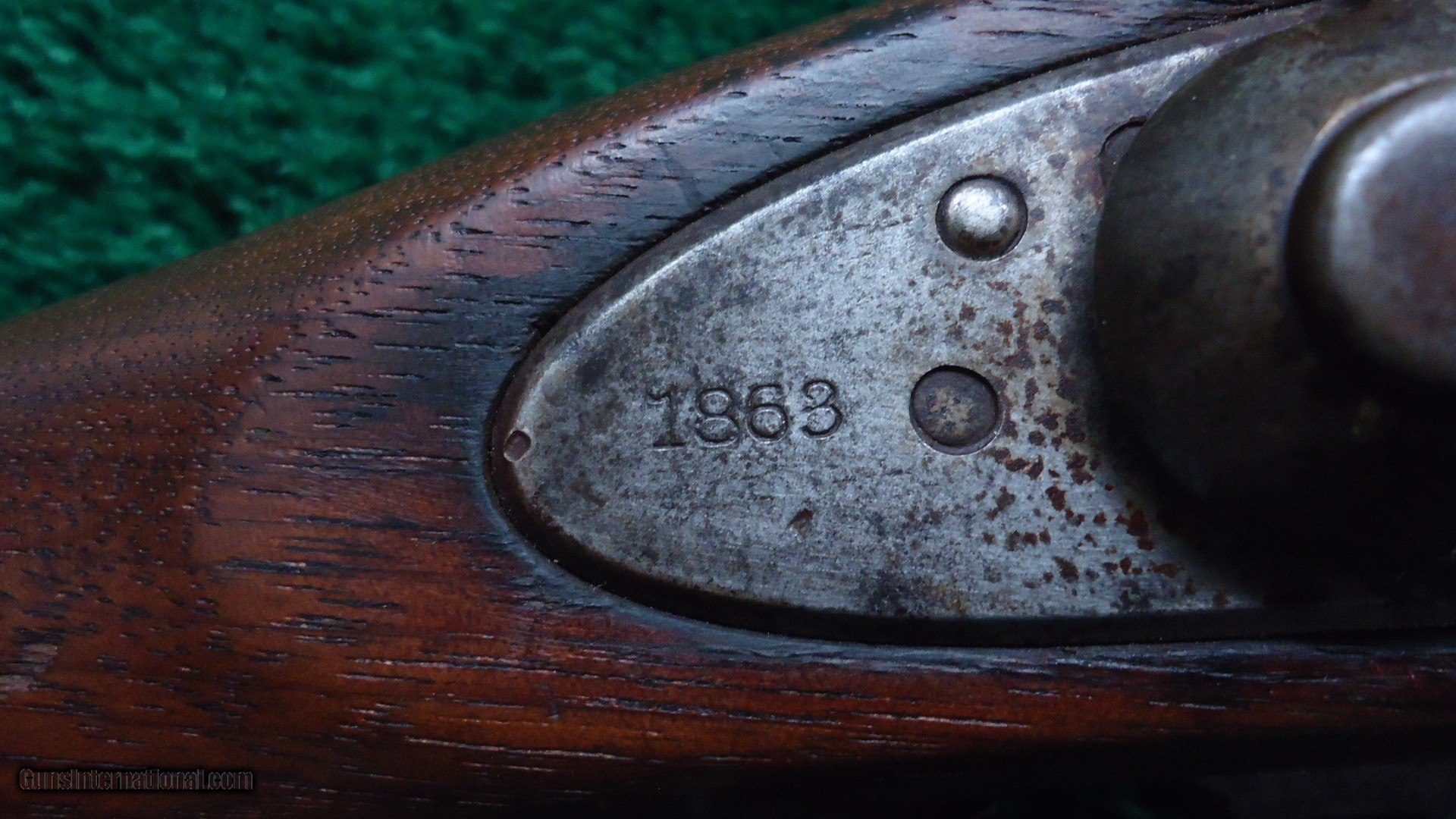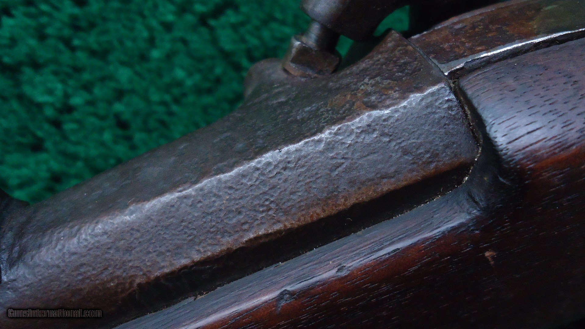 Description: This is 1 of about 50,000 Civil War 3-band Special Model 1861 Contract percussion rifle-muskets made by Lamson, Goodnow & Yale of Windsor Vermont. This musket was designed as a single shot .58 caliber rifled muzzleloader. Lockplate is dated 1863. Markings are relatively clear on the lockplate but barrel markings are very poor from heavy pitting. Bore is about good and would benefit from a good cleaning. There is light roughness throughout with visible rifling. Metal surfaces are an aged dull gray patina with some pitting around the breech. Original sights. Walnut stocks are in good condition. A "3" stamped just ahead of the "US" marked buttplate. Ramrod is present. The Springfield Armory supervised the manufacturing and distribution of the Model 1861 muskets. To fulfill shortages, production was sub-contracted to several private manufacturers; Colt, LG&Y, E.G Lamson, and Amoskeag all produced these Special Contract muskets through the entire war 1861-65. The "Special" Model 1861 contract represented a transition from the Model 1861 design and incorporated many of the features eventually adopted in the Model 1863 regulation, namely the contoured hammer, flat bolster and removal of band springs. This is a nice historical example of an early Civil War musket. Leroy Merz Antique Firearms specializes in antique and vintage Winchesters and other fine American firearms. Since 1965 Mr. Merz has taken part in the world of firearms and has been a contributor to many well known reference books. We have hundreds of additional guns in every price range at our home online. Search for Merz Antiques in google. SOLD Antique: Yes Rifle Caliber: .58 |