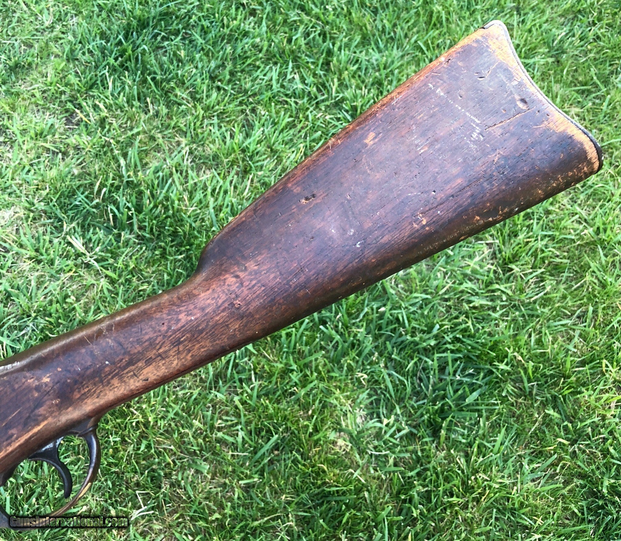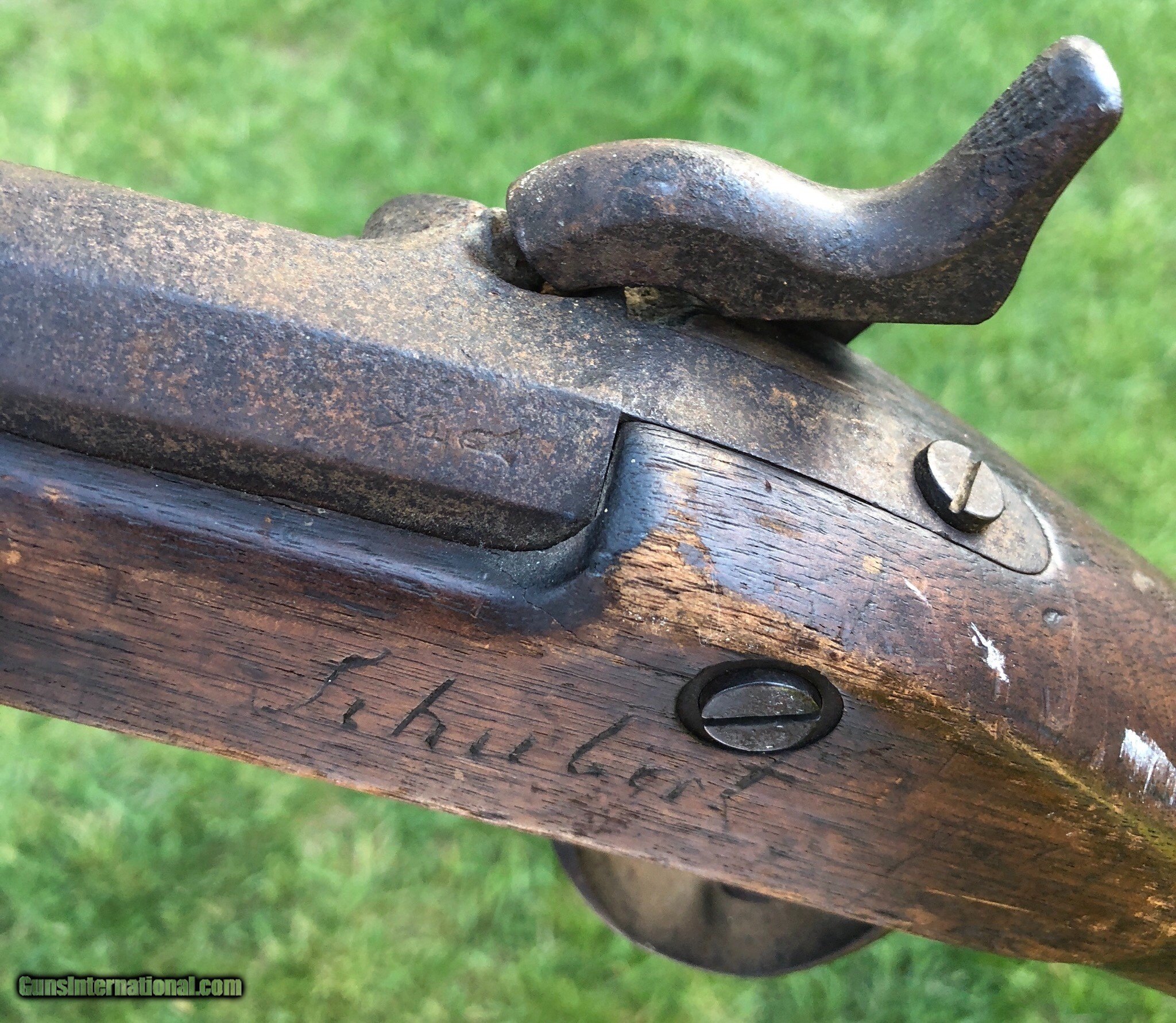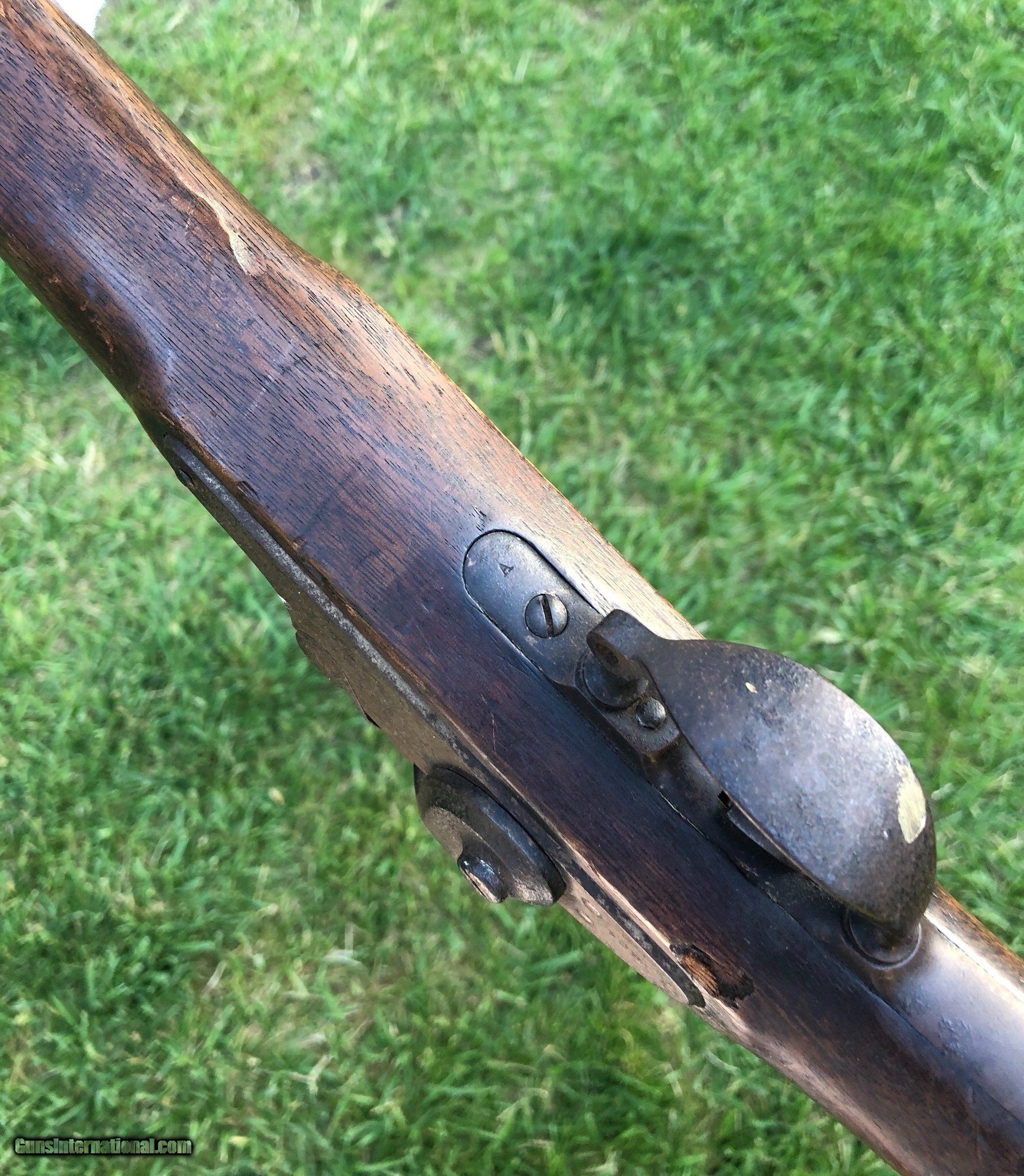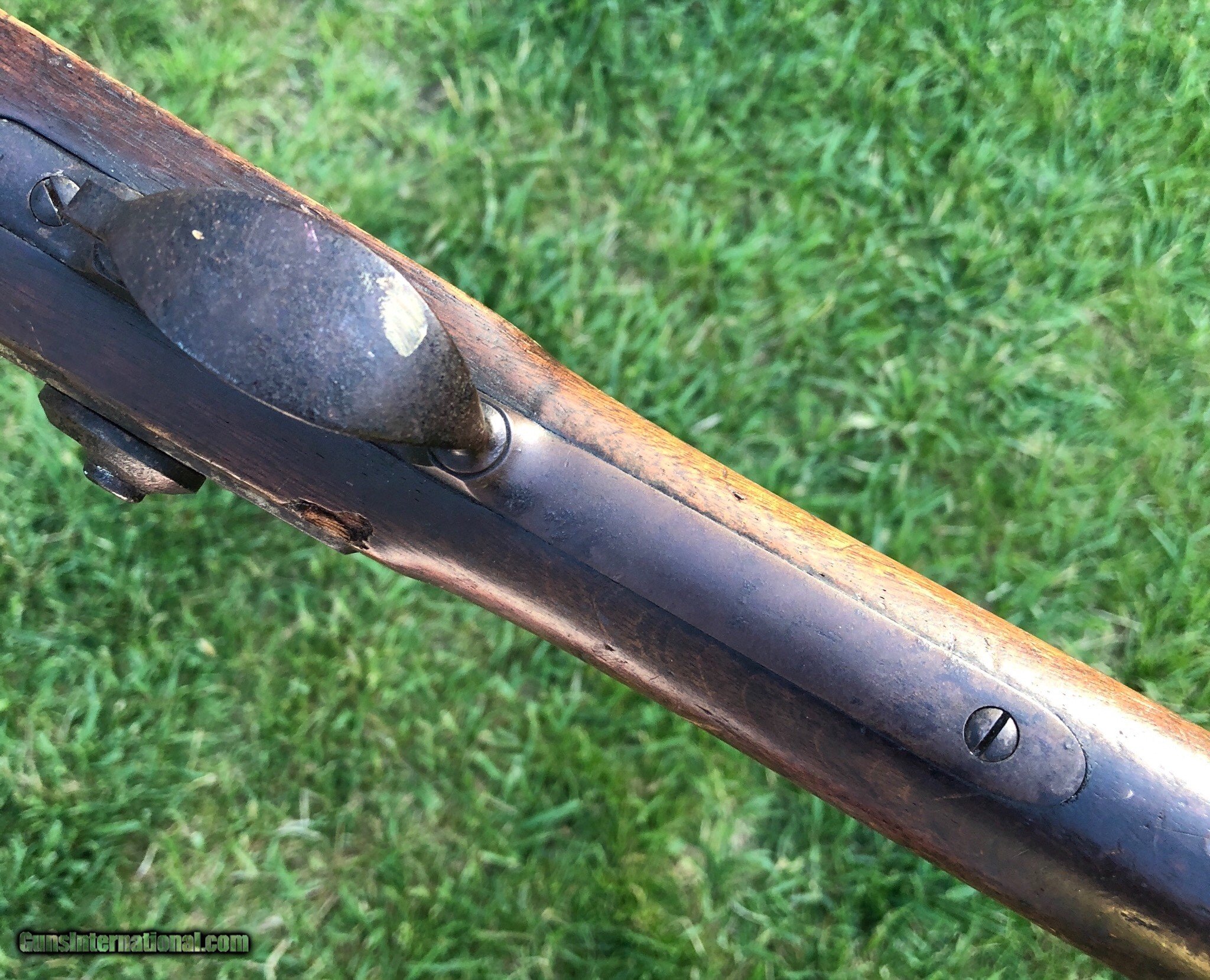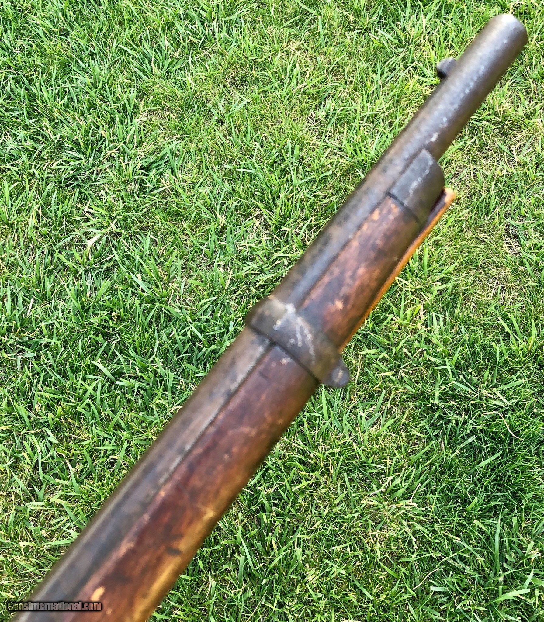 Description: This is an untouched Springfield M1861 Percussion musket with an 1864 dated lockplate and barrel. The stock has an old scratched name that appears to be “Shubert ”. This musket has that “battlefield pickup” appearance and I absolutely love that about it, it’s been there and done that and if only it could talk the stories it could tell. Mechanically the lock functions fine. The ramrod is missing but was replaced with an old wood rod. There are faint cartouches on the left flat. This is a really cool musket that with further research could prevail with a certain identity because of the name in the stock. Even as it is, it is a great display piece for any collection! Shipping is $60 plus insurance. If any questions or if any other photos are needed feel free to email, call or text anytime! Thank you! Asking: $1,100.00 SOLD Antique: Yes |