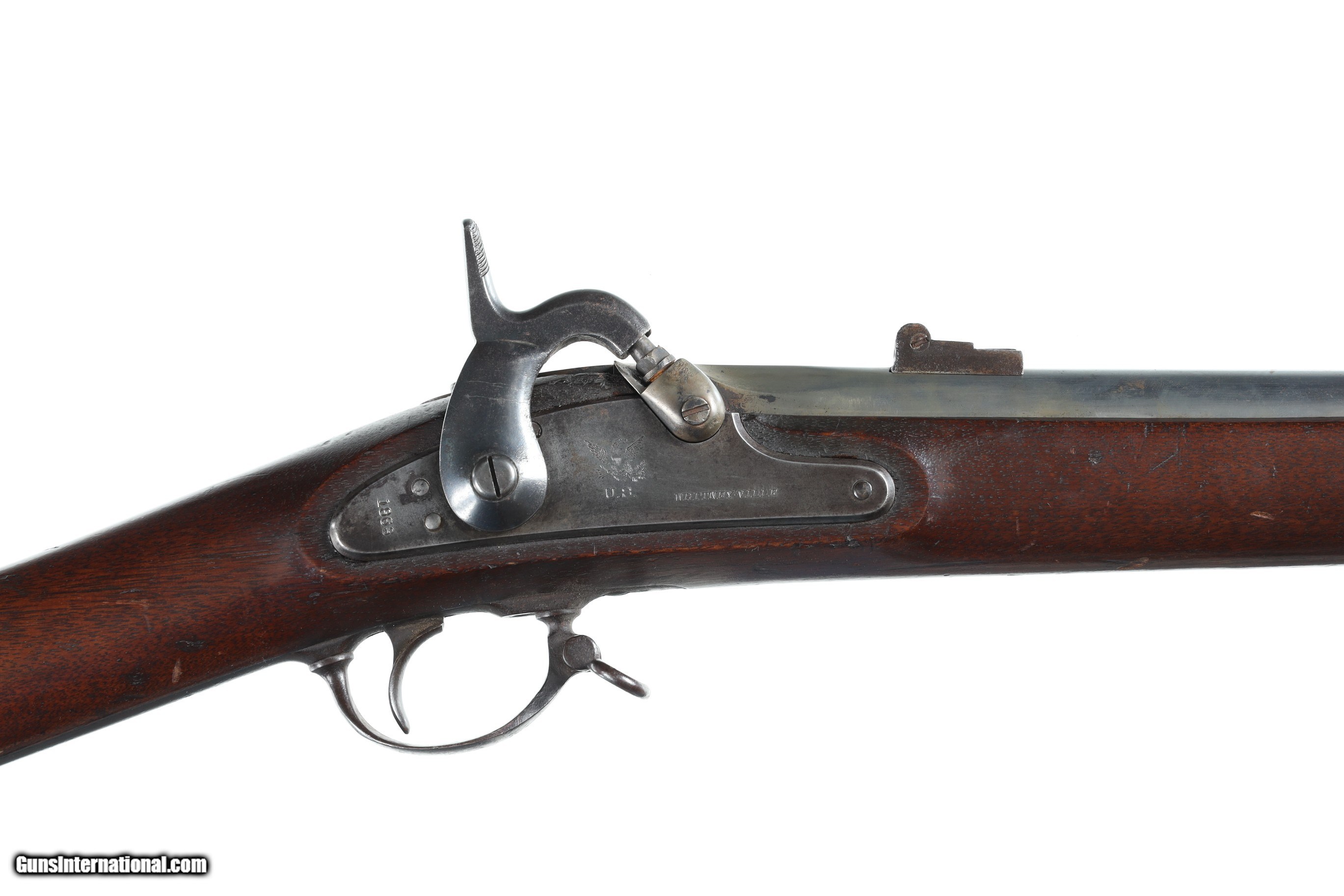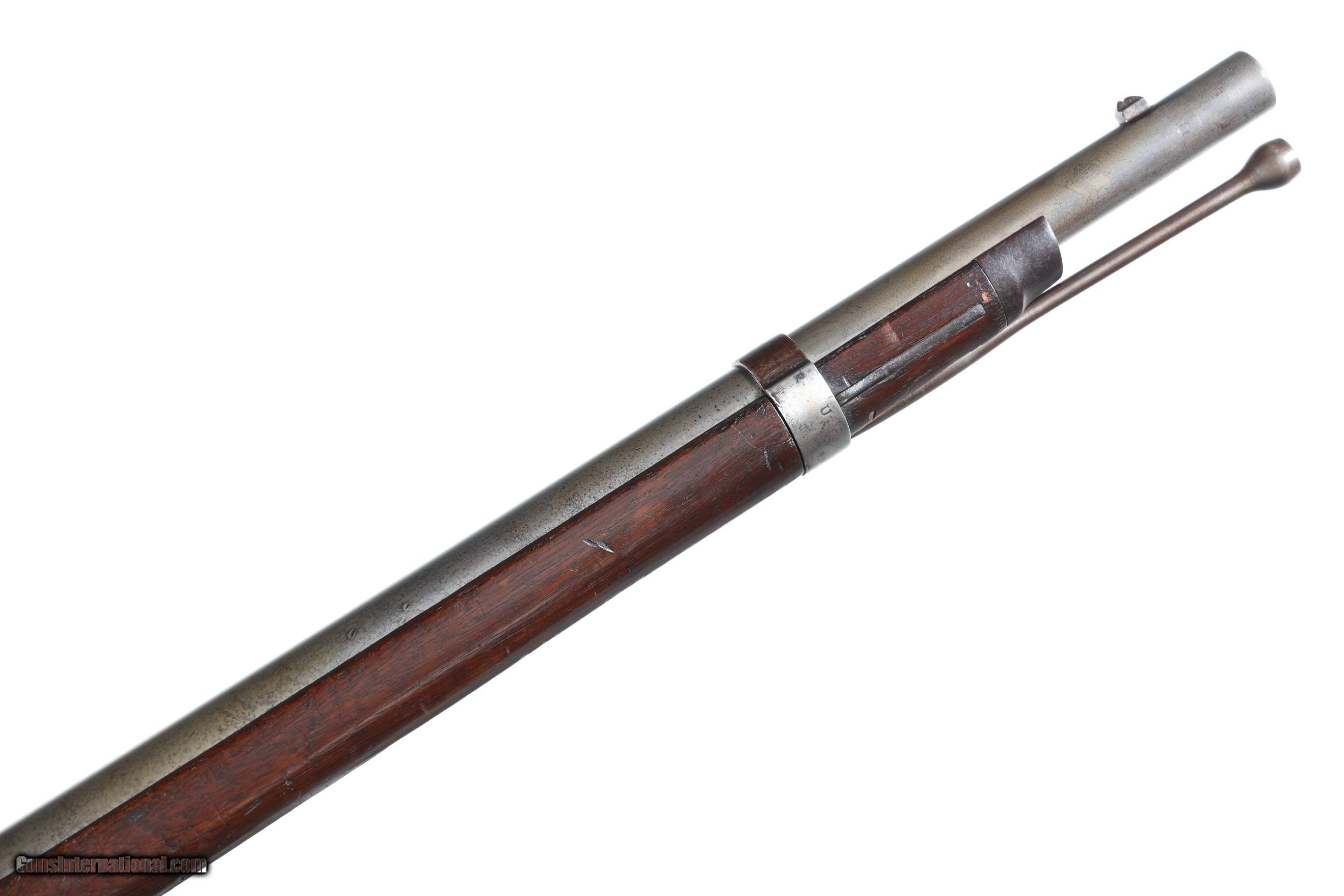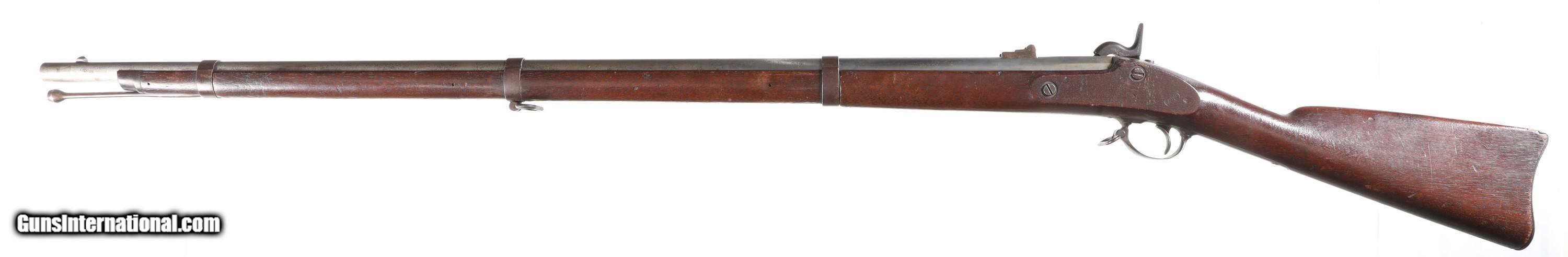 Description: US Civil War Model 1861 Rifle Musket by Whitney. .58 Cal dated 1862 with strong cartouche. Fine flat bands with excellent walnut stock. . The lock is "1863" dated at the tail with an eagle and shield above "U.S." at the center and "WHITNEY-VILLE" at the front. "1862" dated breech with "V/P/eagle head" proofs, and "51" marked on the barrel tang. • Free Shipping, No Credit Card Fees. • Lay-a-way available for this firearm. • 1/3 Down, a 1/3 in 30 Days, 1/3 in 60 Days. SOLD Antique: Yes Manufacturer: Whitney Arms Model: 1861 Serial Number: NSN Barrel Length: 40 |