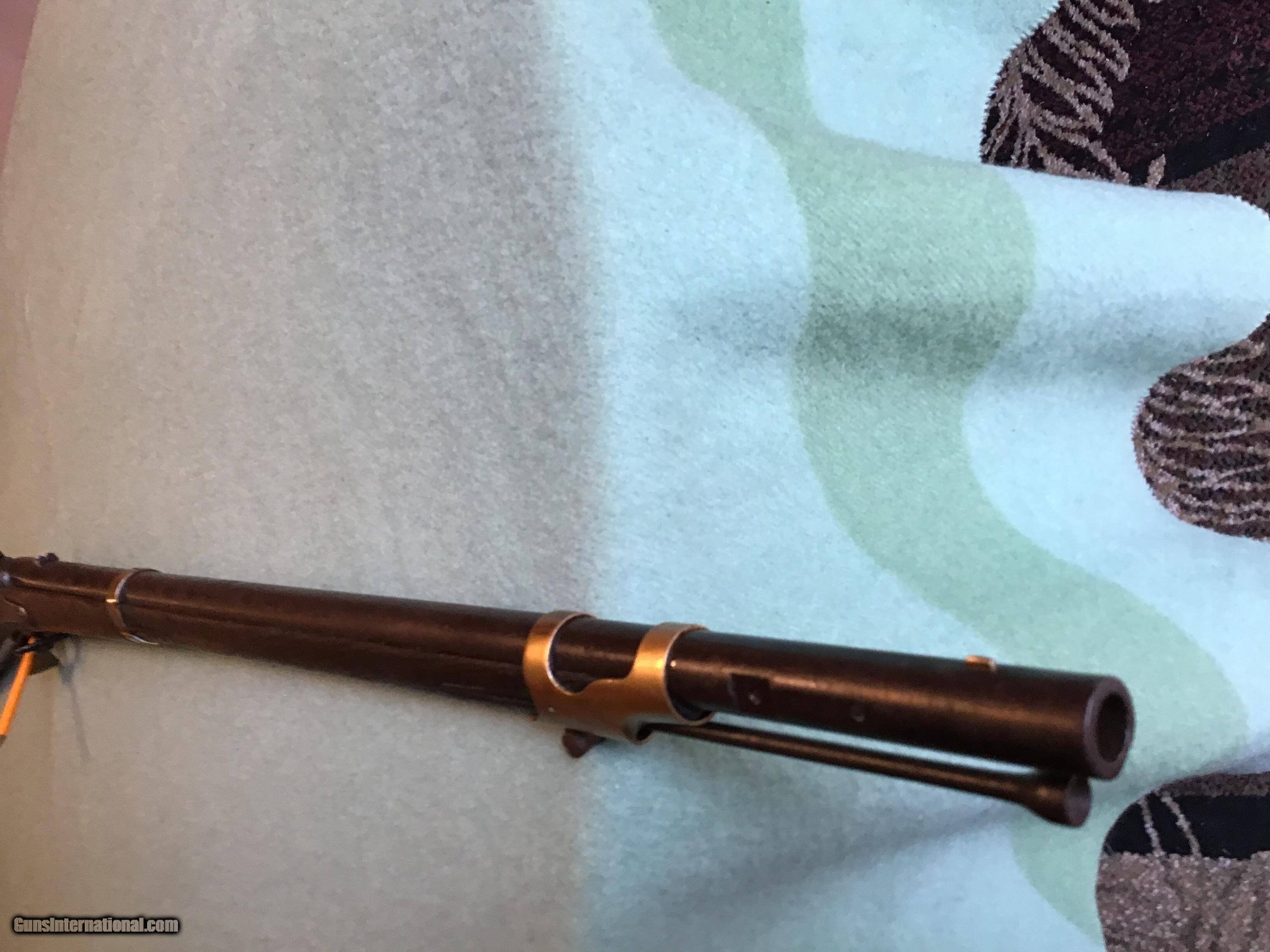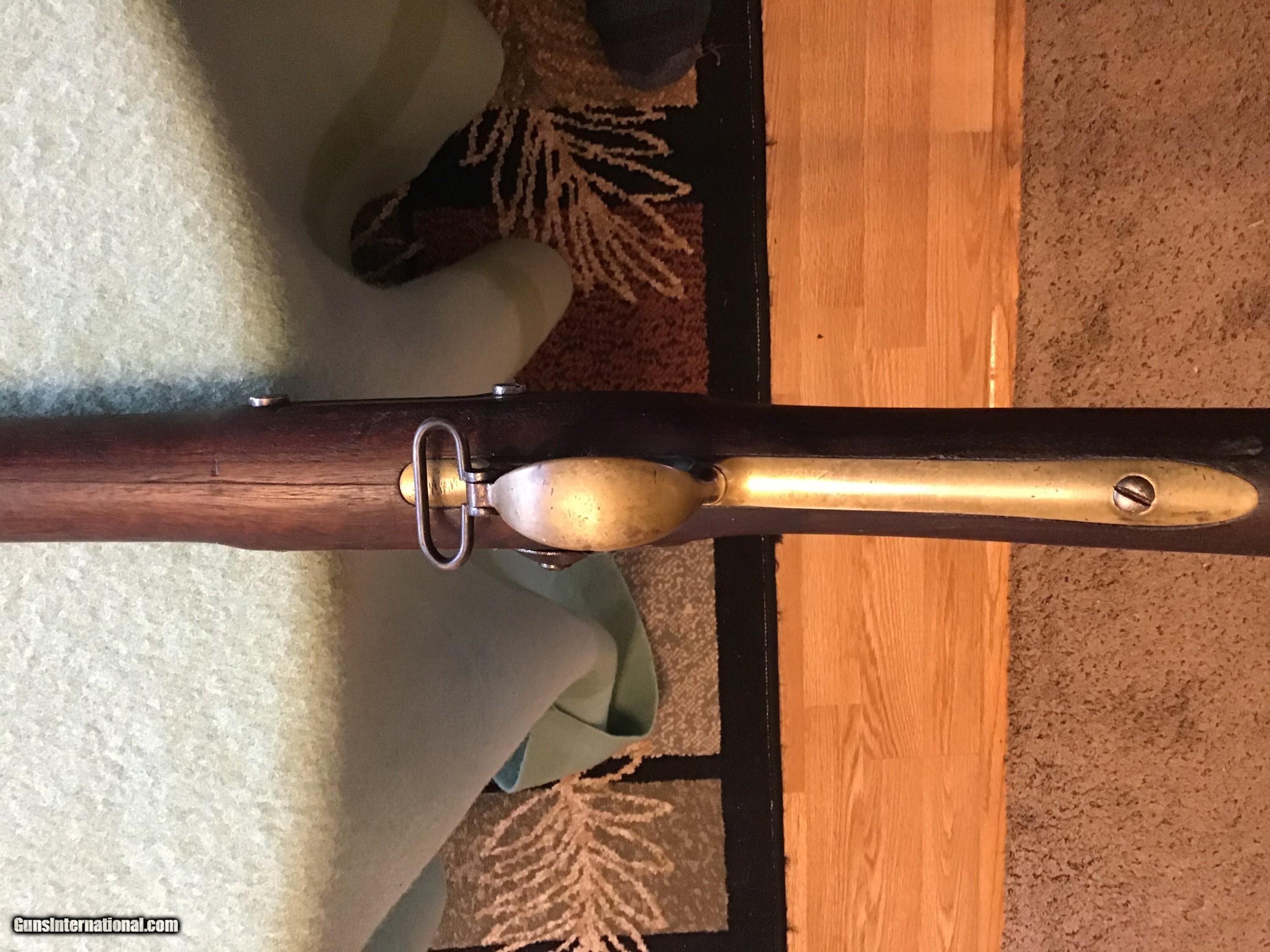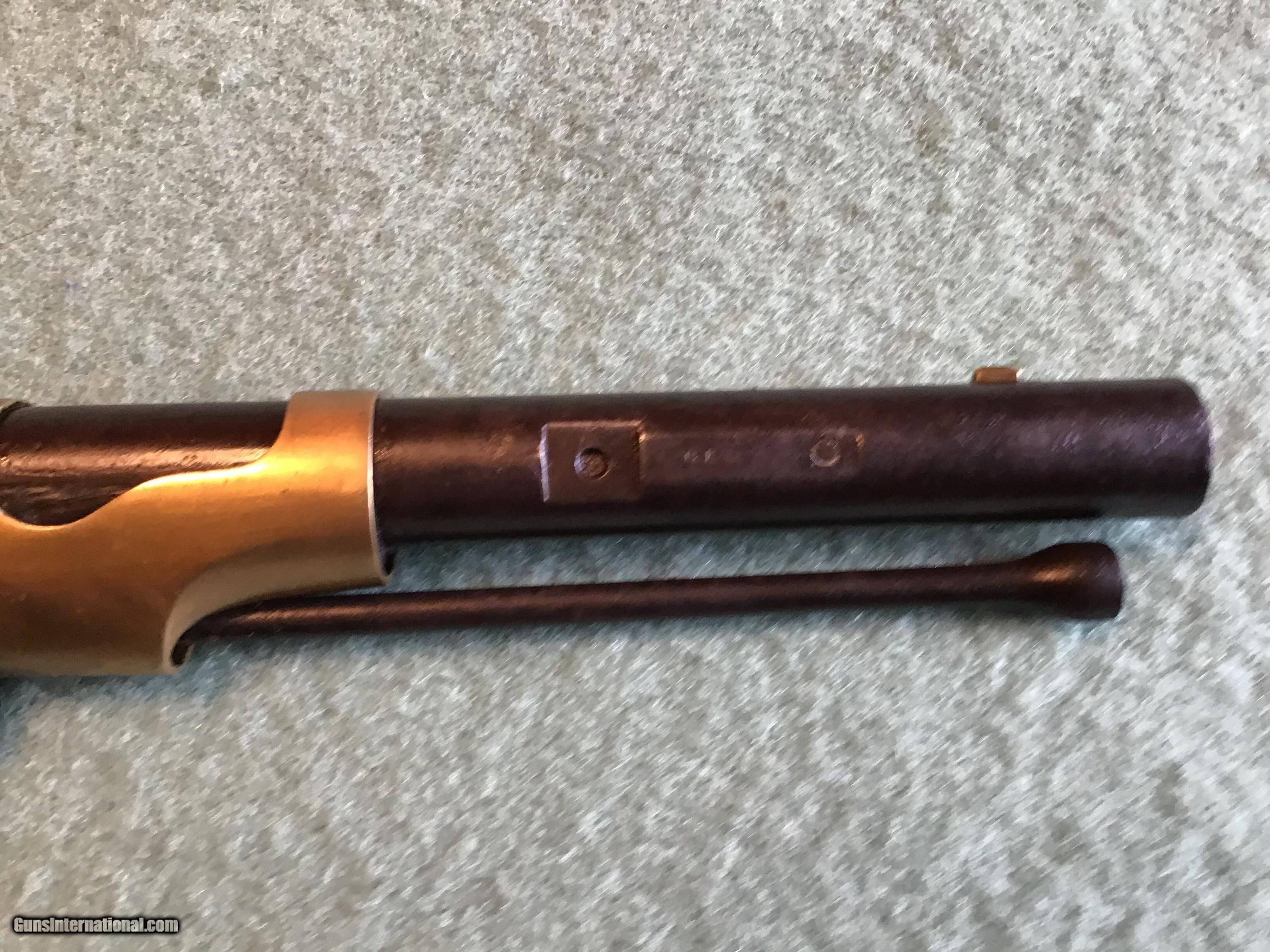 Description: On Hold Sale Pending. This is the US model 1841 Mississippi rifle. The lock marked US Remington, Herkimer, NY, US 1853 with scattered pitting. Full length barrel marked Steel with a brown color and scattered pitting in 54 rifled caliber with front and rear sights. Brass but plate marked US, all brass has a light brown patina. The rear sling swivel is present the front one is missing. The full length dark walnut stock has a cartouche and is fairly good but shows use with scattered dents, gauges, and a couple hairline cracks. The nipple is present and the lock functions as it should. I believe the ramrod is correct for this Remington. Shipping will be actual cost approximately 50.00. Feel free to contact me with any questions chriskobberdahl2gmail or 218-839-9272. On Hold Sale Pending SOLD Antique: Yes Manufacturer: Remington Model: 1841 Condition: Good Metal Condition: Good Wood Condition: Good |