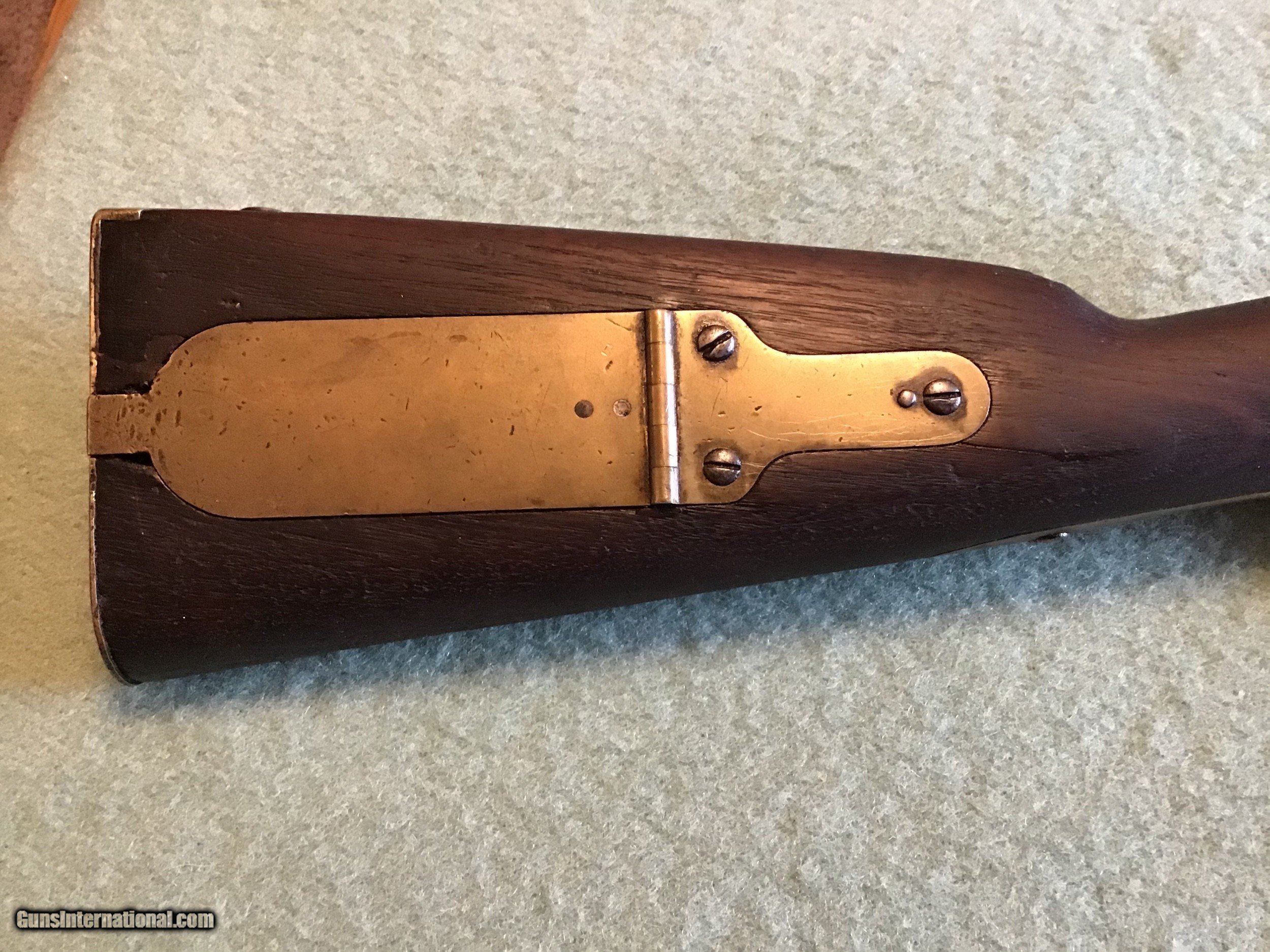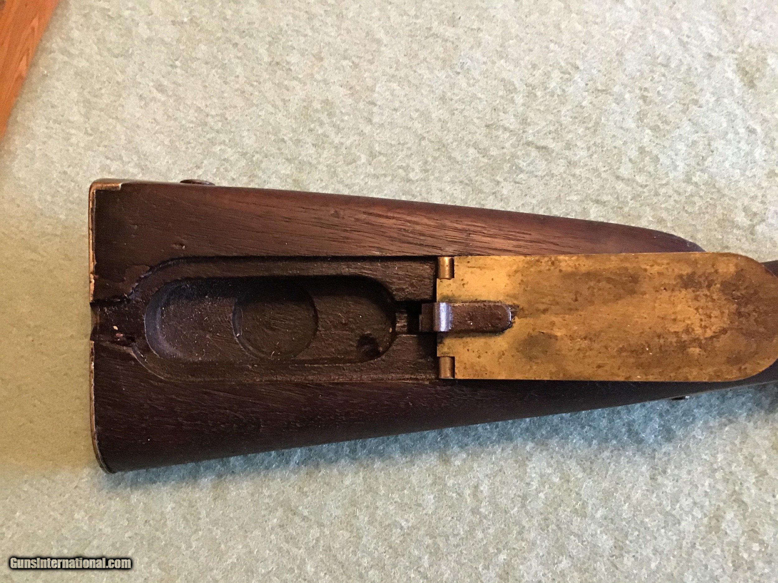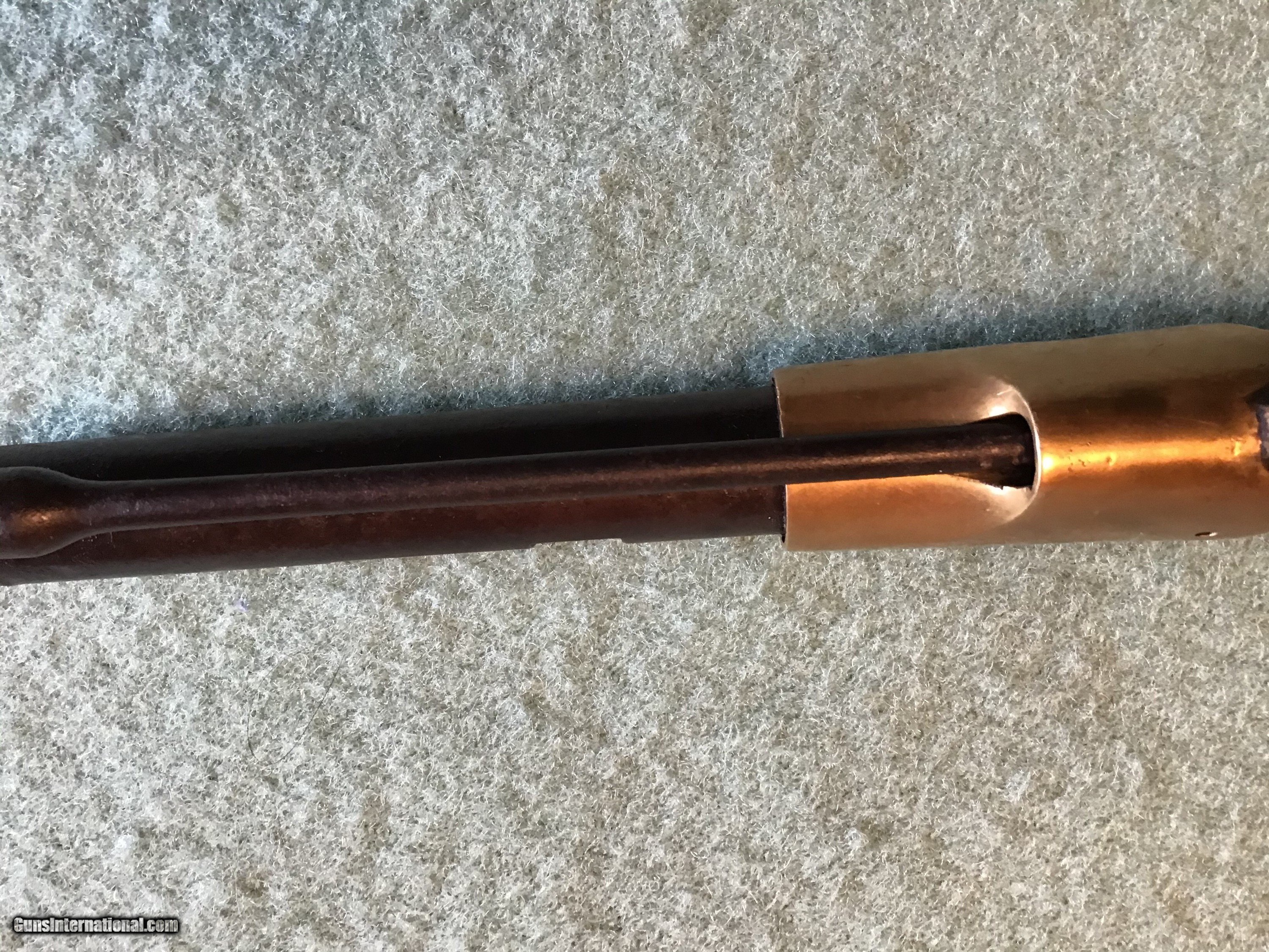 Description: On Hold Sale Pending. This is the US model 1841 Mississippi rifle. The lock marked US Remington, Herkimer, NY, US 1853 with scattered pitting. Full length barrel marked Steel with a brown color and scattered pitting in 54 rifled caliber with front and rear sights. Brass but plate marked US, all brass has a light brown patina. The rear sling swivel is present the front one is missing. The full length dark walnut stock has a cartouche and is fairly good but shows use with scattered dents, gauges, and a couple hairline cracks. The nipple is present and the lock functions as it should. I believe the ramrod is correct for this Remington. Shipping will be actual cost approximately 50.00. Feel free to contact me with any questions chriskobberdahl2gmail or 218-839-9272. On Hold Sale Pending SOLD Antique: Yes Manufacturer: Remington Model: 1841 Condition: Good Metal Condition: Good Wood Condition: Good |