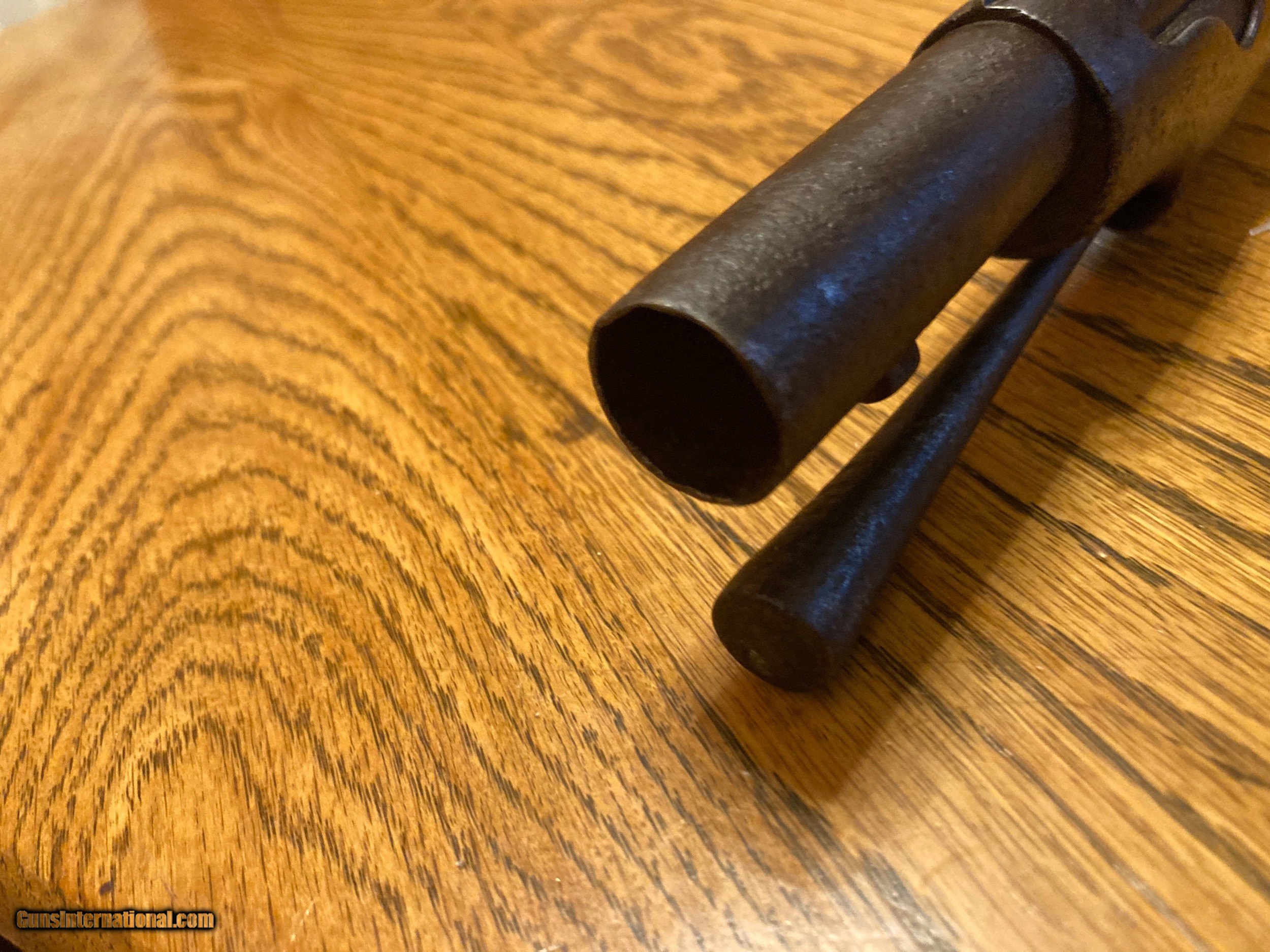 Description: US Model 1842 Springfield 69 caliber musket. The Full length 3 band dark walnut stock is in good condition with numerous dents and abrasions. The dark full length barrel and all metal parts are dark brown with scattered pitting. The lock is marked Springfield 1851 and functions fine. The nipple is broken (see photos). The ramrod is present but both sling swivels are missing. Please feel free to contact me with any questions. Shipping will be actuall cost by insured usps priority mail with tracking. SOLD Antique: Yes Manufacturer: US Springfield Model: 1842 |