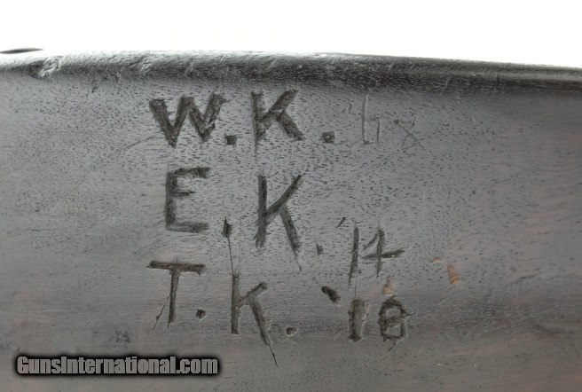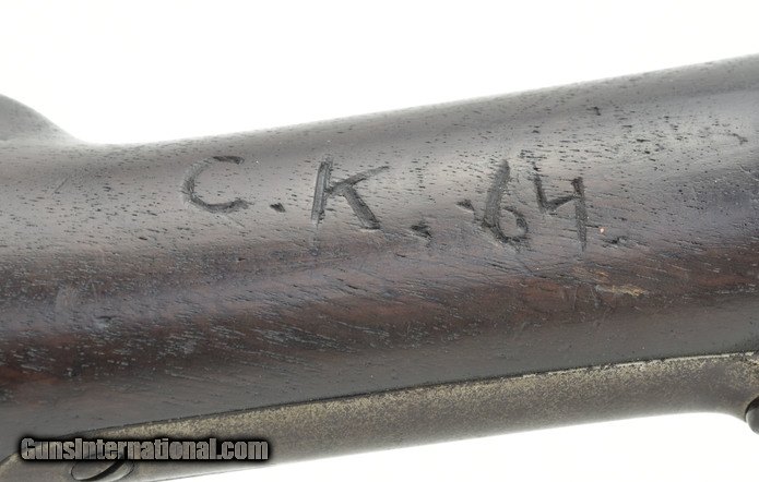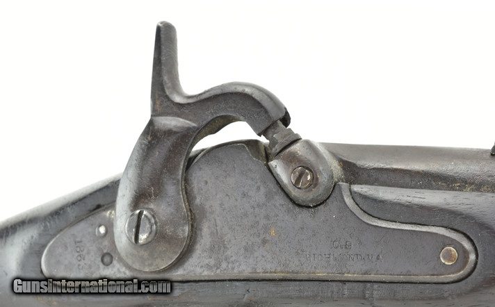 Very Fine Richmond Confederate Musket. In untouched condition. Metal has a nice even dark patina. Lock is dated 1863 with “CS Richmond VA”. Stock is in great condition, does have period carving of initials “W.K. 68, E.K. 14, T.K.18” and “C.K. 64” at wrist. These initials are very interesting, as all end with “K”. It could be a family that fought together!