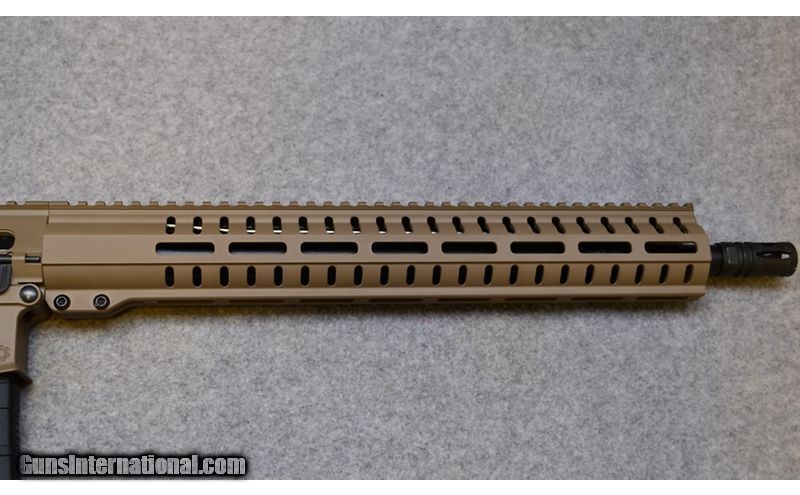 Description: This is a very nice example of a CMMG MK3 semi auto rifle that is in very good condition with light handling and wear marks. .308 Winchester SOLD Chambers: 20 Shot Detachable Magazine Metal Condition: Very good with light handling and wear marks. Wood Condition: Very good with light handling marks. Bore Condition: Very good bright shiny rifling. Barrels: 16 Inch Triggers: Single Stock Dimensions: LOP: 11-14 1/2 Fore End: Metal fore end with M LOK mounts. Butt Pad: Magpul black rubber butt pad. Weight: 8 POUND 8 OUNCE Sights: No sight with picatinny rail for mounting. Item Location: Hammond, IN |