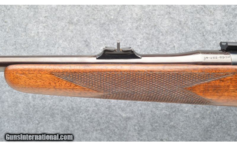 Description: SOLD Manufacturer: 1950's production Caliber Info: .318 Express Metal Condition: few light handling marks w. lots of original finish remaining Wood Condition: light handling marks throughout Bore Condition: strong rifling Barrels: 26 Stock: Raised cheekpiece Stock Dimensions: 14" LOP Butt Pad: Rubber Weight: 7.1 lb. Sights: Rail mounted for your choice of scope / Dovetail 200yd. sight w. 2 leafs & raised dovetail bladefront Item Location: Post Falls, ID |