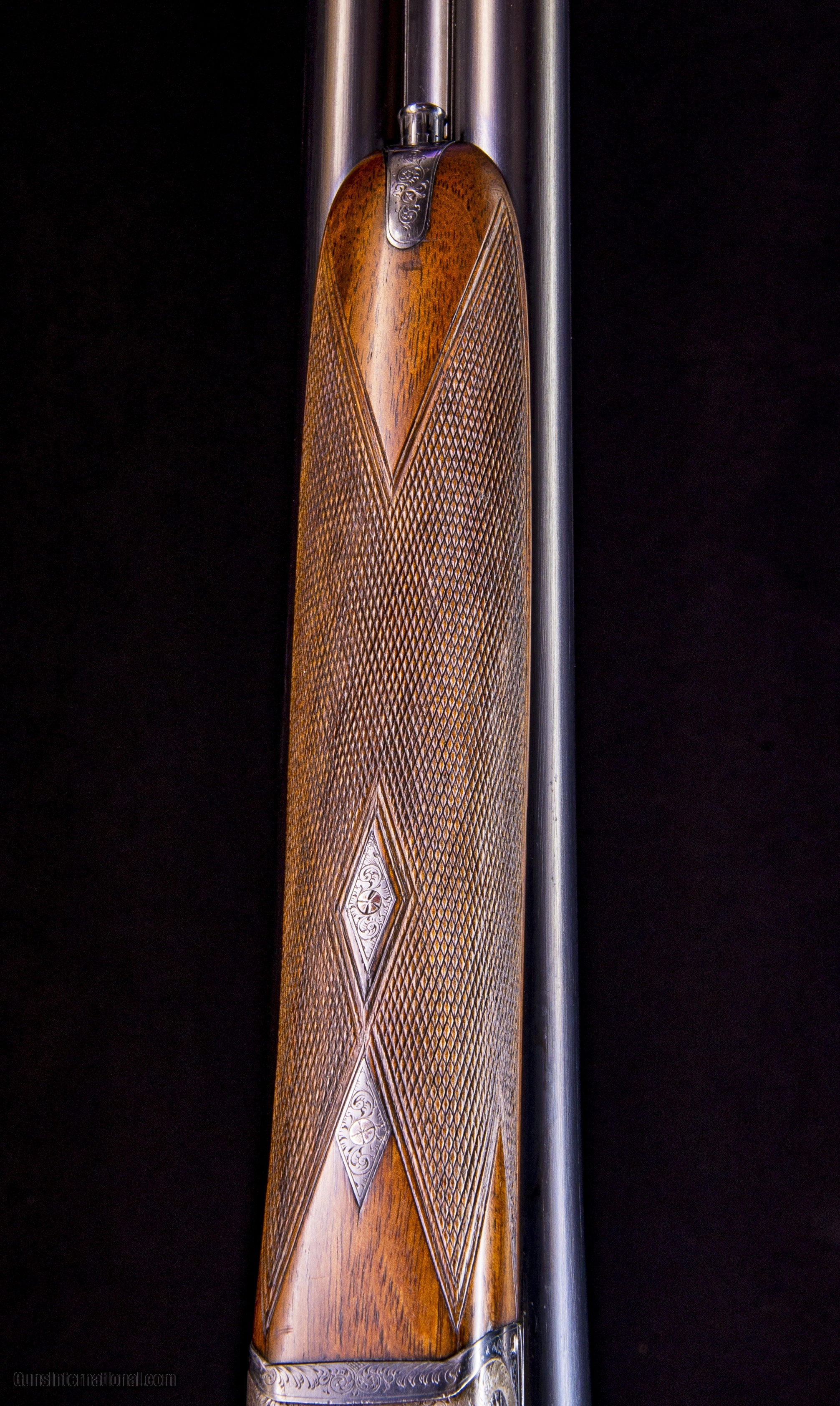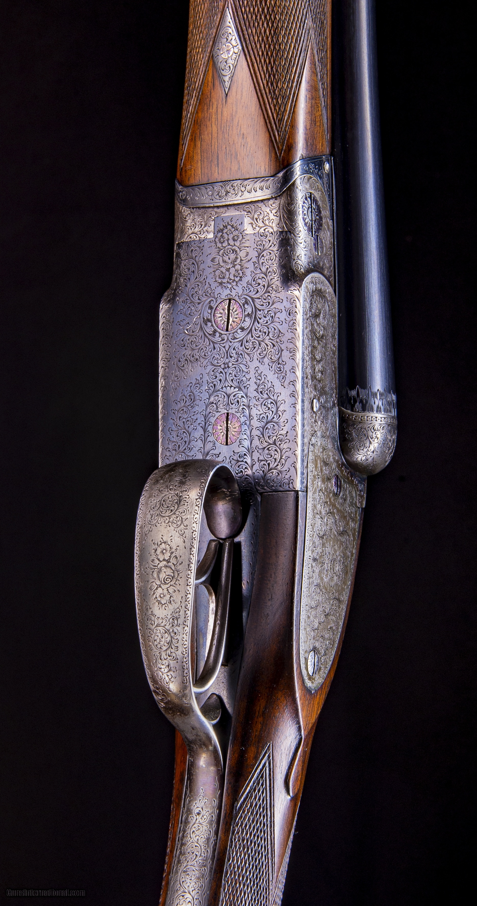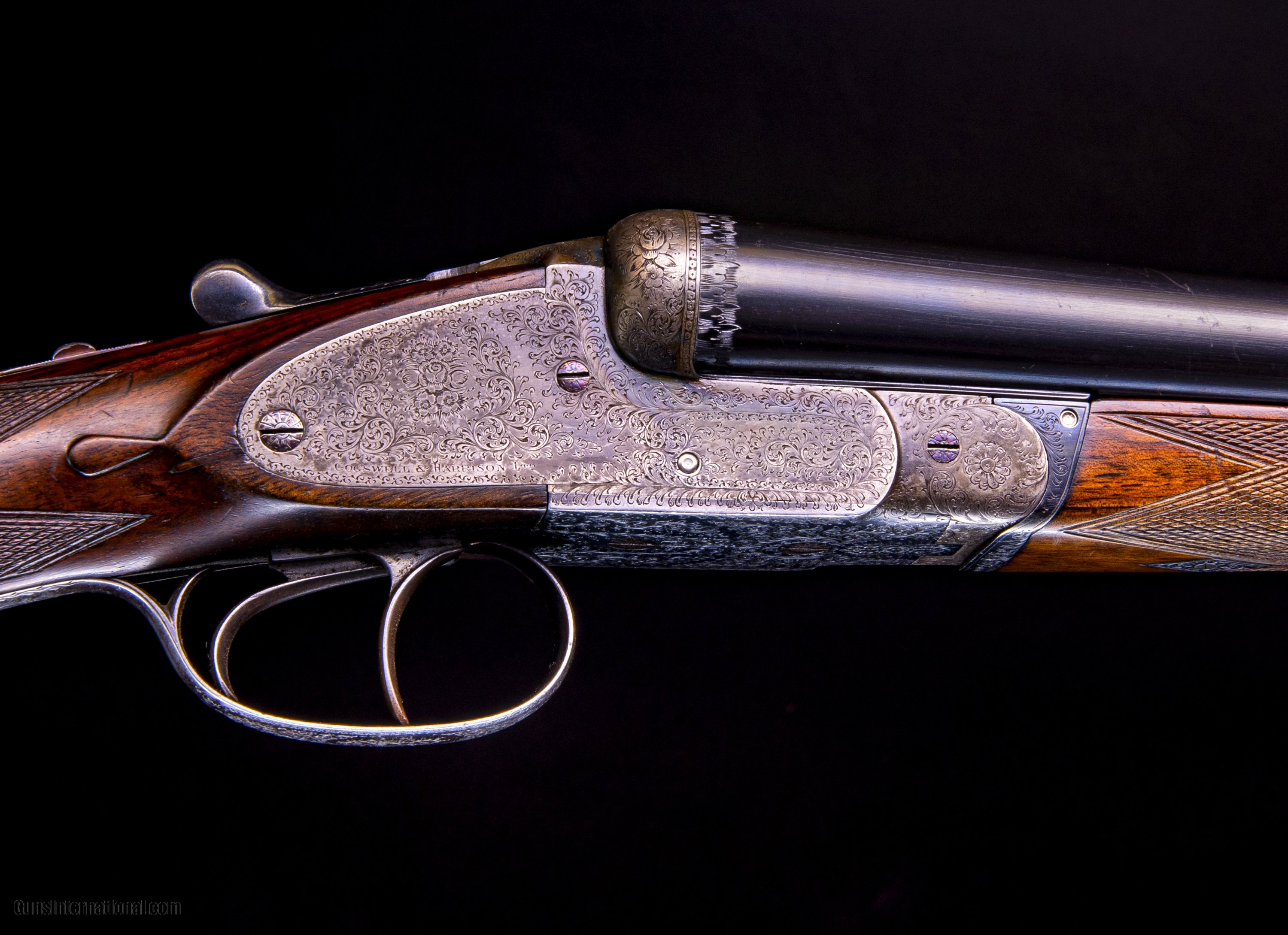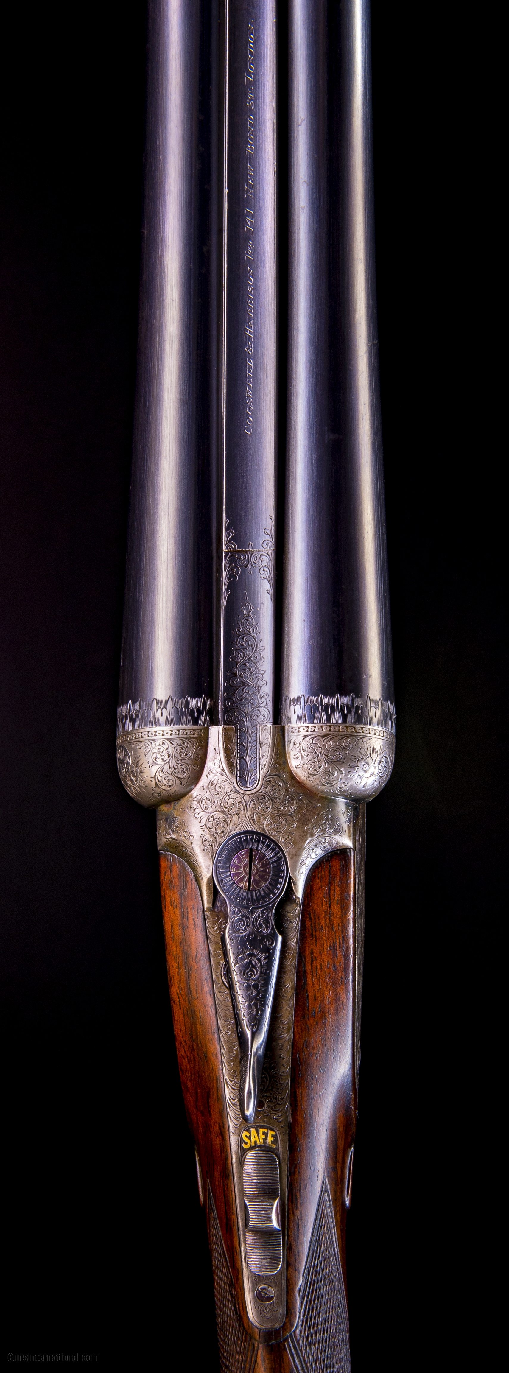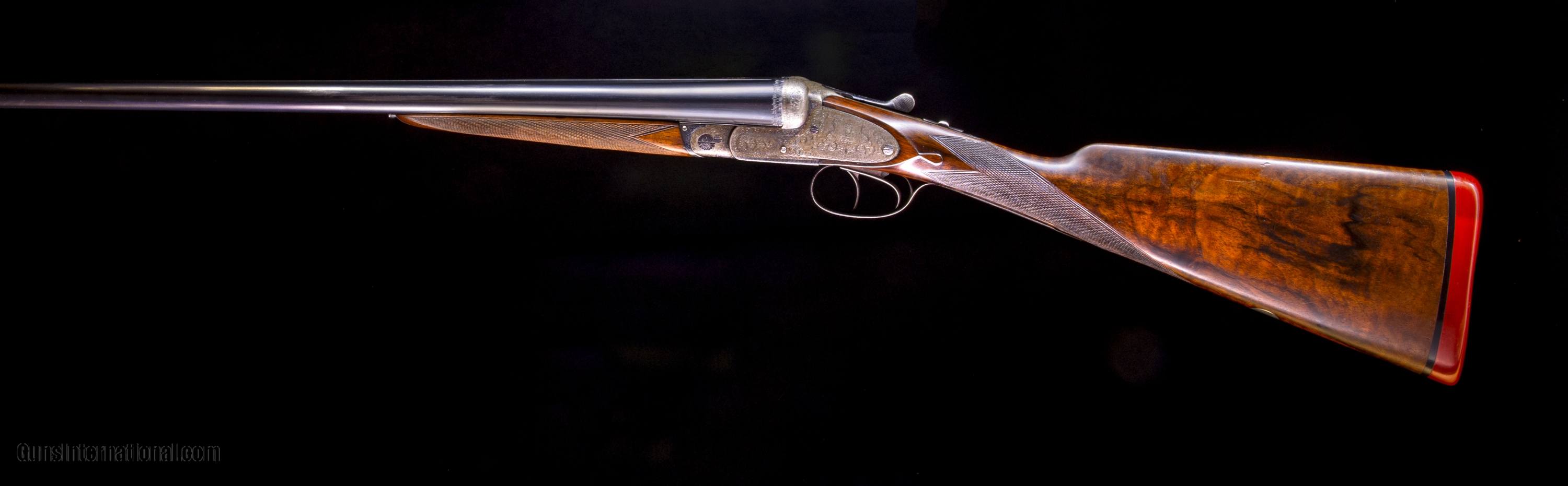 Description: Hammerless Sidelocks - Nice 30" barrels with decent choking and great stock dimensions for many makes this an economical English double with lots to offer. This gun has elegant wood and beautiful engraving which retain of 75% original case color. *** Note: To see this gun with high resolution photos and a zoom-in feature, go to the vintagedoubles main site and search for the gun ID: 5380 or browse the main site to see our full gun collection. SOLD Manufacturer: Cogswell & Harrison from 1912 with great stock dimensions for many Model: None Serial Number: 46600 Ejectors: Yes Barrels: 30 Barrel Type: Steel Action: Sidelock ejector Gauge Info: 12 gauge Stock Comb: 1 5/8 Stock Heel: 2 1/4 Stock Cast: 5/16 LOP: 14 3/4" with pa Weight: 6 lbs. 14 oz. Choke Left: .023 full Choke Right: .017 Mod Proof:Nitro: 2 1/2 Minimum Wall Thickness Left: .030 Minimum Wall Thickness Right: .029 |