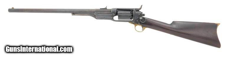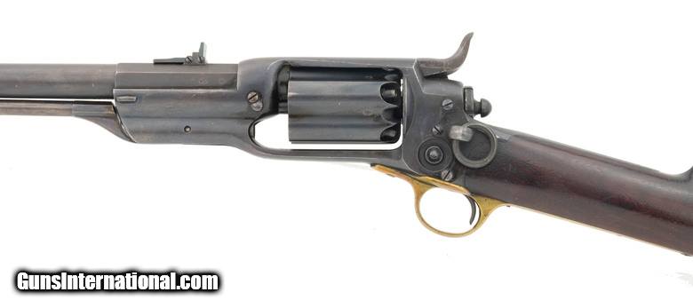 Description: " Colt 1855 revolving .56 caliber rifle. Made in 1850s-1860s. Has a 21” .56 caliber barrel. This gun is in excellent condition with 98% original blue. This is a British carbine with British proof marks on both cylinder and barrel. Stock is in excellent condition. Absolutely beautiful gun! SOLD Antique: Yes |