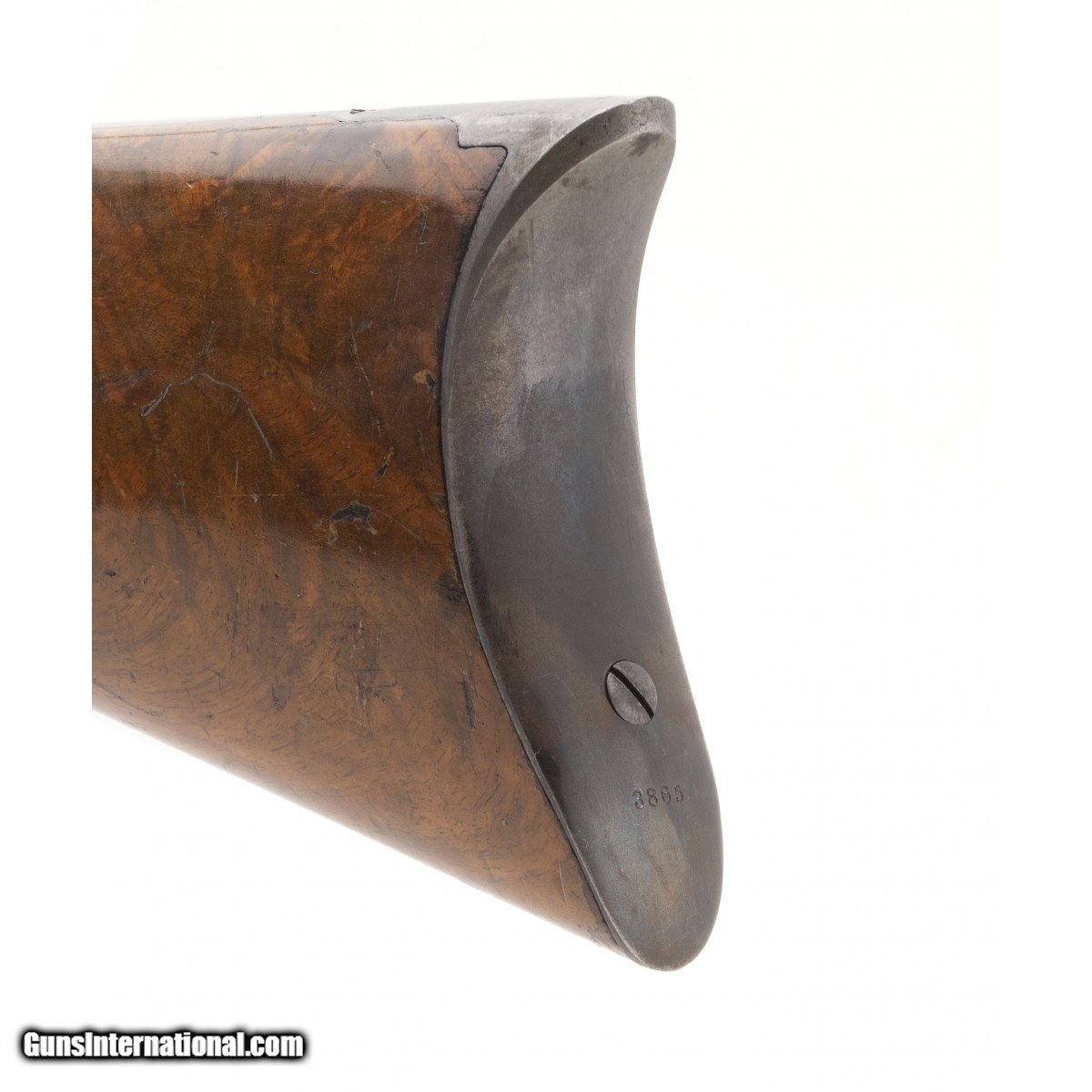 Description: "Serial Number 3865. Made late 1850s to early 1860s. 36 caliber with a 27" barrel. Beautiful example with 90% of the original blue finish. Wood is very fine with feathering to the burled walnut. Action works perfect. Absolutely beautiful example of a Colt 1855 Sporting Rifle! SOLD Antique: Yes |